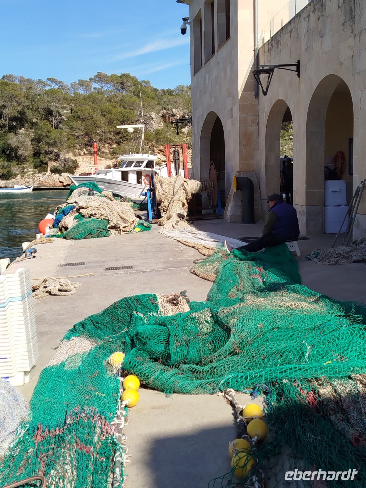 Nach einem verführerischen Frühstück ( wir hatten eine Wanderreise gebucht und da läuft man sich die Kalorien ja wieder ab !!! ) ging es schon mal die erste Serbentinen - Straße hinauf, zum Inselheiligtum Sant Salvador. Hier wird eine Marienfigur verehrt und bei den Klängen des Pilgerchors, aus Wagners OperTannhäuser, war in der Klosterkirche eine ganz eigene Stimmung zu spüren. Die Aussicht, vom 509 m hohen Berg, ist einfach grandios und geht weit über die Insel, vorallem wenn man an der 7 m hohen Christusstatue seht. Im Anschluß fuhren wir nach Porto Petro und nahmen unsere erste Wanderung in Angriff. Vom Naturhafen aus ging es immer, an der Küste entlang, nach Cala Figuera. An einem Badeplatz machten wir unsere Pause und so" manchen" lockte das türkisblaue Wasser. Die Feigenbucht (wie der Abschnitt genannt wird ) ist lang und schmal wie ein Fjord. Wir umrundeten den südlichen Arm ,liefen an den alten Bootshäusern und Fischekähnen vorbei und gelangten zum Marktplatz , wo viele Cafes zum verweilen einluden - uns auch .