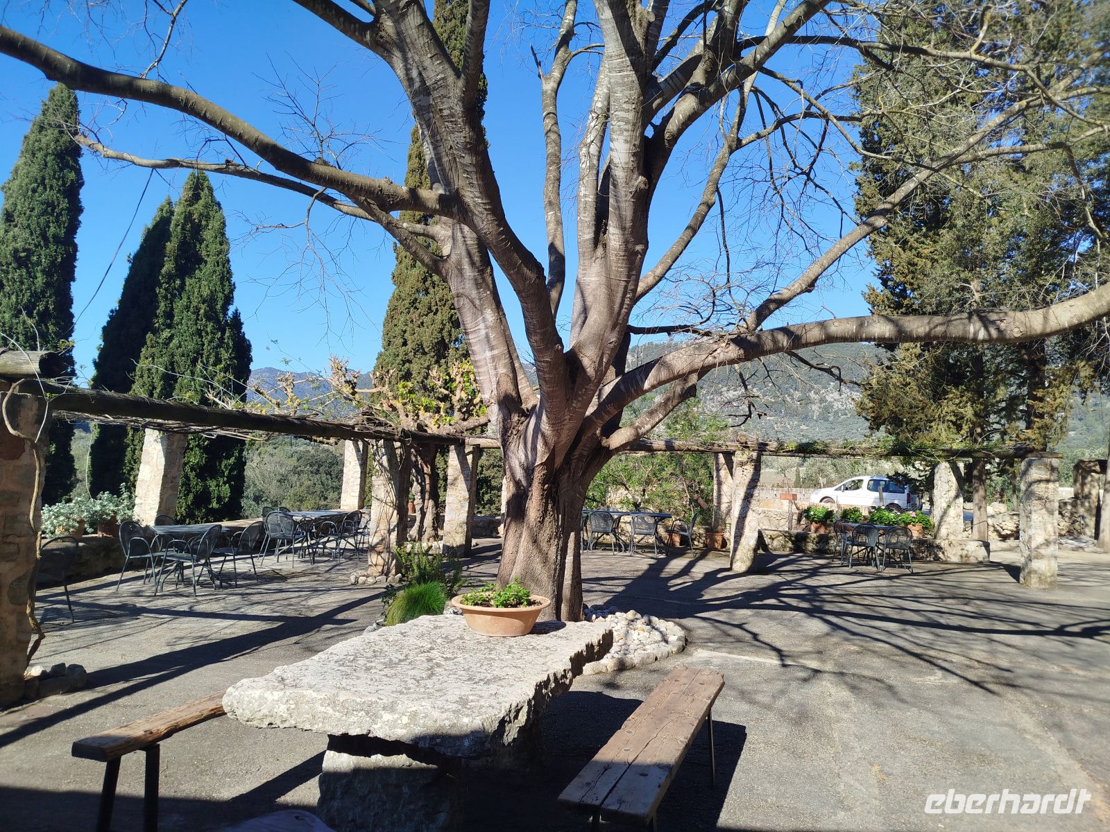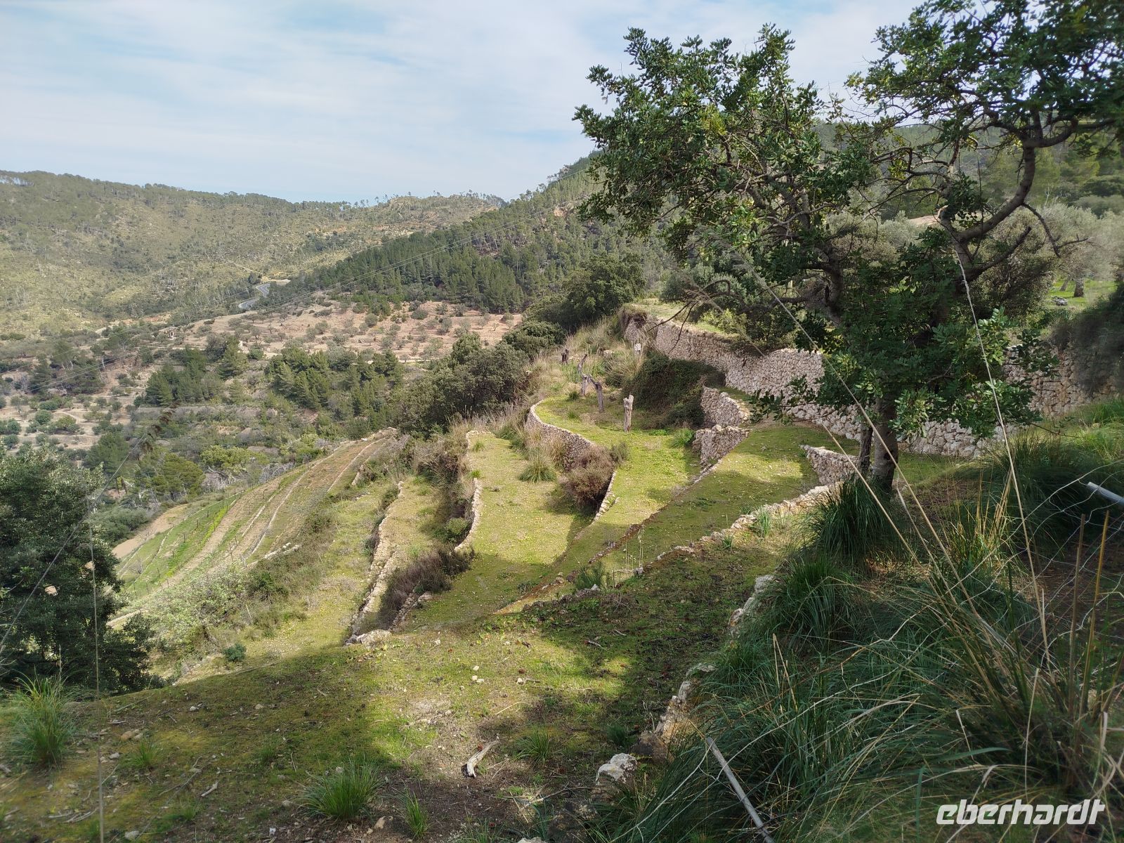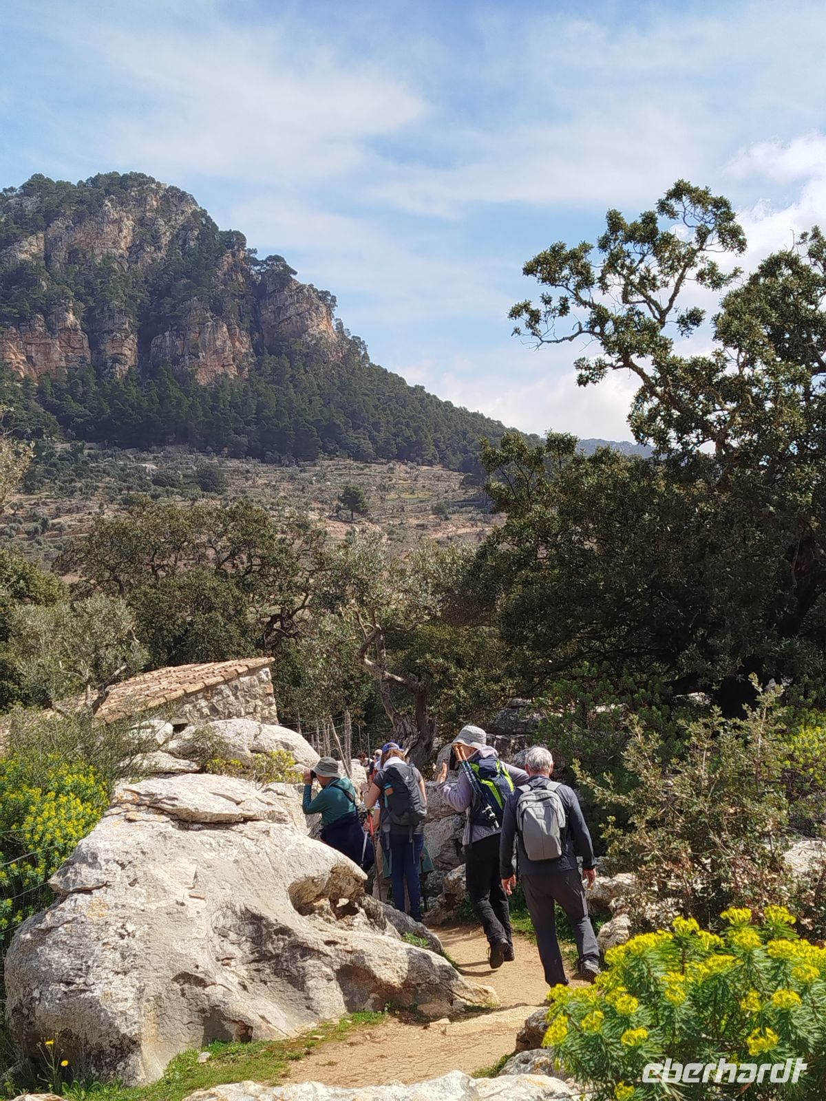 Heute ging es mal in die Inselmitte. Bei La Granja verließen wir unseren Bus und begaben uns auf die Wanderung Cami des Correu. Der alte Postweg ist heute Abschnitt eines internationalen Wanderpfads. Wir kletterten über Wurzeln und Steinen ,in einem Steineichenwald entlang. Von hier hatten wir immer einen Blick auf die fruchtbare Landschaft und die hier angelegten Terrassenwirtschaften. Im kleinen Örtchen Banyalbufar angekommen, kaperten wir die Aussichtsplattform des Hotels "Baronia", wieder mit toller Sicht, und ließen uns eine Erfrischung schmecken.