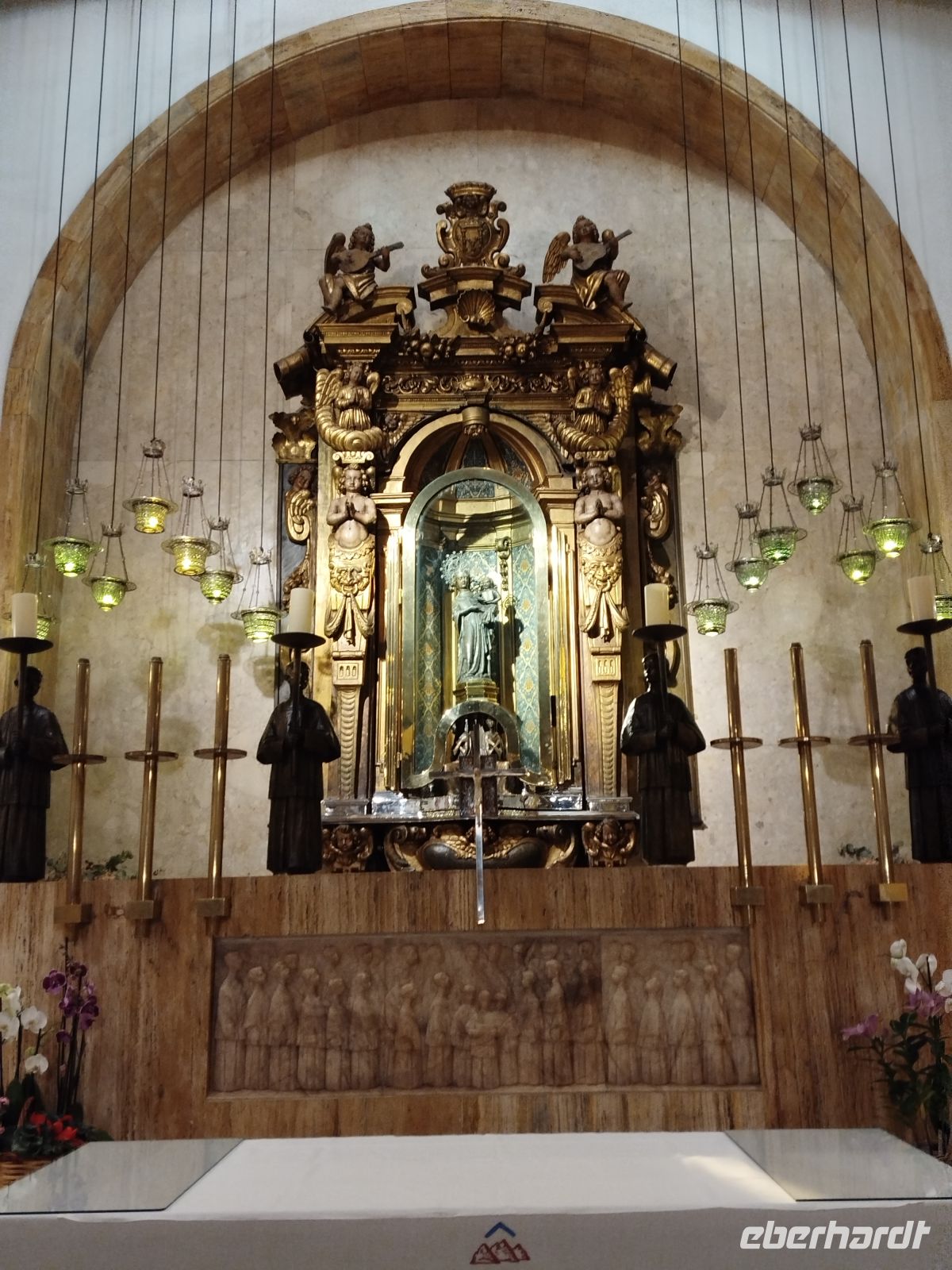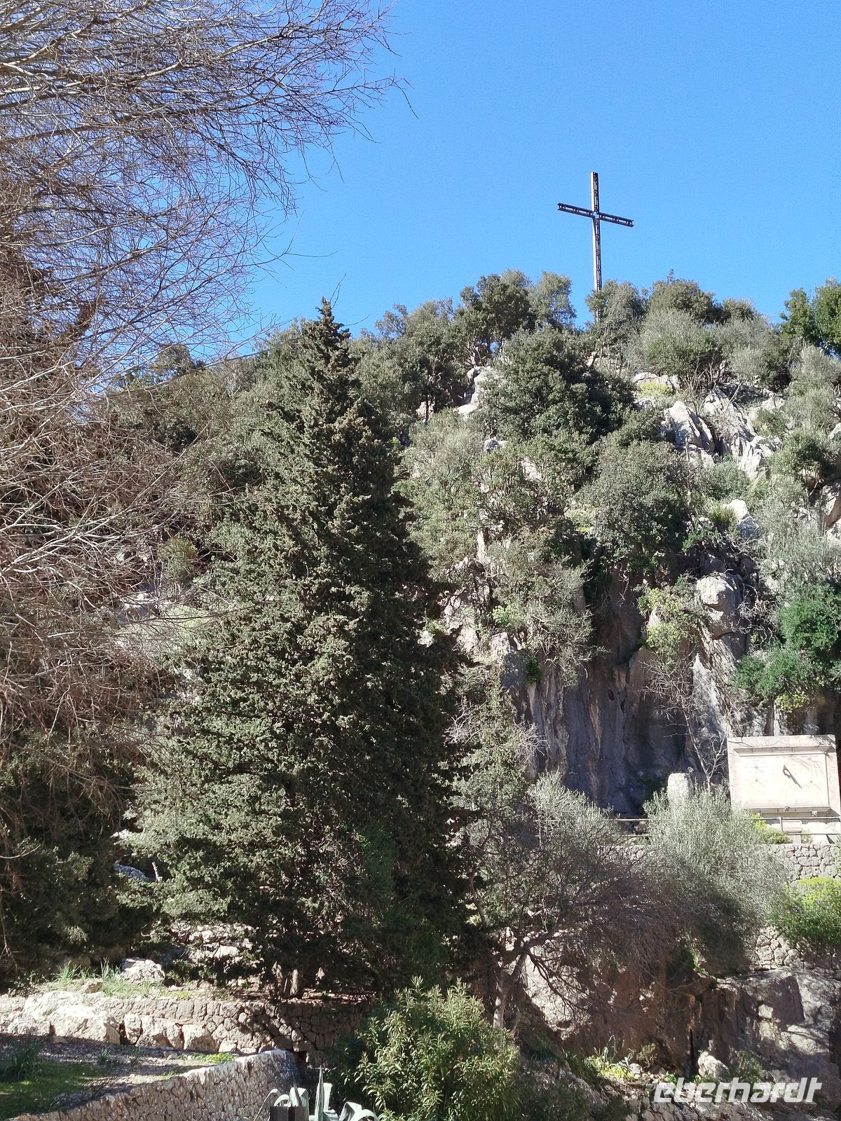 Im Anschluß fuhren wir in die Bergwelt des Tramuntana Gebirges .Hier befinder sich der bedeutendste Wallfahrtsort der Insel .Kloster Lluc. Es ist auch die Heimat des Knabenchors "Els Blauets"die immer noch die Messen, mit ihrem Gesang, begleiten.Wir erreichten das Kloster natürlich über einen alten Pilgerpfad, wo sich uns pikaresk gestaltete Felsformationen auftaten.Hier stellten wir auch fest : die Insel ist steinreich, wir stolperten über Unzählige ! Um dies zu verdauen mußten wir einen mallorquinischen Kräuterlikör - Tunel Hierbas - probieren. Wer wollte wanderte noch den Kalvarienberg zum Kreuz hinauf und hatte von dort eine gute Aussicht über den gesamten Klosterkomplex. Ein langer ,sehr abwechslungsreicher Tag lag ,fast, hinter uns.
