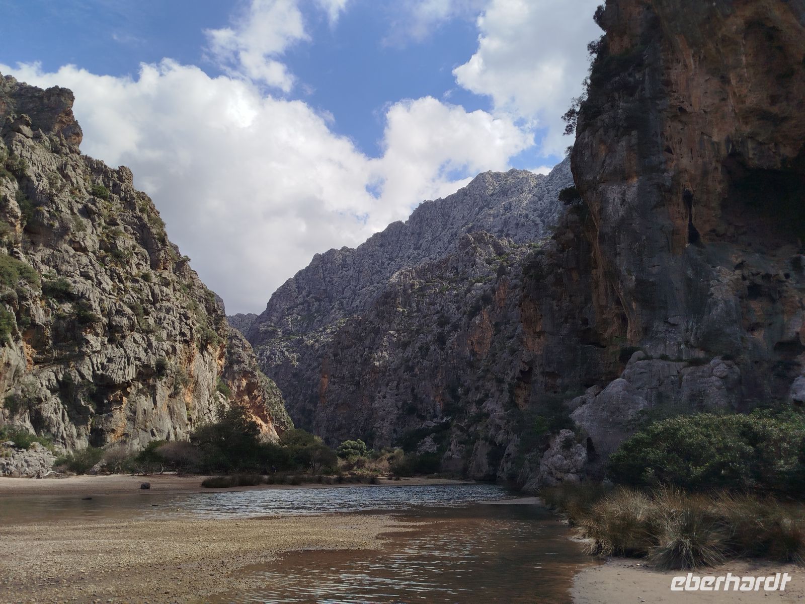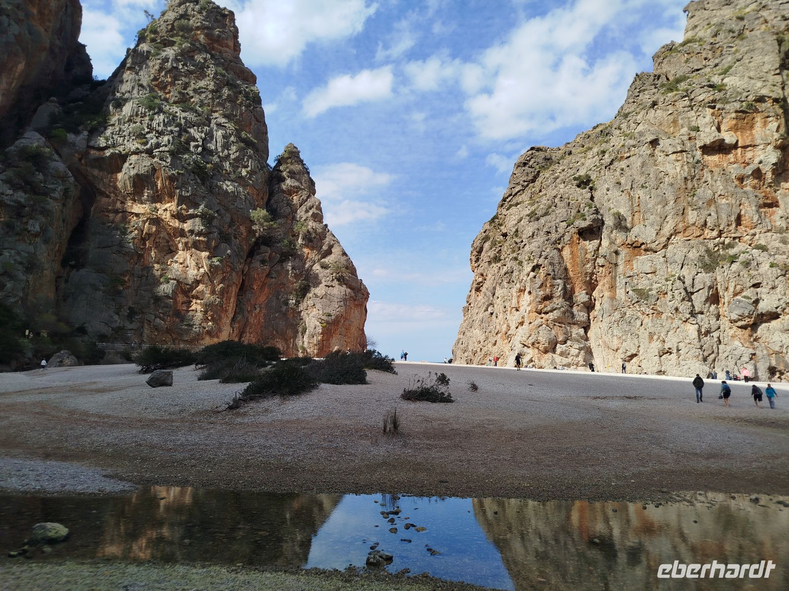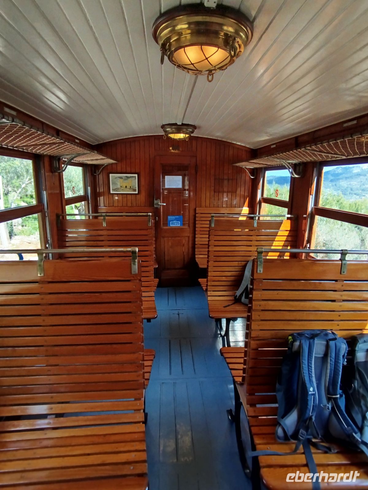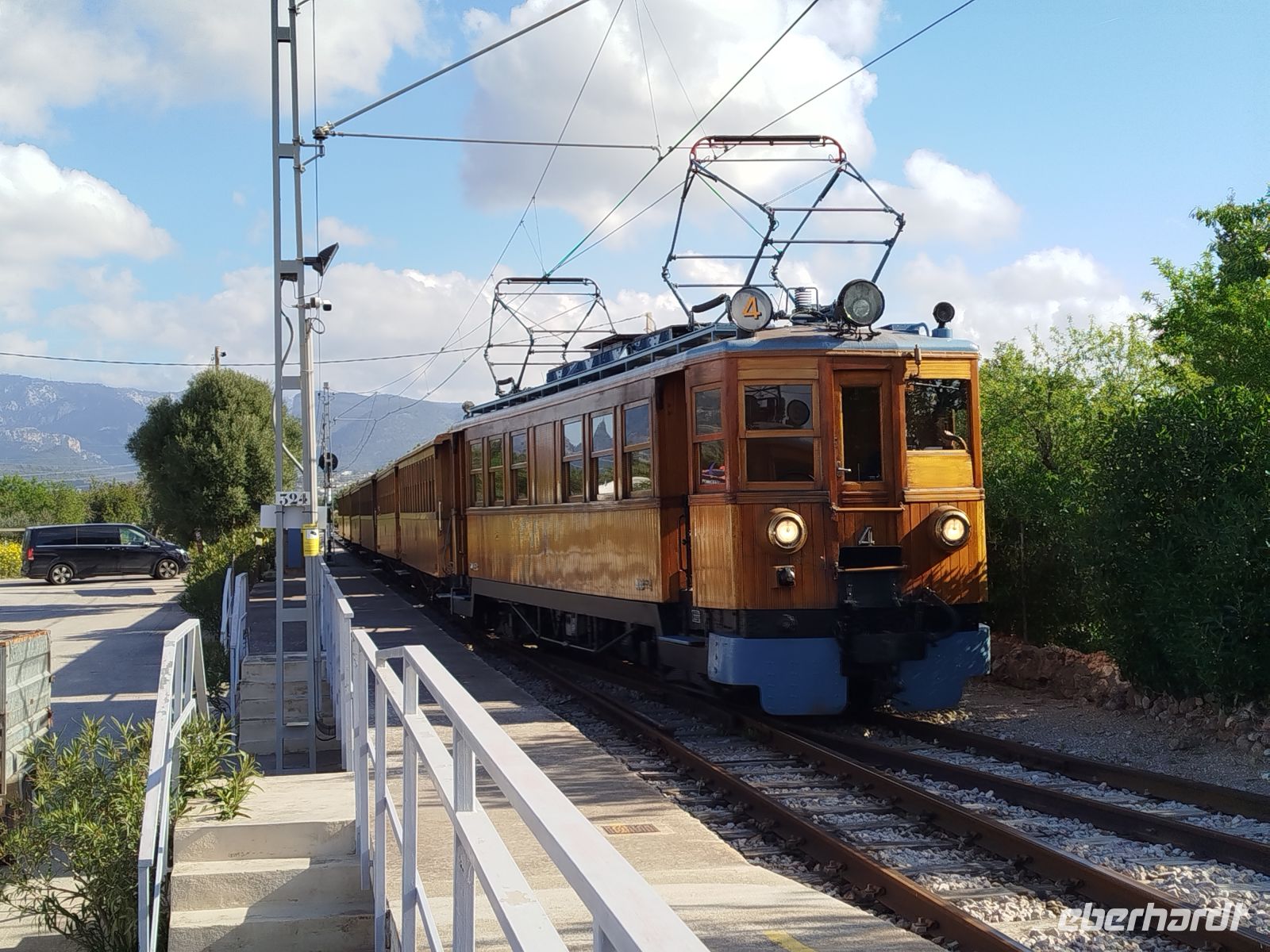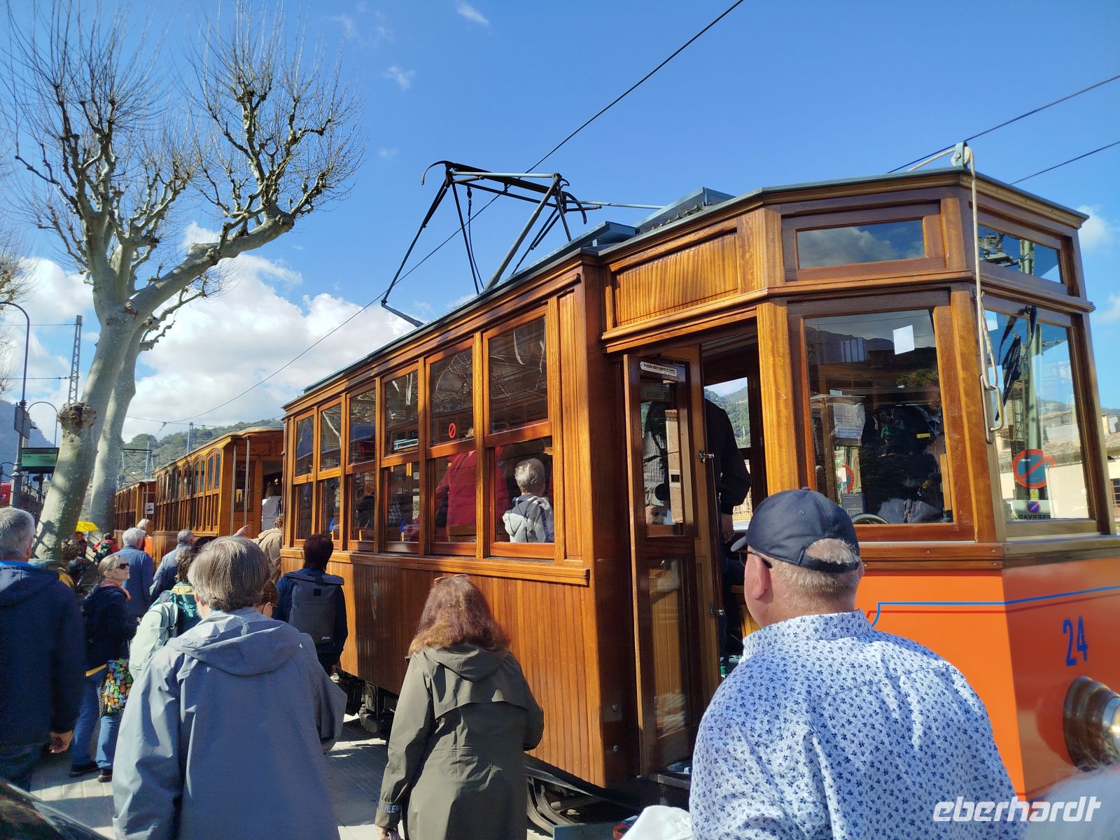 Der Bus brachte uns zum Touristen Bahnhof von Palma und da stand er auch schon, schnaufend ,auf uns wartend da.Die historische Eisenbahn "Roter Blitz" genannt. Sie brachte uns 27 km und durch 13 Tunnel fahrend nach Soller. Hier mußte der Umstieg in die alte Straßenbahn "Orangenexpress"schnell umgesetzt werden. Mitten durch die Stadt und Citrushaine gelangten wir nach Port de Soller. Zum bummeln blieb leider keine Zeit .Im Hafen lag schon unser Schiff zum "Auslaufen" bereit. Kurz nach dem Start mußten wir zurück in den Hafen, Motorschaden.Nur gut dass wir noch in Hafenweite waren und schnell drehen konnten.Ein neues Schiff wartete bereits auf uns und der Umstieg ging zügig voran. Das Meer war heute etwas rau und einige Gäste hatten ,trotz der herrlichen Küstentour,sehr darunter zu leiden. Das Anlegemanöver, in der Bucht von Sa Calobra, war auch etwas holprig aber gut zu schaffen. Wir entschlossen uns für einen kleinen Spaziergang. Durch ein Felstunnel erreichten wir eine romantische Schlucht (Torrent de Pareis ) ,die ,wenn das Meer mitspielt, unbedingt zum Baden einläd. Der Bus holte uns dann ab und es sollte hoch hinaus gehen. Wir bewältigten 800 m Höhenunterschied auf 12 Kilometer atemberaubender Serpentinenstraße,immer wieder mit Blick aufs Meer und die eizigartige Gebirgslandschaft. Antonio Parietti hieß der Schöpfer der ,1932 fertig gestellten, Panoramastraße.