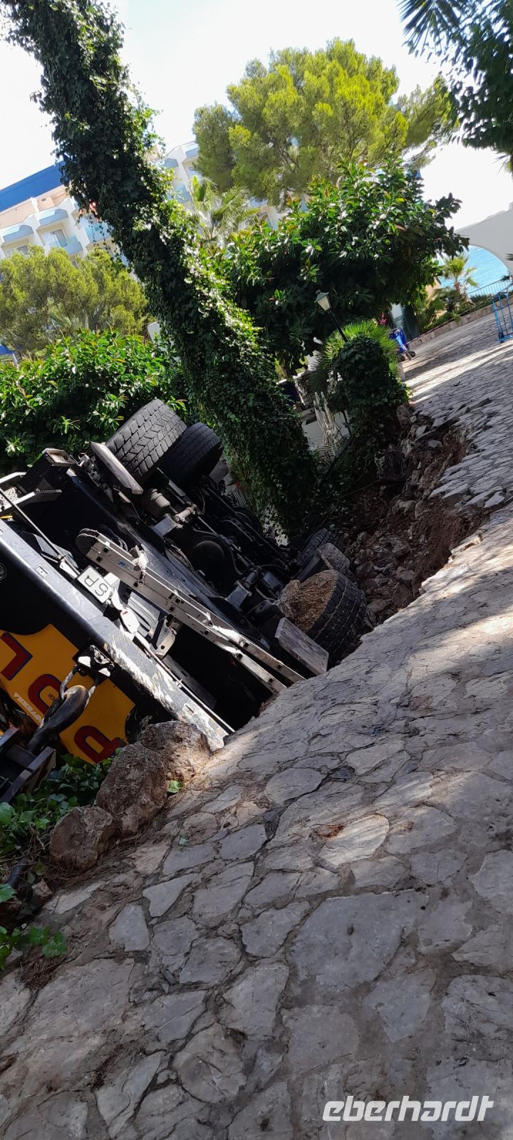 Dann gehts weiter - herrliche Berglandschaft -in Richtung Pollenca. Immer wieder höre ich "so habe ich mir Mallorca nicht vorgestellt". Fernab vom Strandtrubel zeigt die Insel ihr anderes Gesicht - wild und schön. Wir erreichen die alte Römersiedlung Alcudia mit ihrer gut erhaltenen Stadtmauer und bleiben dort zur Mittagspause. Unzählige Lokale laden zum Imbiss ein. Hier läßt sich´s gut sein. Aber die Rückfahrt geht los und über das Feuchtgebiet von Albufeira fahren wir auf der Autobahn zurück ins Hotel. Unterwegs lese ich die interessante Historie des Hotels Bon Sol vor. Ein Haus, das stets mit Herzblut geführt wird. Wir schauen gleich in den Park und sehen, daß der Kran noch immer liegt. Niemand weiß, wie er geborgen werden kann.....