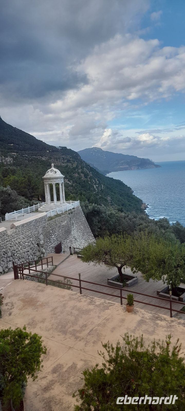 Nach dem Frühstück beginnt die schöne Fahrt hoch nach Valldemossa. Wunderschön gelegen, sieht man die Kartause, in der Frederic Chopin den Winter 1838/39 mit seiner Lebensgefährtin George Sand verbracht hat. Entlang der spektakulären Küstenstraße über Deia zum steil an der Küste liegenden Landsitz Son Marroig. Dieser gehörte Erzherzog Ludwig Salvator, der "Alexander von Humboldt von Mallorca". Er verfasste unzählige Bücher über die Flora und Fauna der Balearen, kaufte alles auf, was evtl. zerstört werden sollte.