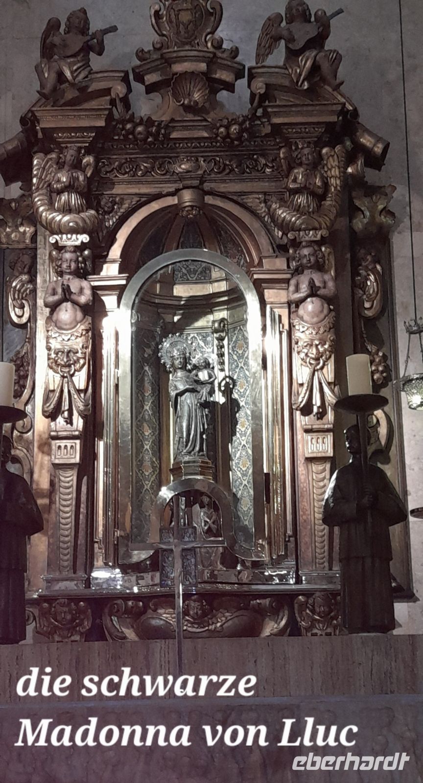 Weiter gehts auf abenteuerlicher kurvenreicher Straße bis zum Kloster Lluc. Viele Radfahrer stellen die Nerven unseres Fahrers auf eine harte Probe. Aber dann nimmt uns die Ruhe dieses Wallfahrtsortes gefangen und wir besuchen die "schwarze Madonna", die Schutzpatronin der Insel.