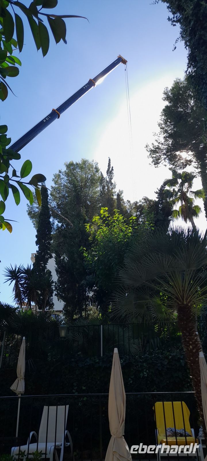 Mit dem Linienbus gehts wieder ins Hotel und jeder entspannt am Nachmittag. Schwimmen, lesen, sich massieren lassen oder einfach gar nichts tun. Vorher beobachten wir aber die spektakuläre Bergung der abgestürzten Bäume im Park. Mittels eines riesigen Krans werden die zersägten Äste und Stämme über den Park gehievt. Da staunt man über diese Technik.