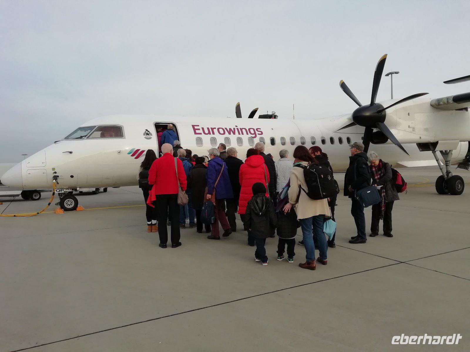 Mit den ersten Eberhardt-Reisegästen treffe ich mich am Morgen auf dem Flughafen Dresden. Wir wollen dem Wetter in Deutschland mit Sturmböen und Hagelschauern für eine Woche entfliehen und die Zeit der Mandelblüte in Mallorca genießen. Pünktlich 8.40 Uhr startet unser Flieger nach Düsseldorf. Hier müssen wir umsteigen. Und auch diesmal geht es fast pünktlich mit einer Maschine von Eurowings weiter nach Mallorca. So erreichen wir die Insel am frühen Nachmittag. Alles klappt mit dem Gepäck und am Treffpunkt begrüßt uns Miguel. Mit einem Kleinbus fahren wir zum nahegelegenen Hotel „"Maria Isabel" an der Playa de Palma. Es werden die Zimmerschlüssel verteilt und die Zimmer bezogen. Unsere Gäste aus Berlin sind bereits am Vormittag angekommen und haben schon erste Erkundungsspaziergänge gemacht. Auch die Dresdner Gäste packen schnell ihre Koffer aus und laufen das erste Mal bis zum Meer - es ist ja nicht weit. Nach dem Abendessen treffen wir uns in der Bar mit Isabell von der örtlichen Reiseagentur. Sie gibt uns einige organisatorische Hinweise und stellt die Ausflüge vor. Dann stoßen wir mit einem Cocktail auf die kommenden Tage an.