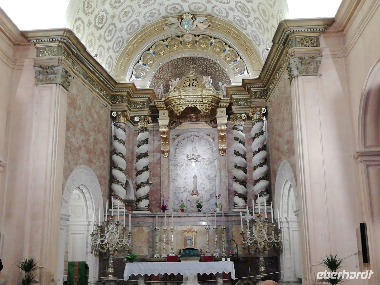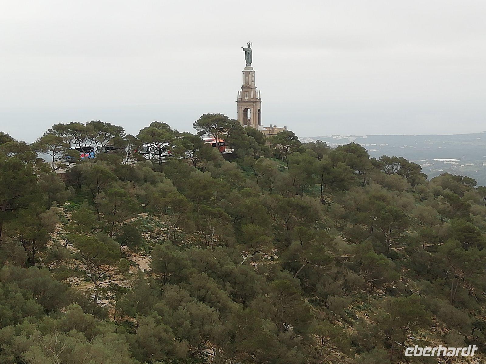 Der Morgen empfängt uns mit milden 14 Grad. Nach dem Frühstück treffen wir am Bus unseren örtlichen Reiseleiter. Joan wird uns die nächsten Tage bei unterschiedlichsten Ausflügen seine Insel zeigen. Der Osten steht heute auf dem Programm. Zunächst fahren wir durch die weite Ebene nach Felanitx. Nun schlängelt sich die Straße 4,5 Kilometern über Haarnadelkurven auf 510 Meter hoch zum Wallfahrtsort San Salvador. Da ist es gut, dass wir heute mit einem kleinen Bus unterwegs sind. Als erstes besuchen wir die bekannte Wallfahrtskirche. Hier schauen wir uns den Alabaster-Altar und die kleine Madonna an. Dann lauschen wir Klängen aus Richard Wagners „Tannhäuser". Von der Aussichtsterrasse haben wir anschließend einen schönen Rundblick bis zum Meer. An der 7 Meter hohen Christus-Statue steigen wir wieder in den Bus.