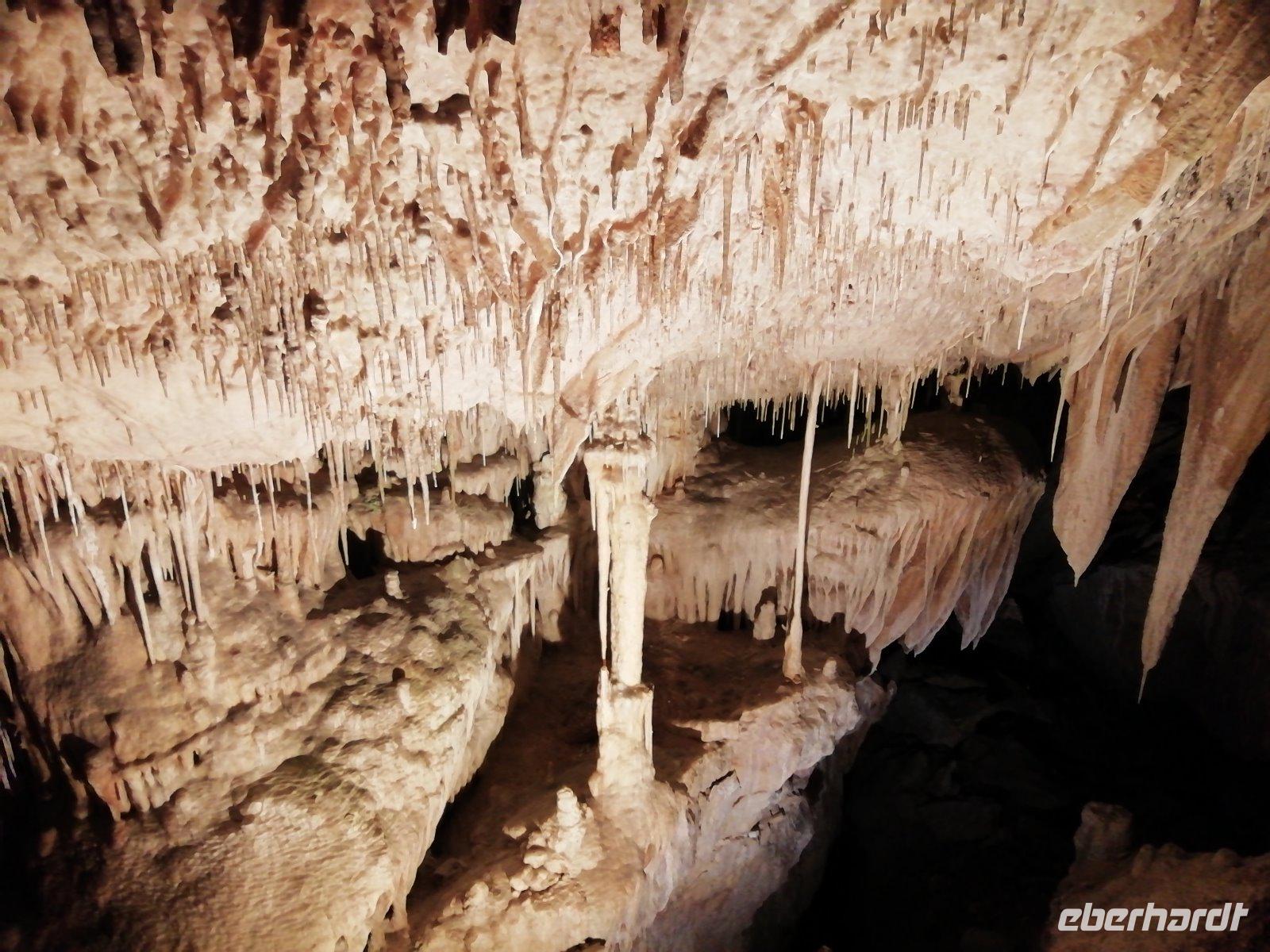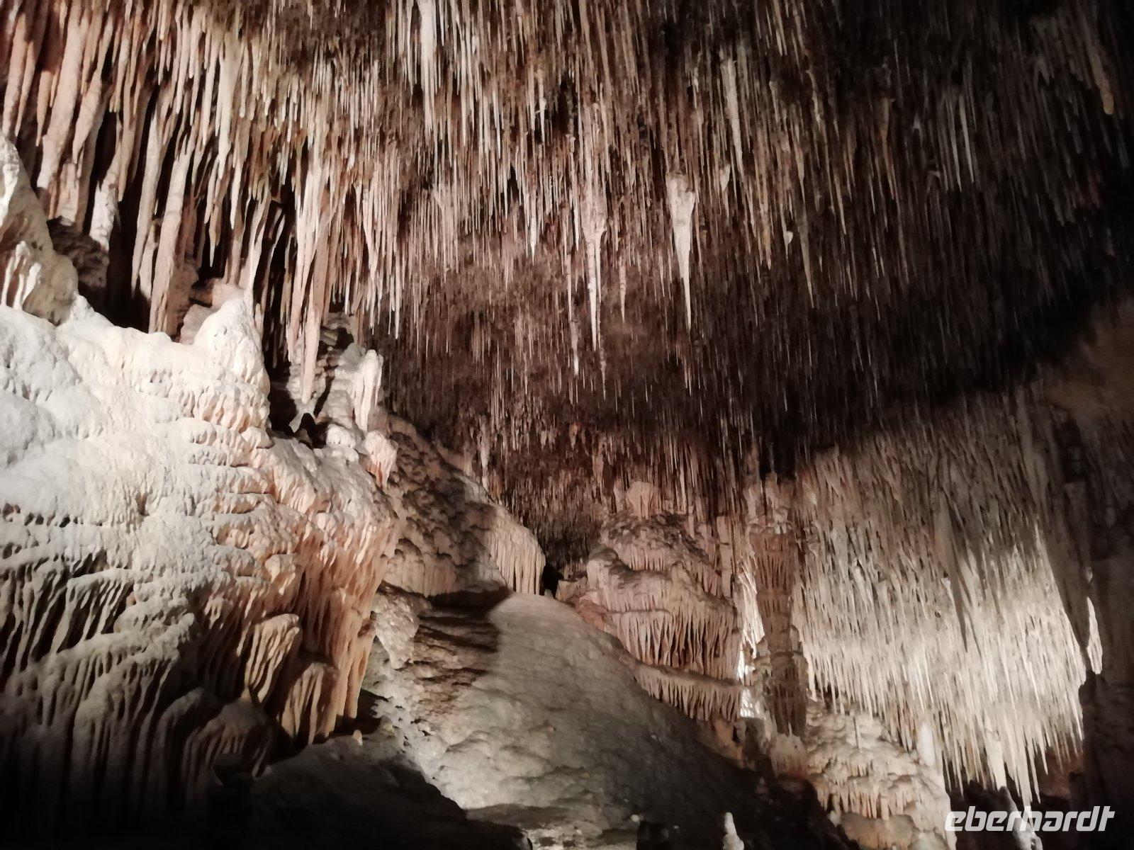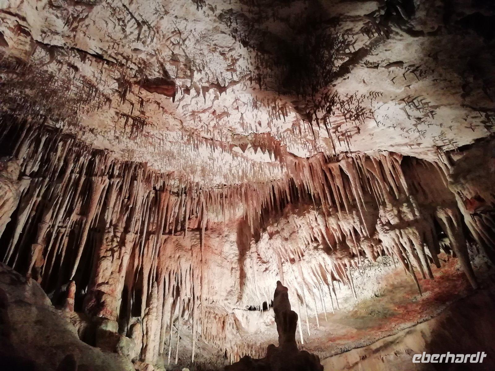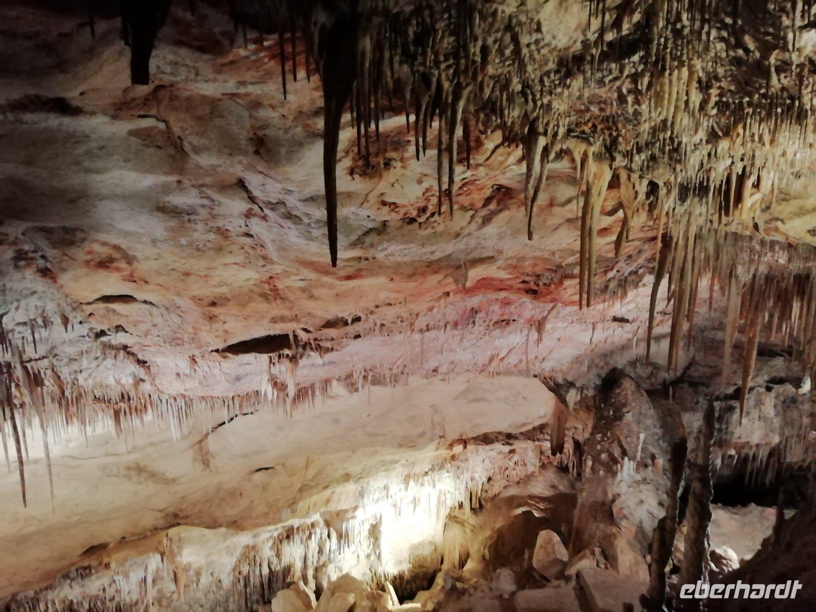 Unser letztes Ziel an diesem Tag ist die „Drachenhöhle". Dabei handelt es sich um die größte der 5 begehbaren Tropfsteinhöhlen auf Mallorca. Hier kann man wirklich von einem „Wunder der Natur" sprechen. Das einmalige Höhlensystem erstreckt sich auf einer Länge von 1,7 Kilometern. Staunend laufen wir zwischen den unzähligen bizarren Kalksteingebilden. Immer wieder klicken die Fotoapparate. Ein beeindruckender Abschluss unseres unterirdischen Besuches ist ein kleines klassisches Konzert auf dem Martelsee. Auch eine kurze Bootsfahrt kann man noch unternehmen, bevor es über die Stufen wieder nach oben ins Freie geht.
