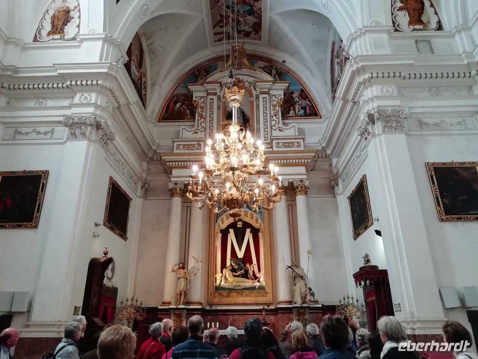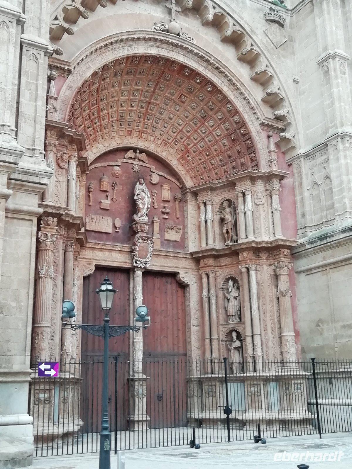Nun aber widmen wir uns unserem eigentlichen Ziel: Palma. Unterhalb der Kathedrale verlassen wir den Bus. Hier bietet sich ein schönes Fotomotiv, denn das imposante Gebäude präsentiert sich wie eine überdimensionale Orgel. Links davon befindet sich der Königspalast, rechts der Bischofspalast. Vorbei an der Figur des Steinwerfers gelangen wir in den „Garten der Könige", über die Treppen dann zur Kathedrale. Durch das „Almosenportal" geht es hinein in das weit über die Landesgrenzen hinaus bekannte Bauwerk.