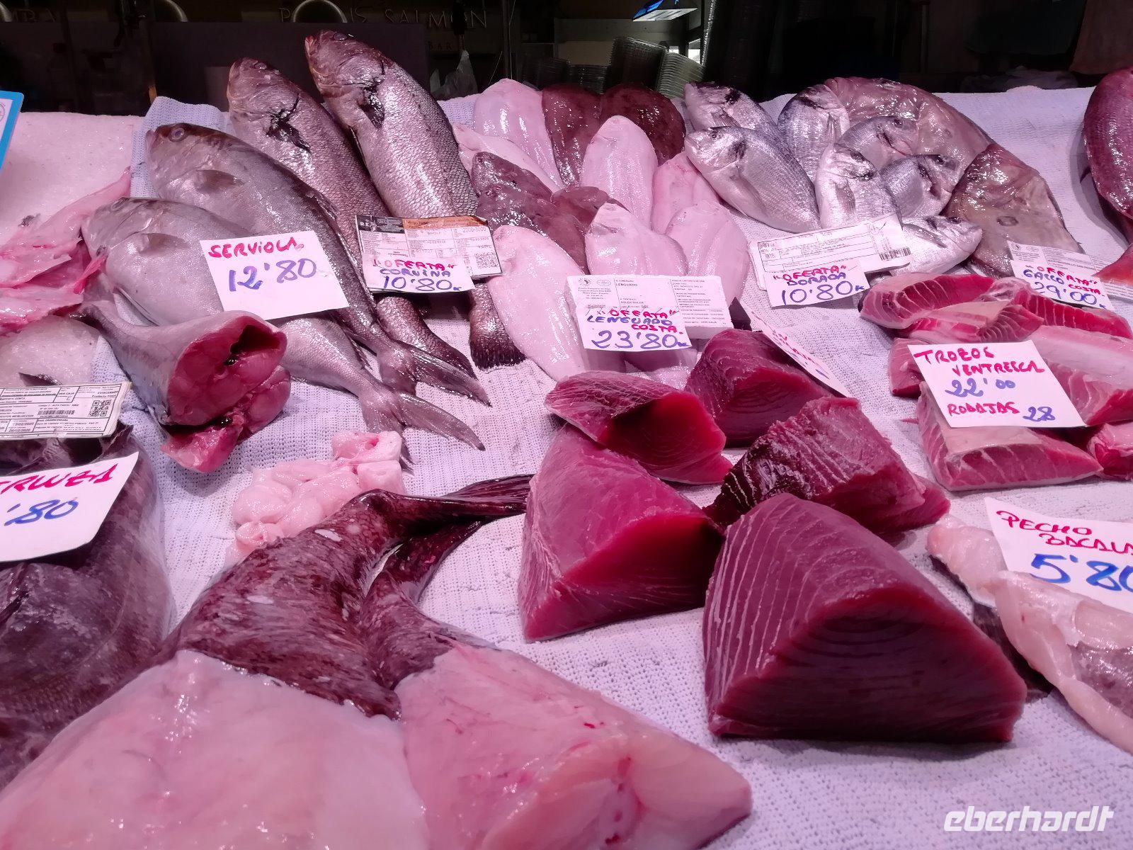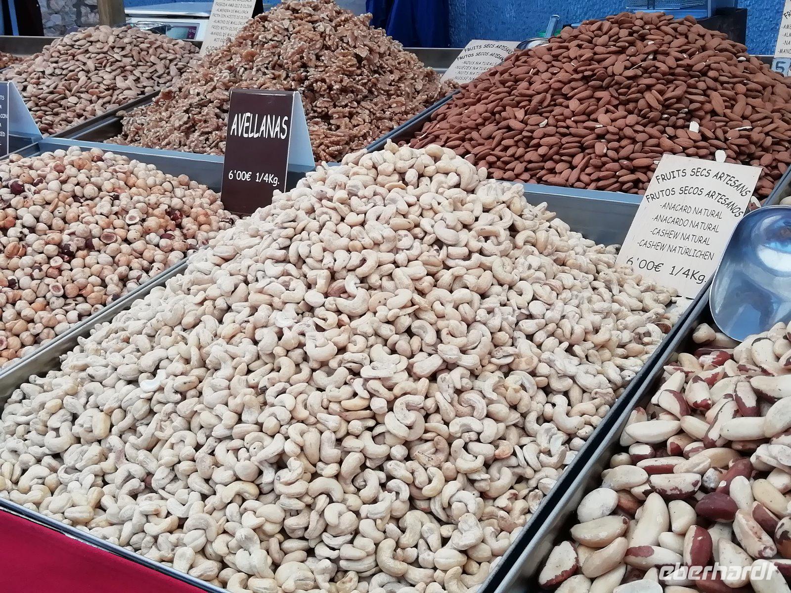 Nach dem Besuch der Kathedrale spazieren wir zunächst durch die engen Gassen der Hauptstadt. Bald erreichen wir das Rathaus und den Placa Major. Wir nehmen den Weg über die Fußgängerzone San Miquel, wo sich edle Geschäfte aneinander reihen. Unser Ziel ist die Markthalle von Palma. Hier ist besonders die Auswahl an Fisch sehr groß. Aber auch Obst, Gemüse, Fleisch- und Käsespezialitäten werden angeboten.