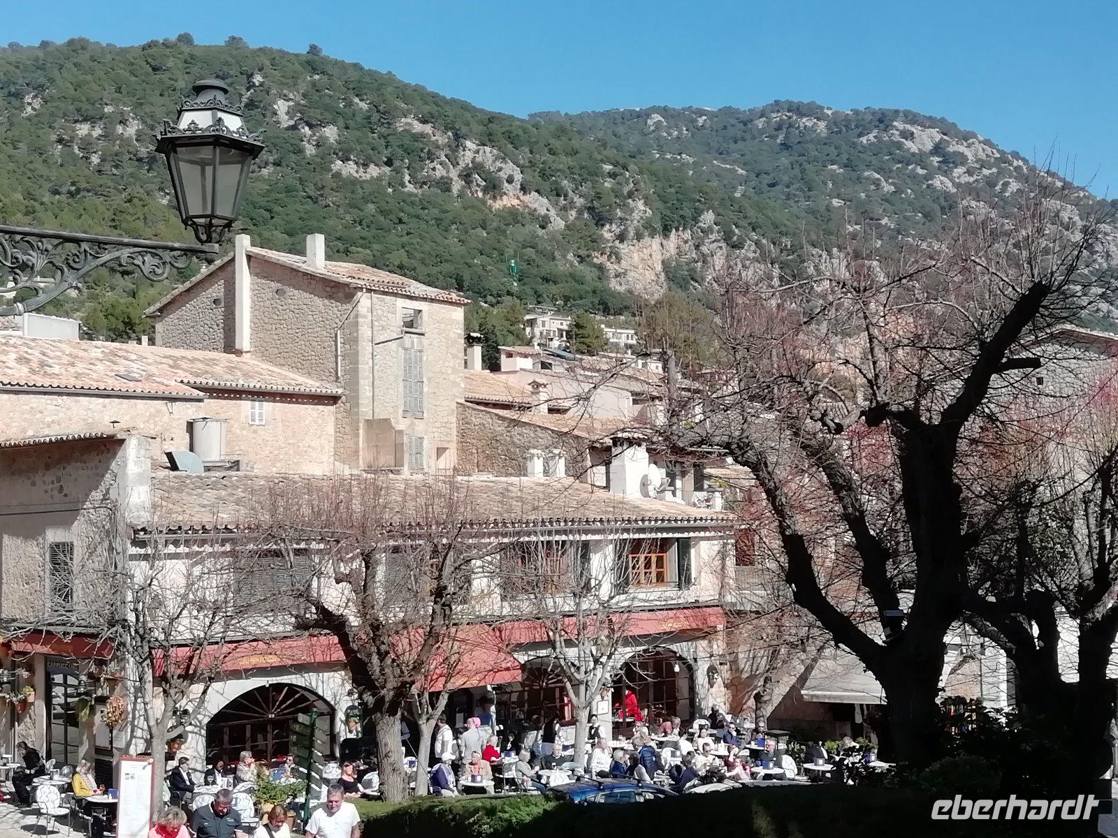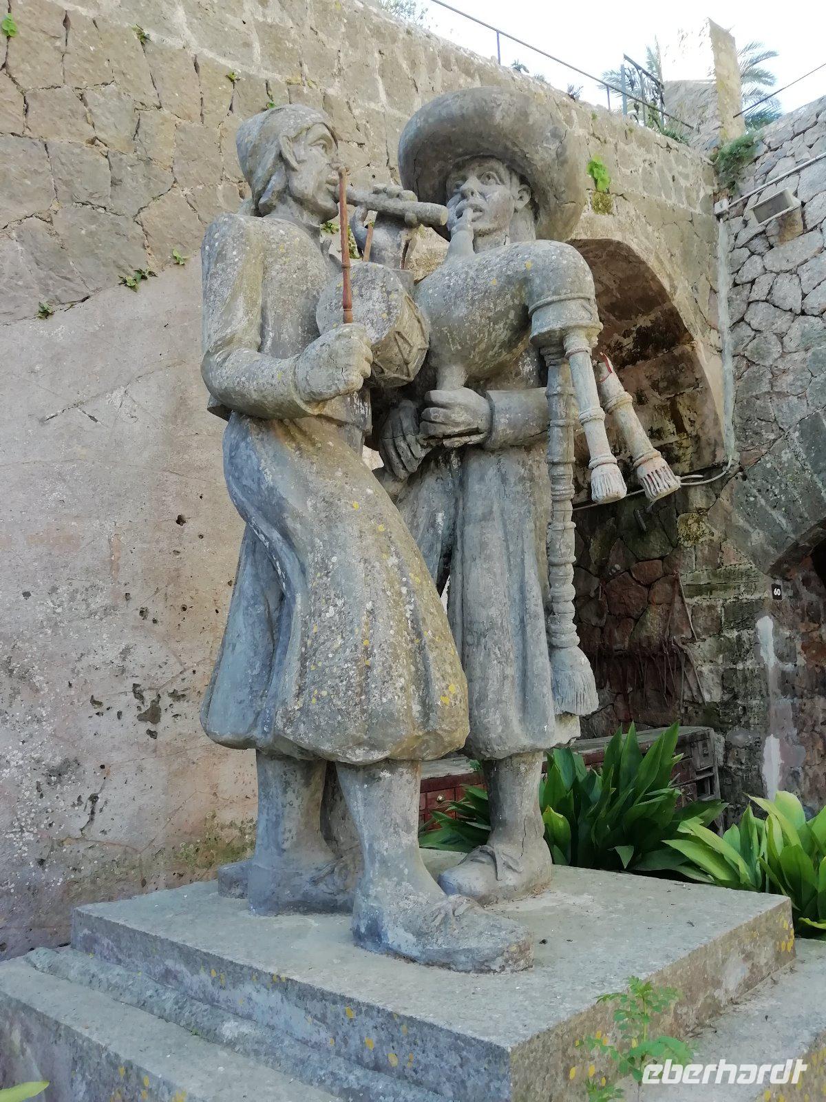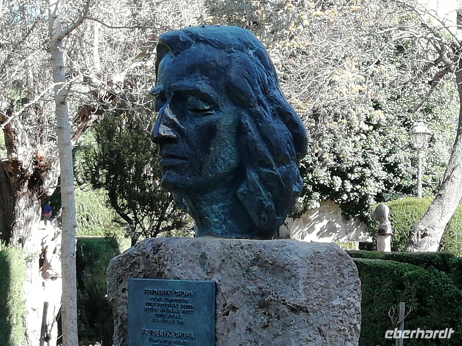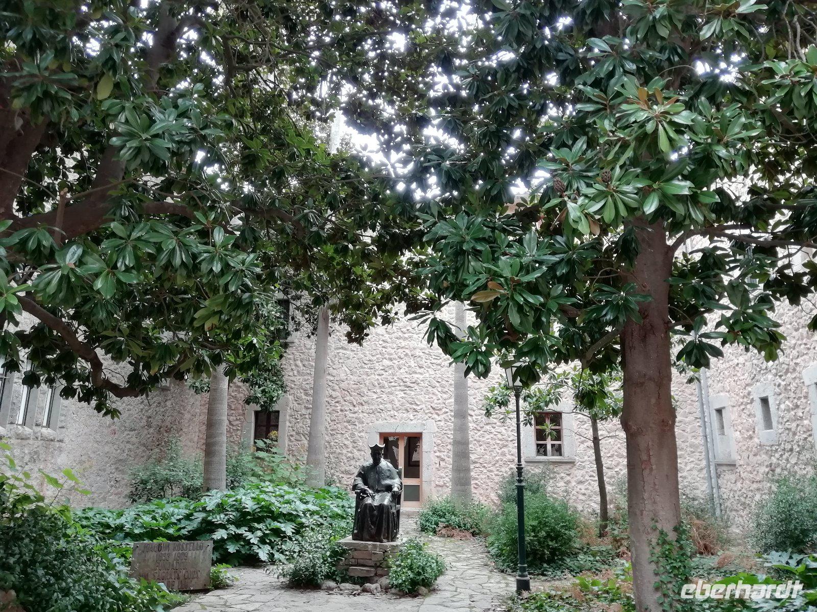 Weiter geht es nach Valldemossa, einen besonders hübschen Ort, dem man während eines Mallorca-Aufenthaltes unbedingt einen Besuch abstatten sollte. Hier verbrachten Frederic Chopin und George Sand den Winter 1838/39. Wir kehren als erstes in das kleine Restaurant „Sa Foganya" ein und lassen uns eine typische Insel-Spezialität schmecken: Coca Patata. Dies ist eine Art Kartoffelgebäck, das - mit Puderzucker bestäubt - dem deutschen „Berliner" ähnelt. Dazu schmeckt am besten Kakao. Anschließend besuchen wir die Kirche des Kartäuserklosters, den Kreuzgang und die kleine Apotheke. Dann erklingt bei einem Klavierkonzert Musik von Chopin. Auch die Räume, in denen Chopin bei seinem Aufenthalt lebte, können wir besichtigen. Als Abschluss geht es noch in den Rosengarten, wo das Denkmal des Komponisten steht. In der verbleibenden Zeit spazieren wir in den engen, verwinkelten Gassen des Ortes. Uns fällt auf, dass an vielen Häusern handbemalte Keramikschilder angebracht sind. Sie zeigen Bilder aus der Lebensgeschichte von Katarina, der Schutzpatronin Mallorcas.