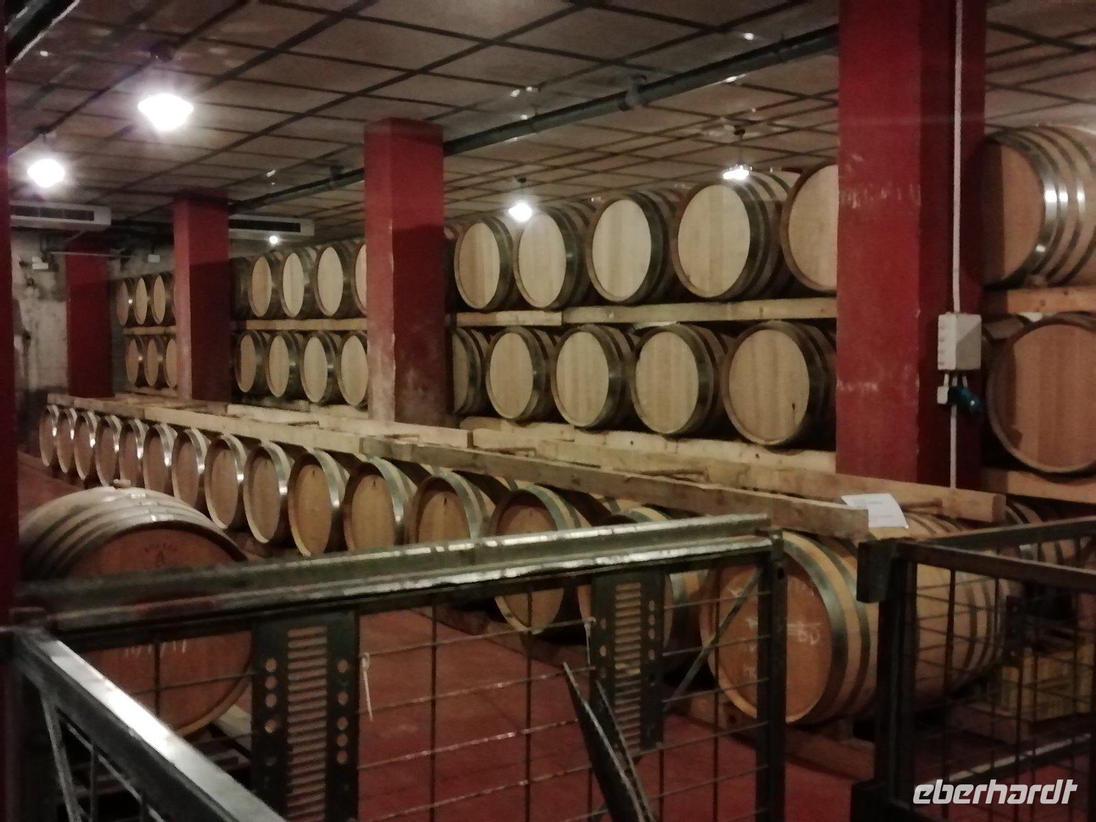 Dass auf der Insel auch Wein angebaut wird, hat uns Joan schon erzählt. Nun wollen wir ihn probieren. Dazu bringt uns der Bus nach Santa Maria, wo sich die größte und bekannteste Bodega Mallorcas befindet. Sie trägt den Namen „Macia Batle". Das Weingut wurde 1856 gegründet und wird bereits in der fünften Generation bewirtschaftet. Wir werden von Sandra herzlich begrüßt und erhalten viele Informationen rund um den Wein. Wir sehen u.a. die großen Weintanks, die Abfüllanlage und den Weinkeller. Sandra stellt uns auch das umfangreiche Weinsortiment vor und nimmt uns mit durch den langen Gang, wo die zahlreichen Flaschen lagern. Zum Schluss verkosten wir natürlich den mallorquinischen Wein, probieren die Tapas und das Olivenöl. So mancher nimmt für sich oder die Lieben daheim etwas mit. In guter Stimmung geht es zurück zum Hotel.