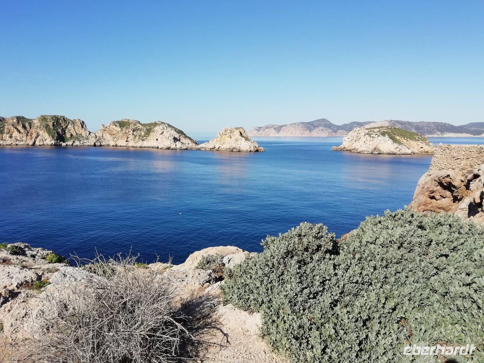 Weiter geht unsere Reise Richtung Norden. Wir kommen dabei durch eine recht flache Landschaft: den „Gemüsegarten" der Insel. Kartoffeln, Artischocken, Salat und Zwiebeln werden hier angebaut, aber auch Obst, wie beispielsweise Erdbeeren und Melonen. Vorbei an Sa Pobla und durch Pollenca erreichen wir die nördlichste Landzunge, die Halbinsel Formentor. Nun „klettert" der Bus über 230 m nach oben zum Aussichtspunk. Man sagt, hier hat man den schönsten Ausblick von ganz Mallorca. Wir schauen aufs Meer, die Steilküste und die Insel Colomer. Auf der anderen Seite liegt die Bucht von Pollenca uns zu Füßen.