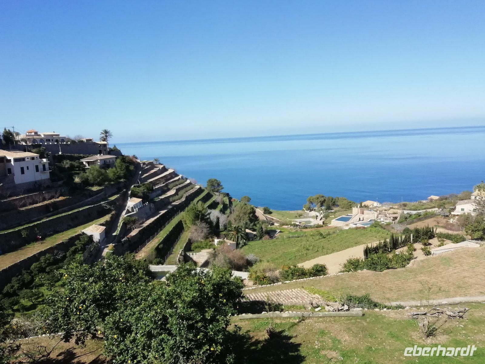 Nach der wieder spektakulären Abfahrt legen wir einen Fotostopp bei den Mandelbäumen ein. Sie präsentieren uns ihre weißen und rosafarbenen Blüten. Der nächste Halt ist an der Bucht von Mendia, wo wir einen kleinen Spaziergang machen.