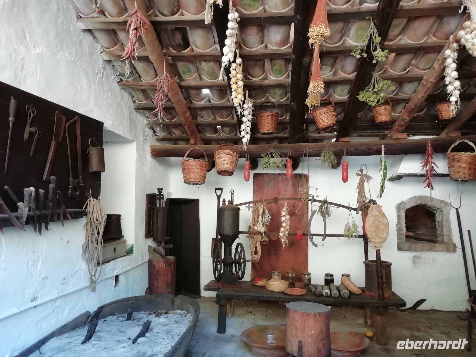 Am Nachmittag besuchen wir das Erlebnisgut „La Granja". Dabei handelt es sich um eine Finca arabischen Ursprungs, die mehreren aristokratischen Familien gehörte. Heute befindet sich hier ein Museum. Während des Rundgangs tauchen wir ein in die Vergangenheit und schauen uns u.a. eine Sammlung landwirtschaftlicher Geräte, den Felsengarten, eine Ölmühle, eine Schreinerei, die Parfümerie, den Weinkeller, das Gefängnis und die Wohngemächer an. Danach haben wir Gelegenheit, verschiedene Süßweine zu probieren und mallorquinische Krapfen, süße Marmeladen, die rote Wurst, den Käse und das bekannte Feigenbrot zu kosten. Auch die kleinen Kekse, die die Einheimischen „Matrosenbrot" nennen, lernen wir kennen. Danach bleibt noch Zeit für einen Bummel durch die Parkanlage oder einen Espresso im Gartenrestaurant. Dann heißt es auch bald Abschied nehmen von Joan, der uns in den letzten Tagen so viel gezeigt und erklärt hat. Dankeschön!