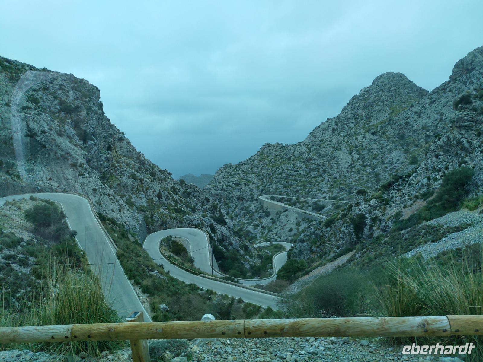 Am vierten Tag begann unsere Inselrundfahrt begaben wir uns auf den Weg in das Tramuntana Gebirge. Wir fuhren durch die schönen Orte Inca, Selva und Caimari. Der erste Stopp war am Kloster Lluc, ein Zwischenhalt für alle Pilger der damaligen Zeit. Nach der Besichtigung fuhren wir weiter zum Puig Major, dem höchsten Berg Mallorcas. Die Spitze kann man jedoch nicht erreichen, da dort ein Militärgelände ist. Die Fahrt bergab brachte uns schließlich zum Naturhafen Sa Colobra, wo wir unsere Mittagspause machten und man einen guten Blick auf die Schlucht Torrent de Pareis hatte. Die letzte Fahrt zu unserem Tagesziel war Soller, wo wir in eine alte Straßenbahn stiegen, die uns zum Bahnhof brachte. Dort setzten wir uns in den „Roten Blitz", der uns durch die schöne Landschaft vorbei an Zitronen und Orangenbäumen nach Palma brachte. Am Rande von Palma angekommen brachte uns der Bus zurück zum Hotel.