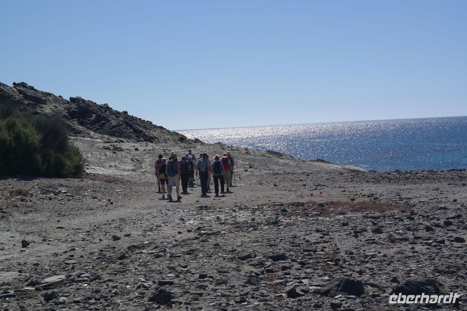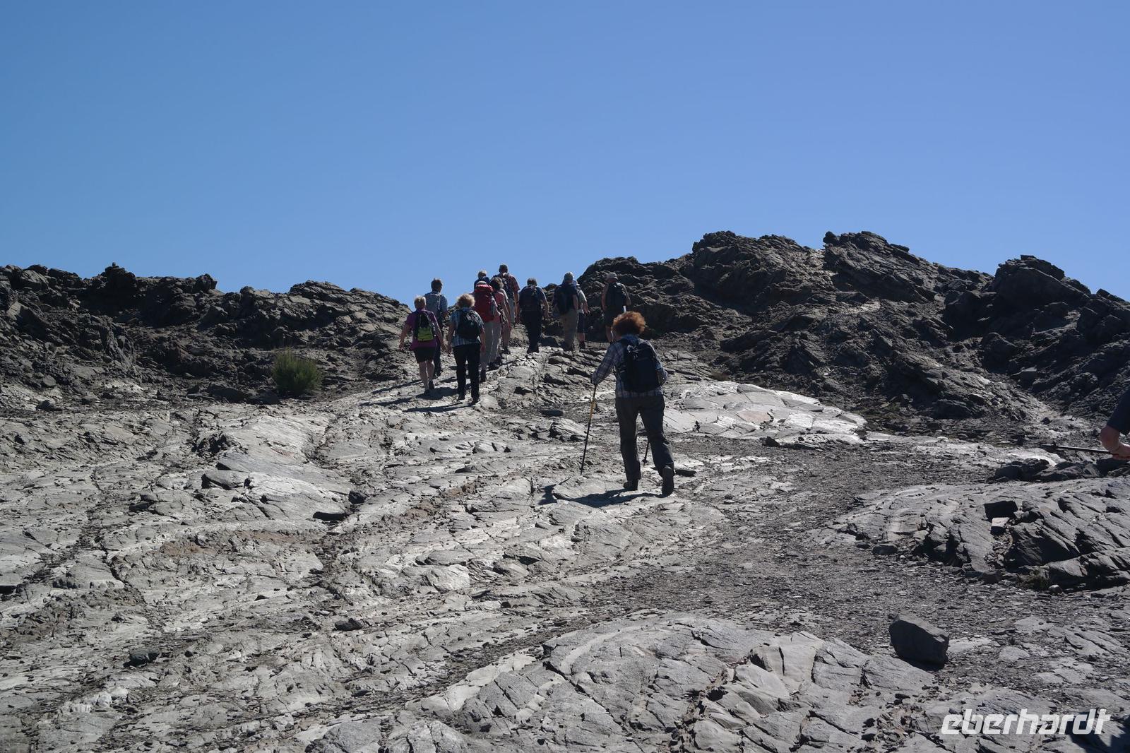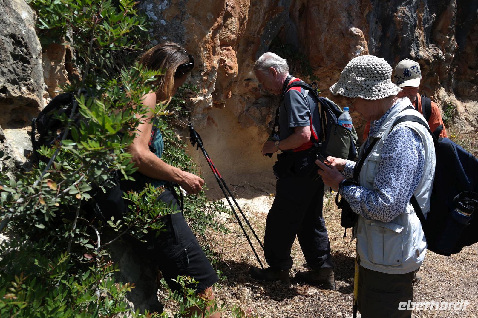 Am Morgen lacht die Sonne schon wieder und unsere Nicole lädt uns ein auf eine neue, tolle Wanderung. Aus dem kalten Deutschland angereist „flehen" wir schon am zweiten Wandertag um Schatten - die Sonne meint es gut mit uns, aber etwas zu gut. Nach einigen Kilometern bemühen wir uns um eine Wanderin, die kurzzeitig Kreislaufprobleme hat - sie ist tapfer und kann die Wanderung fortsetzen.