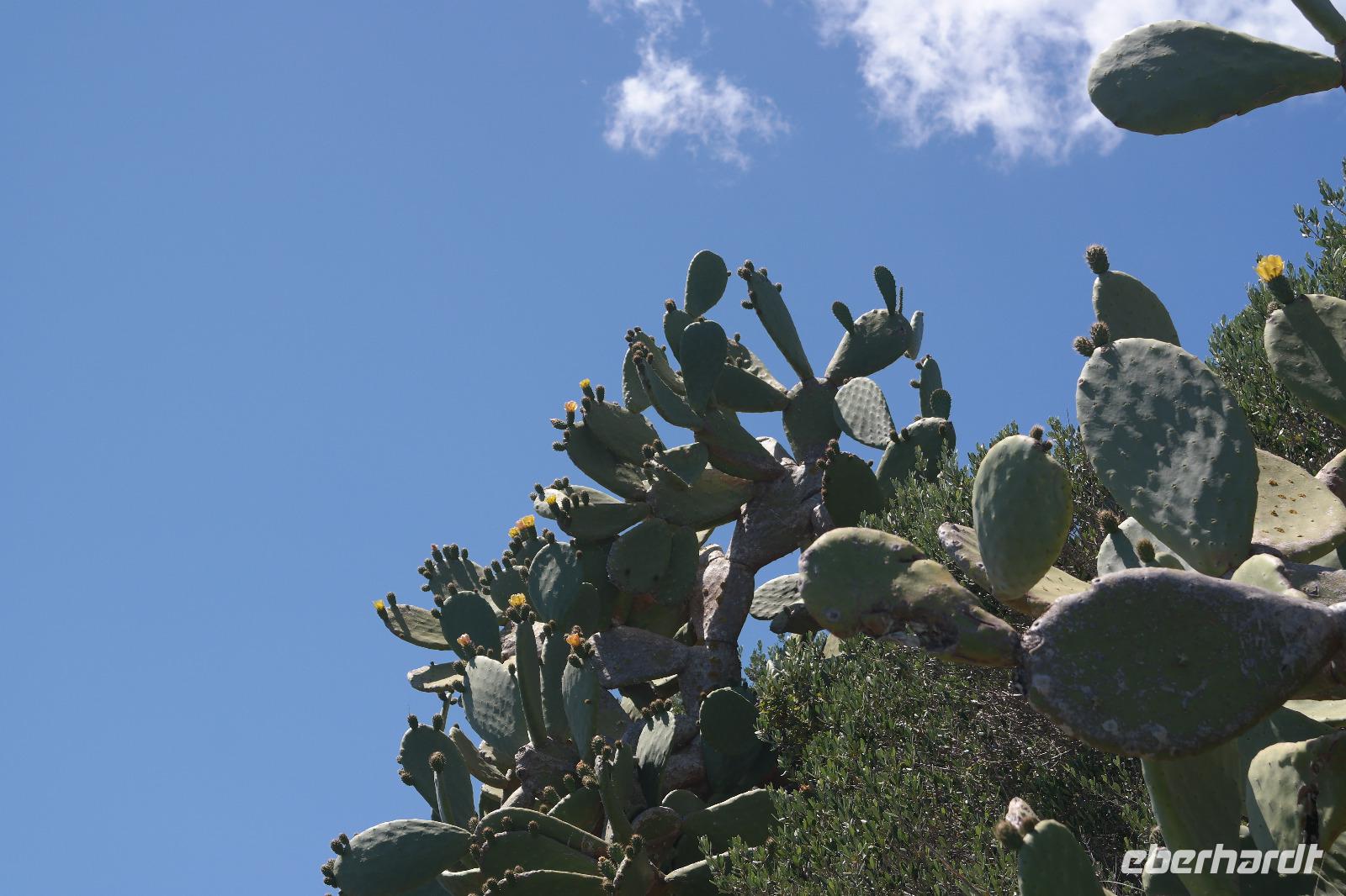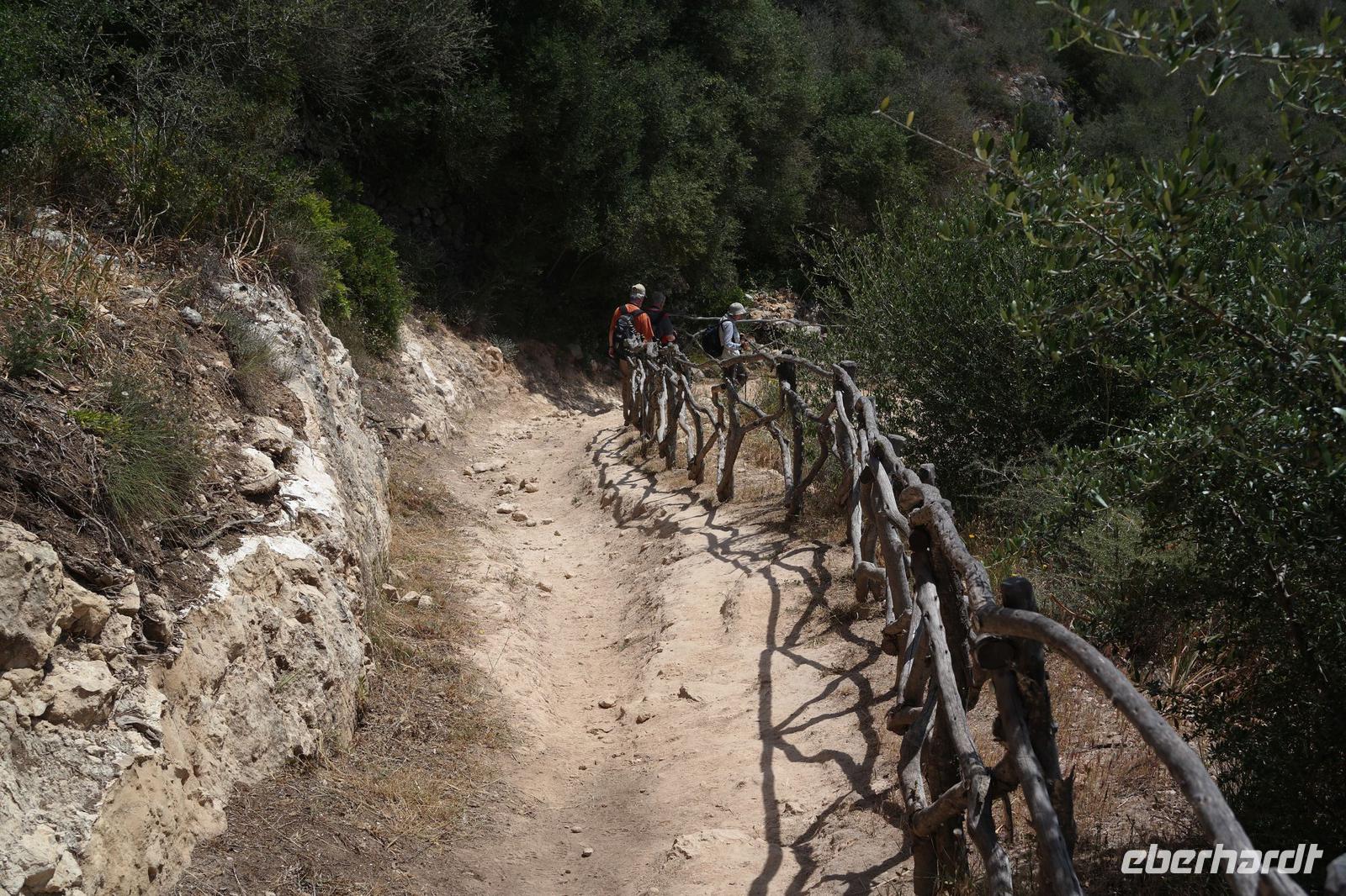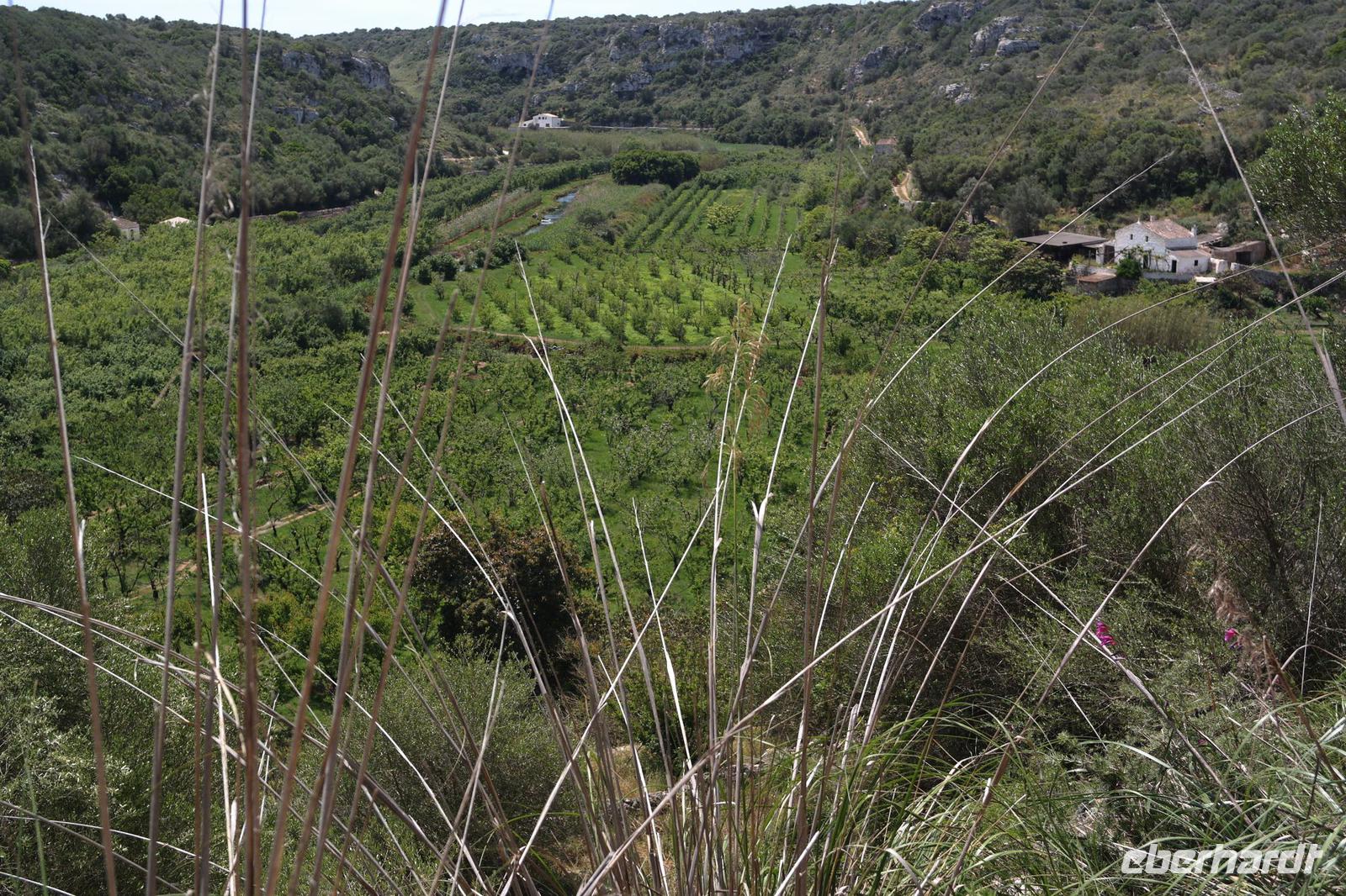 Nach einer kurzen Pause geht es wieder bergab und bergauf, jetzt durch die grüne Natur von alten Wäldern, die einige Obstplantagen vor den heftigen Küstenwinden schützen. Unterwegs naschen wir Mispeln direkt vom Baum - einfach köstlich.