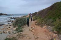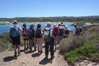 Warme Sonnenstrahlen und eine strahlende Nicole begrüßen uns und wir fahren mit dem Bus zunächst in den Norden der Insel. In unseren Rucksäcken haben wir ausreichend Marschverpflegung und Getränke verstaut - wir sind bereit für die erste Etappe auf dem Cami de Cavalls (Pferdeweg). Dieser Weg (rund 186 km) wurde ursprünglich angelegt, um die Küste der kleinen Insel zu bewachen. Federleicht schwebt Nicole über das Gelände - wir bemühen uns, die Wanderung, die tollen Aussichten und die Erklärungen unserer Wanderführerin zu koordinieren. Dabei auch noch zu fotografieren und zu kommunizieren stellt uns auf eine harte Probe. Ebenso wie das Schuhwerk einer Wanderin, das Auflösungserscheinungen zeigt. Zunächst mit Riemen gesichert werden diese Schuhe später mittels Mullbinden in „römische Sandalen" verwandelt und es kann weiter gehen. Unter schattigen Bäumen lassen wir es uns am Nachmittag in einem kleinen Lokal gut gehen und die erste Wanderung Revue passieren.