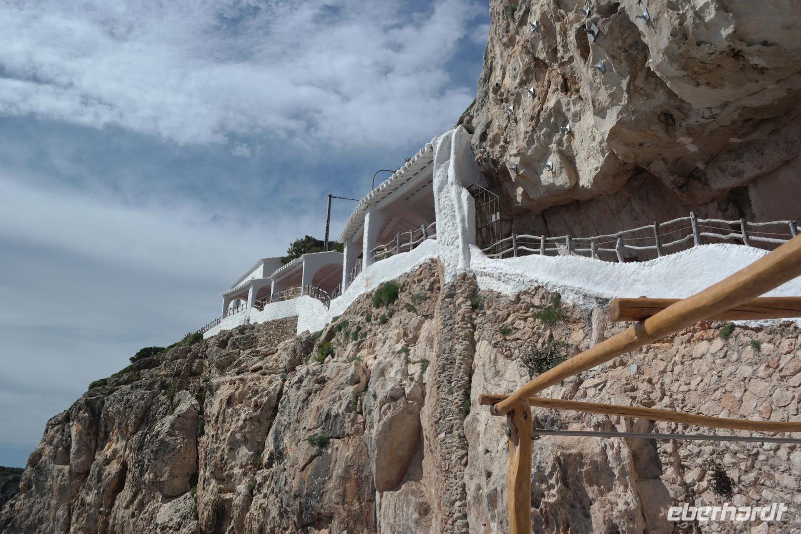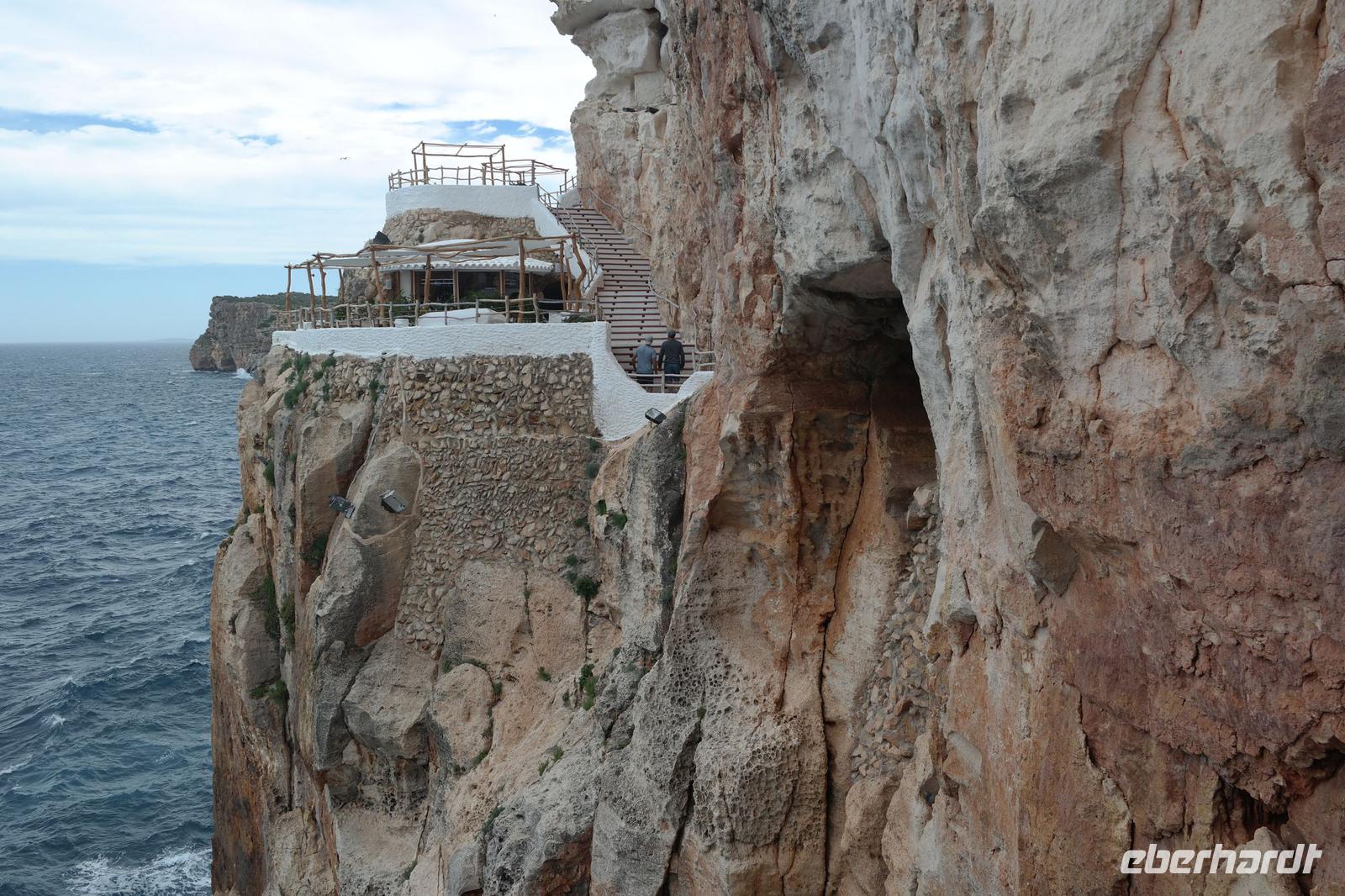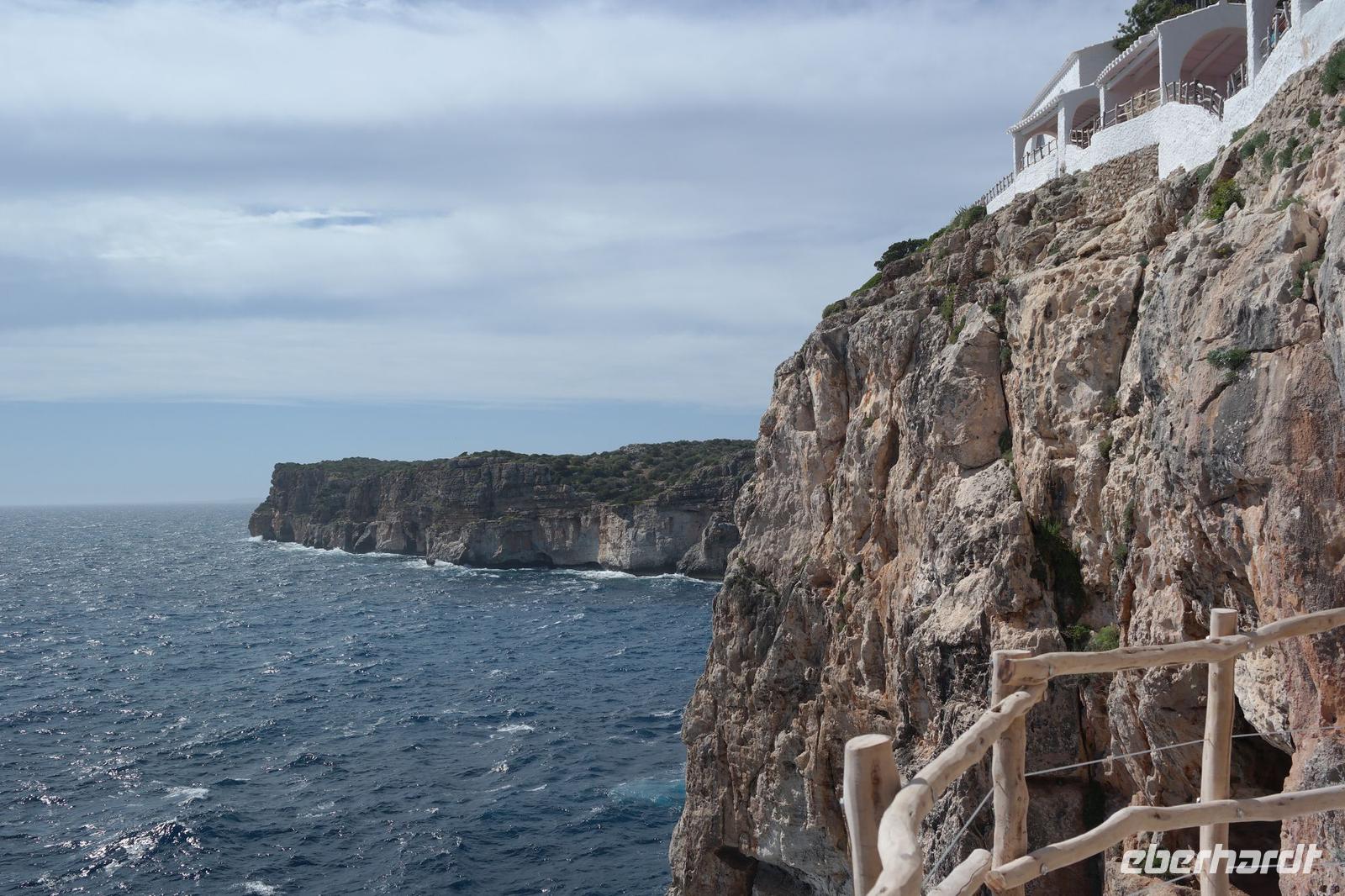 Nicole hat uns vorher versprochen, eine Ausgrabungsstätte der talaiotischen Zeit zu besichtigen. Eine imposante Taula (Tisch!) und Talaiots (Türme aus Steinen aufgeschichtet) versperren uns aber irgendwie den Weg - wir suchen den Bus und er sucht uns - bis wir wieder zueinander finden . Unsere letzte Station für heute sind die Naturhöhlen von Xoroi. Diese Höhlen sind nur vom Meer aus zu sehen - in den Felsen wurde eine Treppe eingebaut und von hier bietet sich uns ein spektakulärer Blick auf die tosende Brandung. In den Höhlen finden sich heute kleine Bars - wir können uns gut vorstellen, dass hier das Nachtleben pulsiert - deshalb sind wir am Nachmittag hierher gekommen .