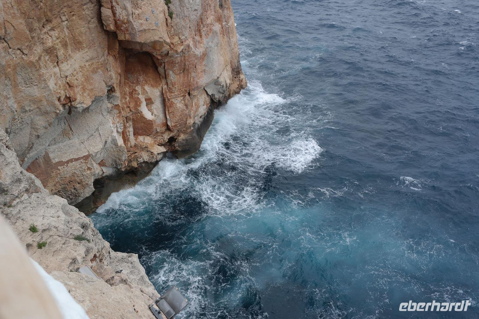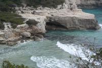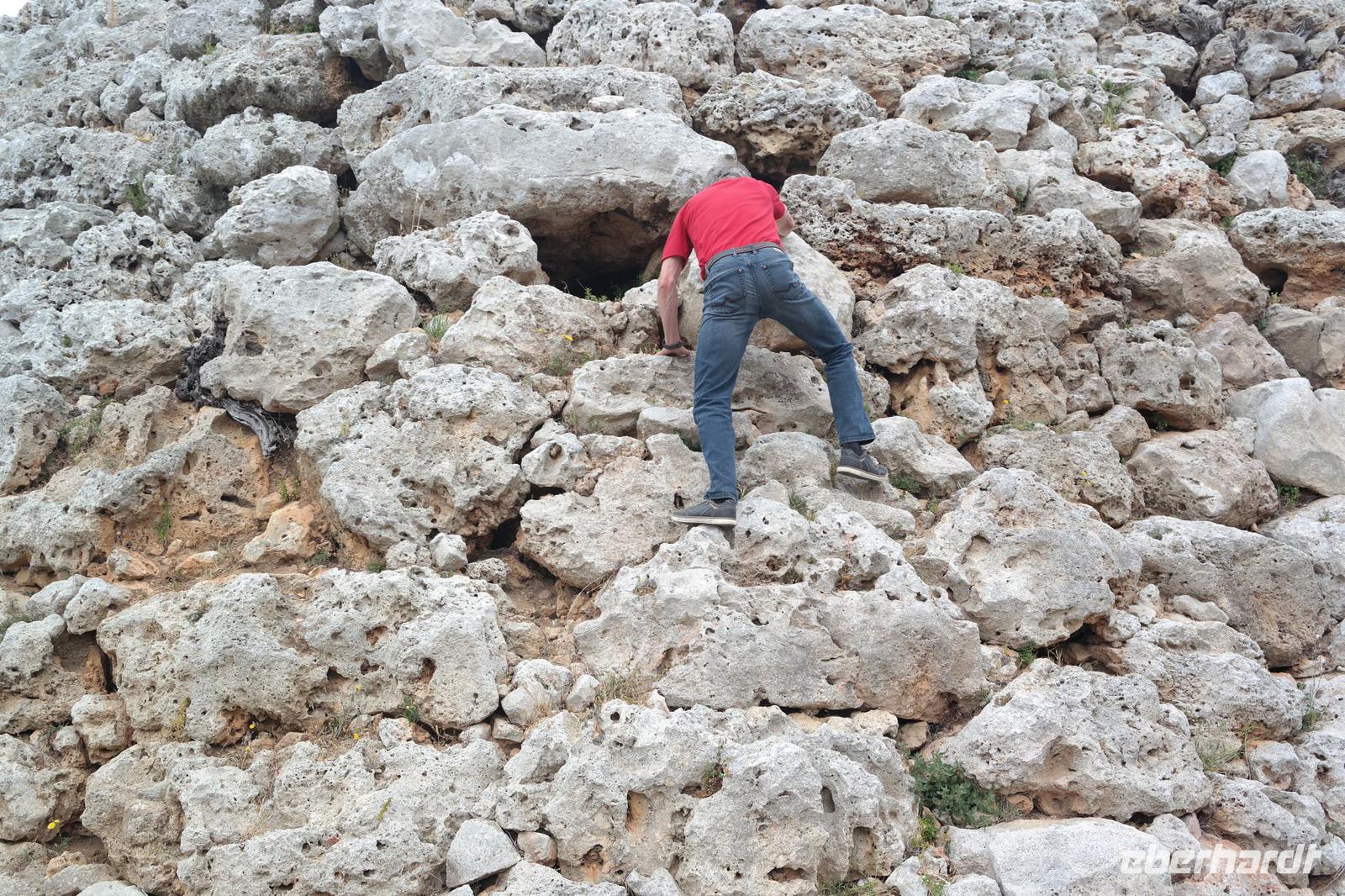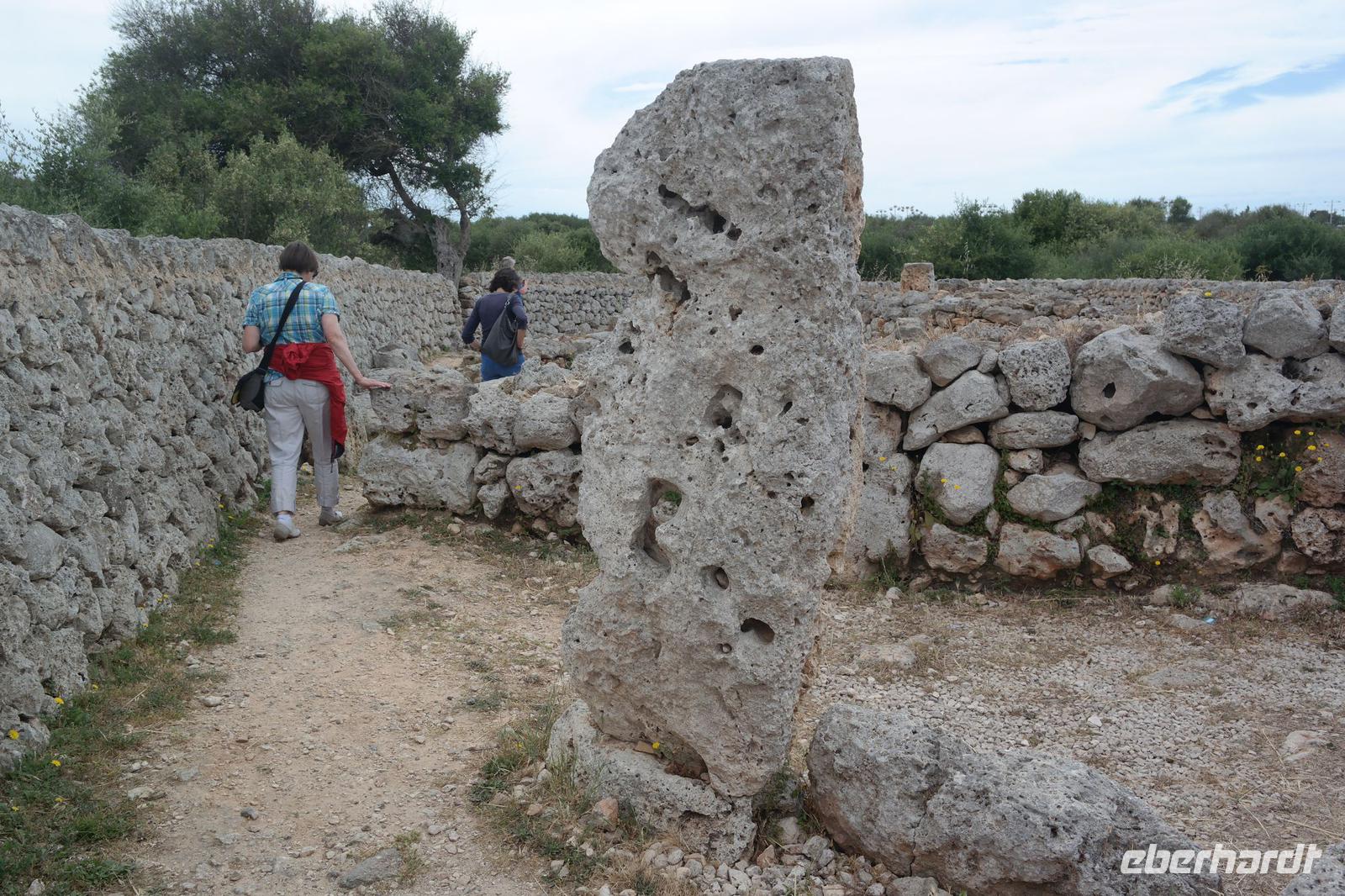 Nicole hat uns vorher versprochen, eine Ausgrabungsstätte der talaiotischen Zeit zu besichtigen. Eine imposante Taula (Tisch!) und Talaiots (Türme aus Steinen aufgeschichtet) versperren uns aber irgendwie den Weg - wir suchen den Bus und er sucht uns - bis wir wieder zueinander finden . Unsere letzte Station für heute sind die Naturhöhlen von Xoroi. Diese Höhlen sind nur vom Meer aus zu sehen - in den Felsen wurde eine Treppe eingebaut und von hier bietet sich uns ein spektakulärer Blick auf die tosende Brandung. In den Höhlen finden sich heute kleine Bars - wir können uns gut vorstellen, dass hier das Nachtleben pulsiert - deshalb sind wir am Nachmittag hierher gekommen .