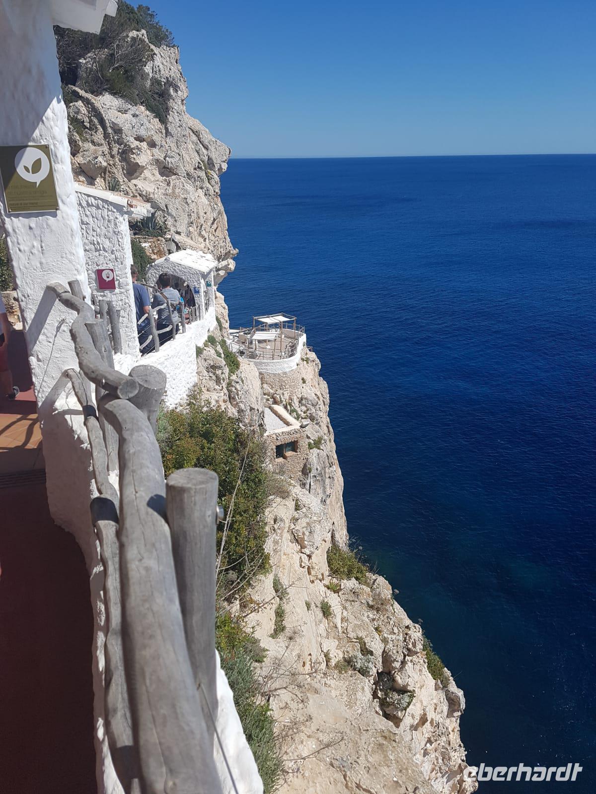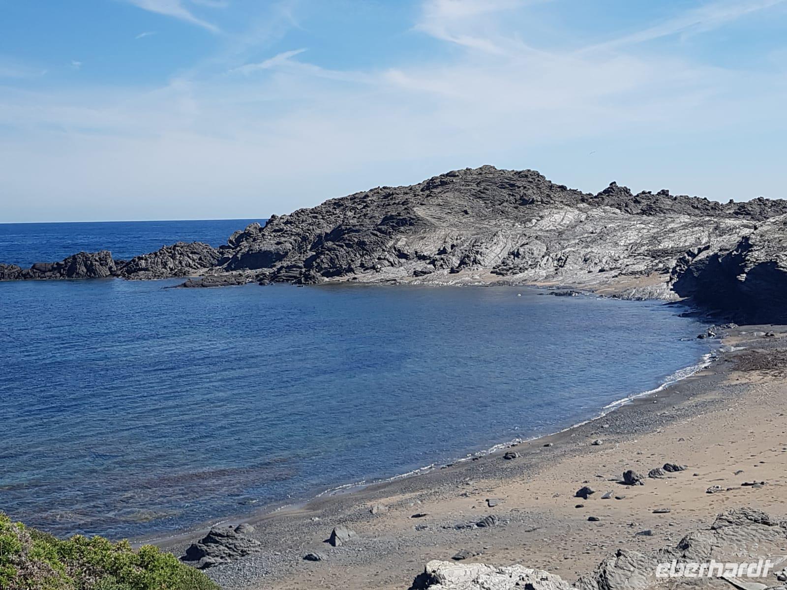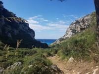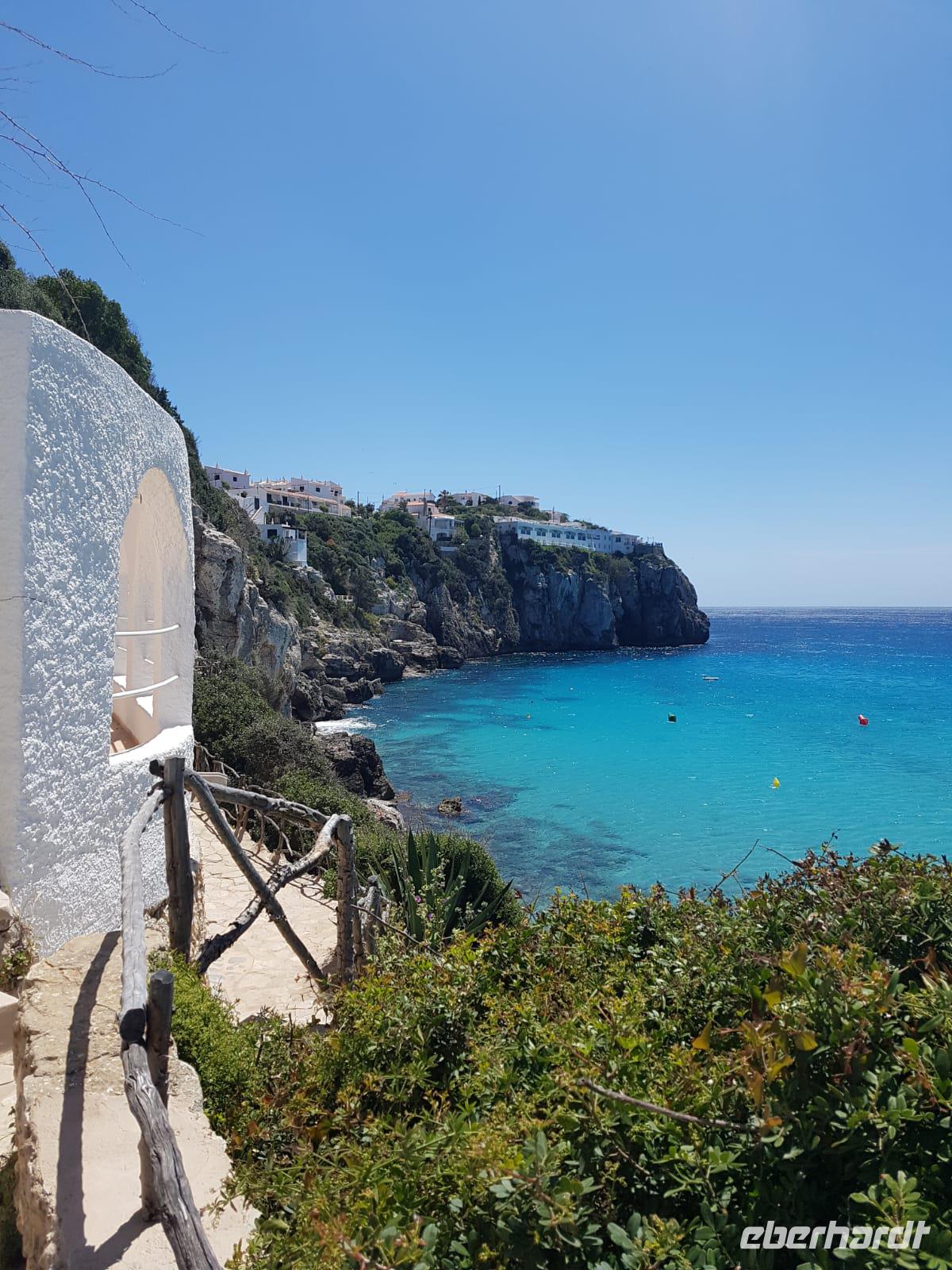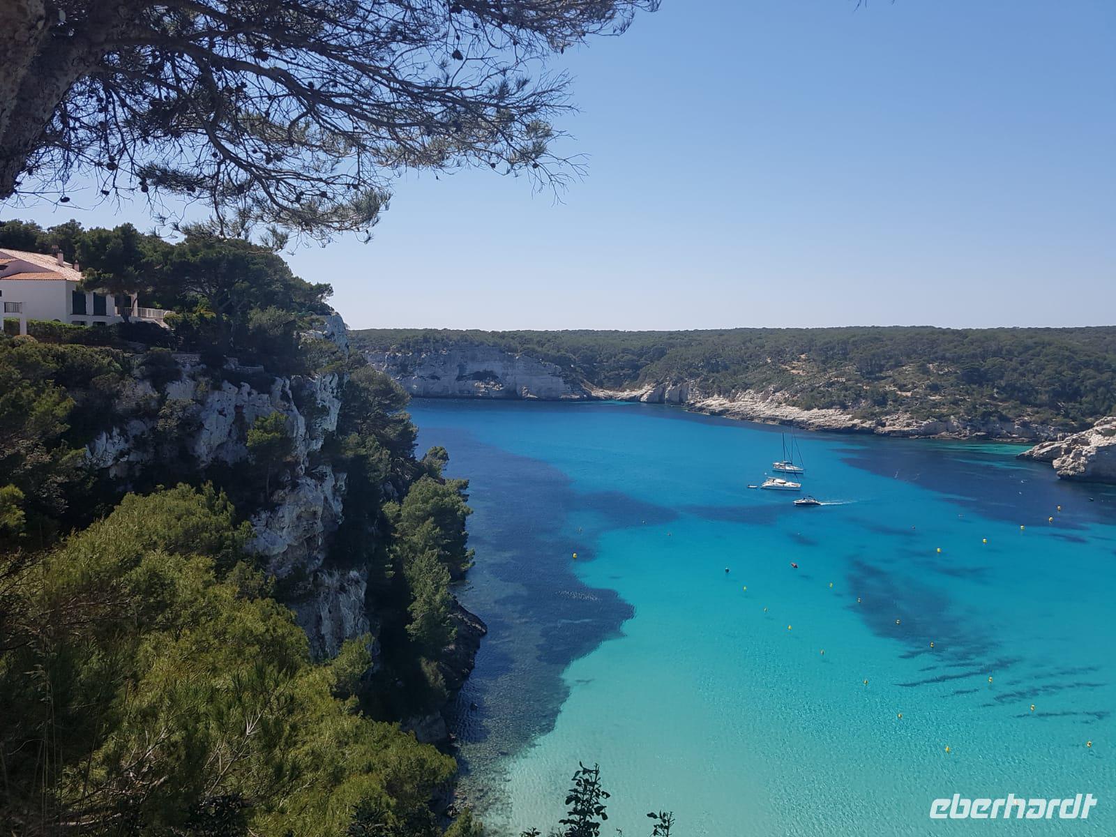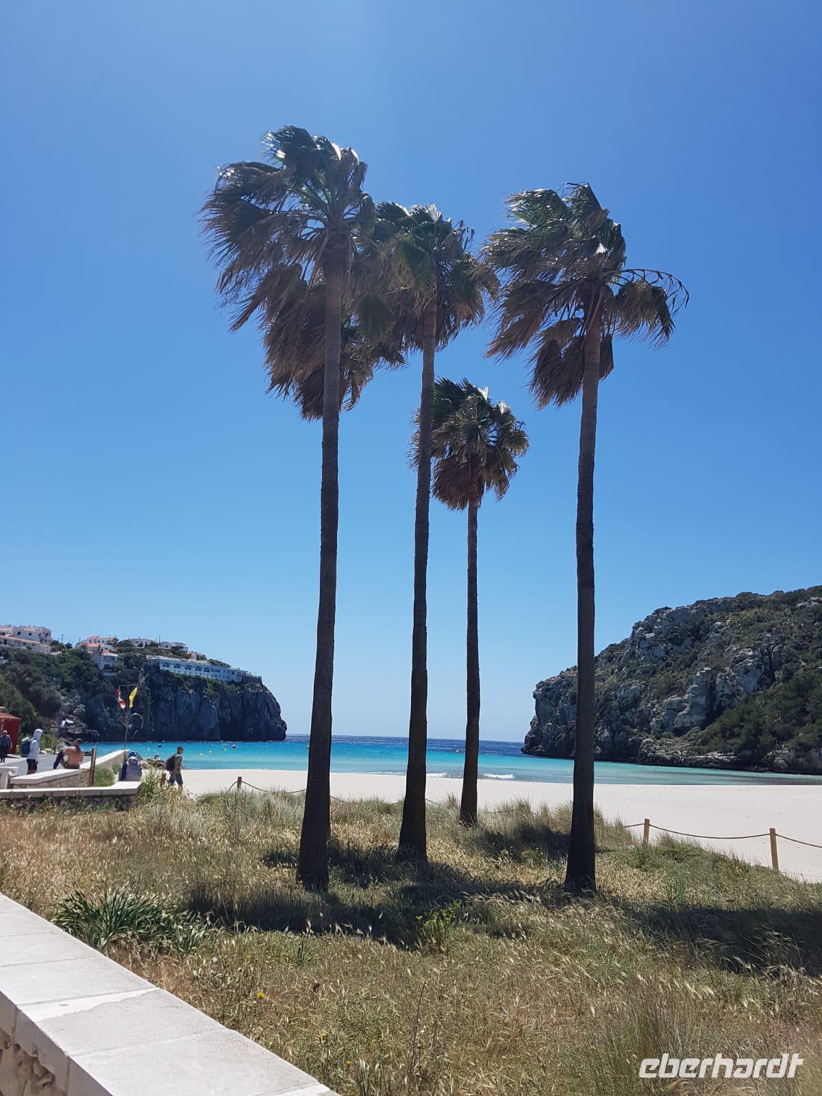 Wir erreichen die Bucht von Cala de Porter und können unseren Augen kaum glauben. Vor uns liegt ein Strand wie in der Karibik. Die Farbe des Wassers ist türkis/tiefblau und die hohen Palmen sind das I-Tüpfelchen. Wir sitzen in einem Café und genießen den wunderschönen Ausblick. Danach geht es auf zu unserer letzten Etappe bis Cala de Canutells. Uns als wir immer höher hinaufsteigen, wird der Blick immer schöner. Und hier fällt der Satz: „Mehr geht nicht!".