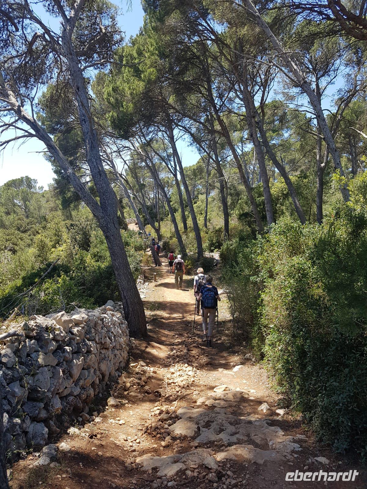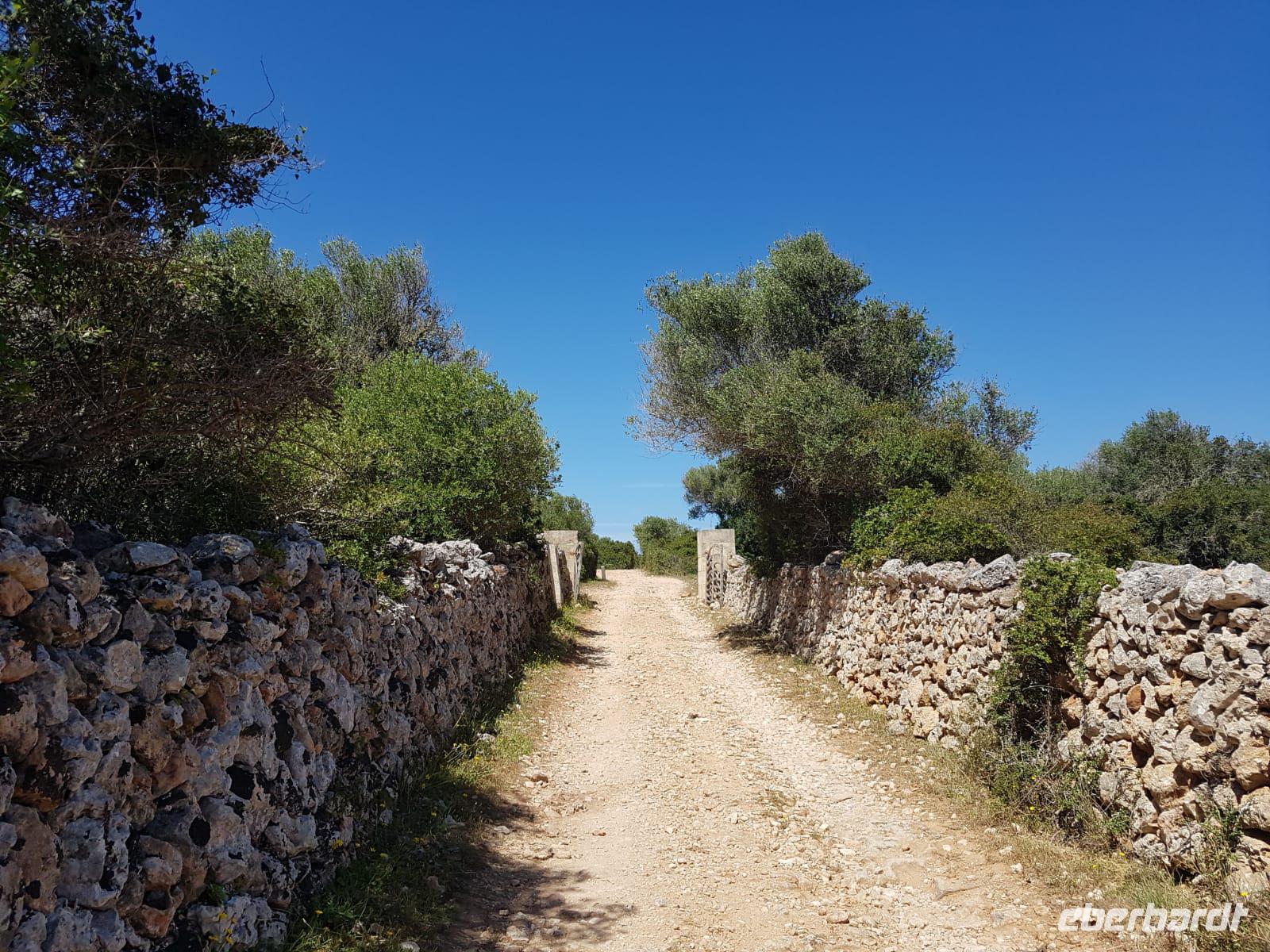 Wir durchwandern deshalb einen Großteil der Strecke im Landesinneren. Wir laufen im angenehmen Halbschatten vieler Bäume und genießen die schöne Natur, wieder eine völlig andere Landschaft. Jeden Tag entdecken wir eine neue Ecke Menorcas. Wir staunen alle, wie viele unterschiedliche Gesichter diese doch relativ kleine Insel hat.