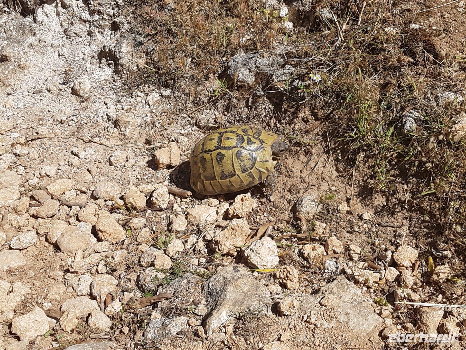 Zu guter Letzt kreuzt eine Landschildkröte unseren Weg. Wir freuen uns alle wie Kinder.