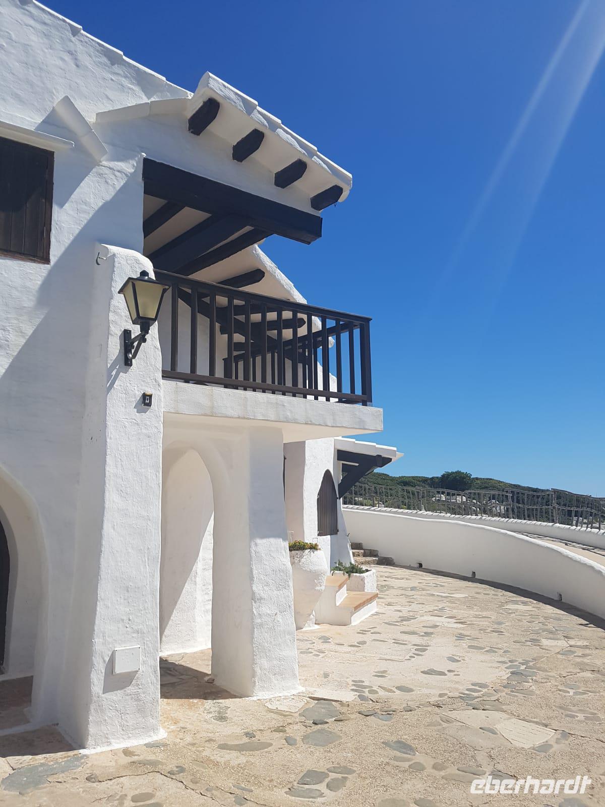 Weiter geht's nach Mahón, der Hauptstadt der Insel. Wir können unseren Augen kaum glauben, als wir den 6 km langen Natur-Hafen entlang fahren. Danach machen wir einen kleinen Rundgang durch die Altstadt. Dann haben wir Freizeit. Die einen kaufen sich in der Markthalle frisches Obst, andere setzen sich in eine gemütliche Tapas-Bar. Auch die Xoriguer-Gin-Brennerei steht mit auf dem Programm. Der Besuch der malerischen weißen Stadt Binibeca ist unser nächster Programmpunkt. Ein sehr besonderer und wunderschöner Ort, mit einer zu dieser Jahreszeit etwas ausgestorbenen Stimmung. Nach diesem anstrengenden Tag lassen wir unsere Seele in der Naturhöhle Cova d´en Xoroi baumeln und trinken alle etwas Erfrischendes. Nach dem Abendessen feiern wir „Bergfest". Wir setzen uns alle gemütlich an unseren Strand. Danach fallen einige erschöpft ins Bett, andere schwingen noch spontan das Tanzbein im Hotel.