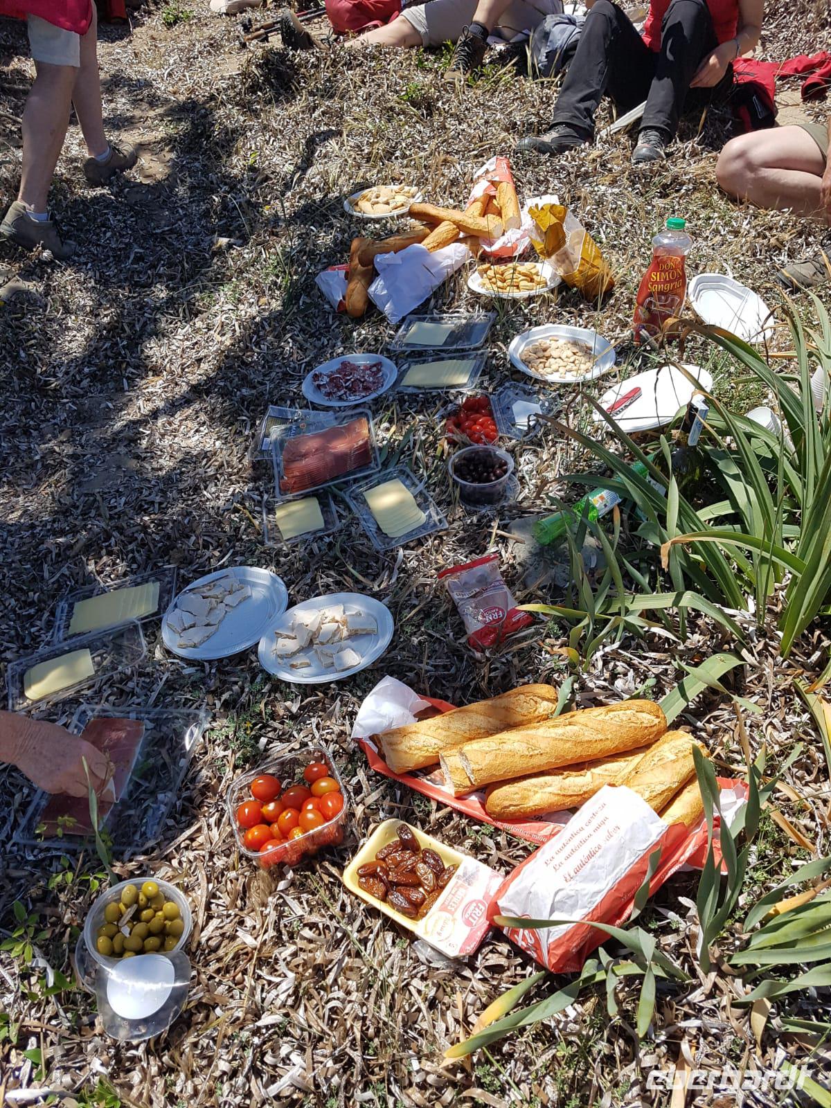 Unsere Mittagspause fällt heute besonders lange aus. Der einzige schattenspendende Baum in einer Bucht ist unser. Wir genießen gemeinsam Schinken, Oliven, Salami, Mahon-Käse, Tomaten, Baguette mit Olivenöl und typisch spanische Süßigkeiten. Es schmeckt uns allen köstlich in dieser schönen Umgebung und wir alle gemeinsam, wir sind in dieser Woche so eine richtig tolle Wandertruppe geworden, das findet jeder.