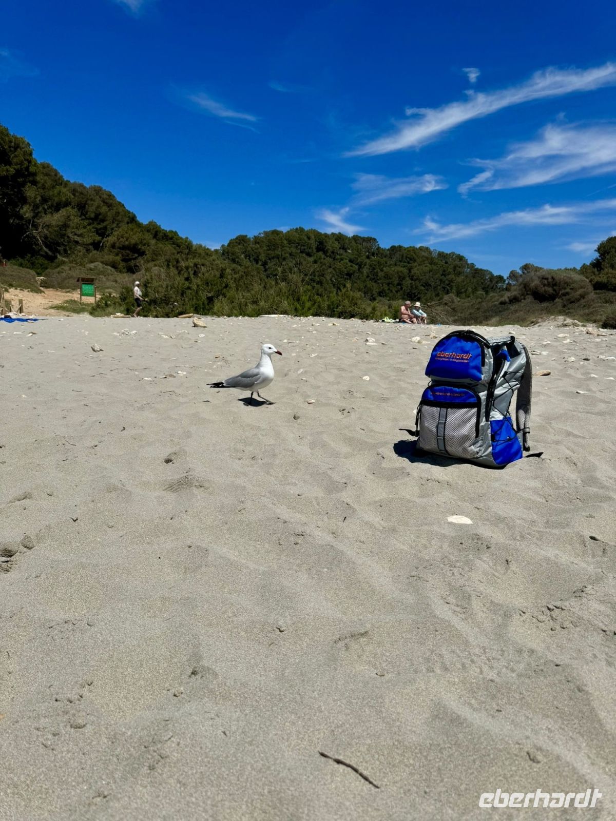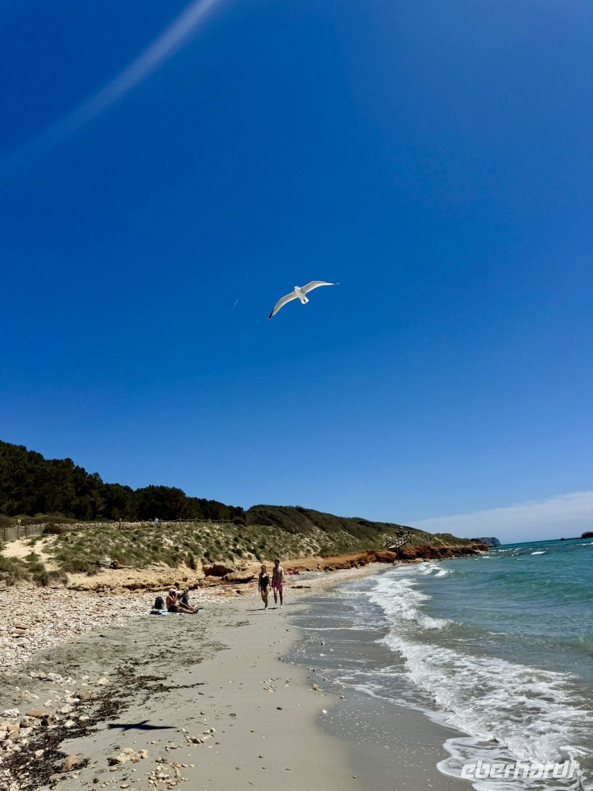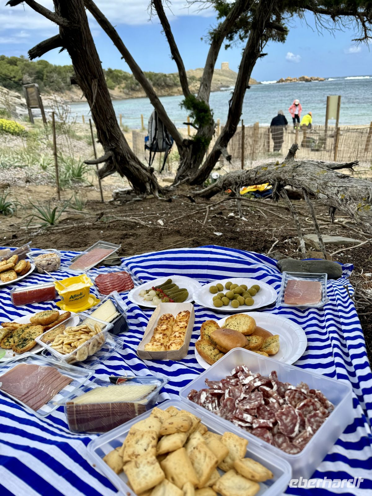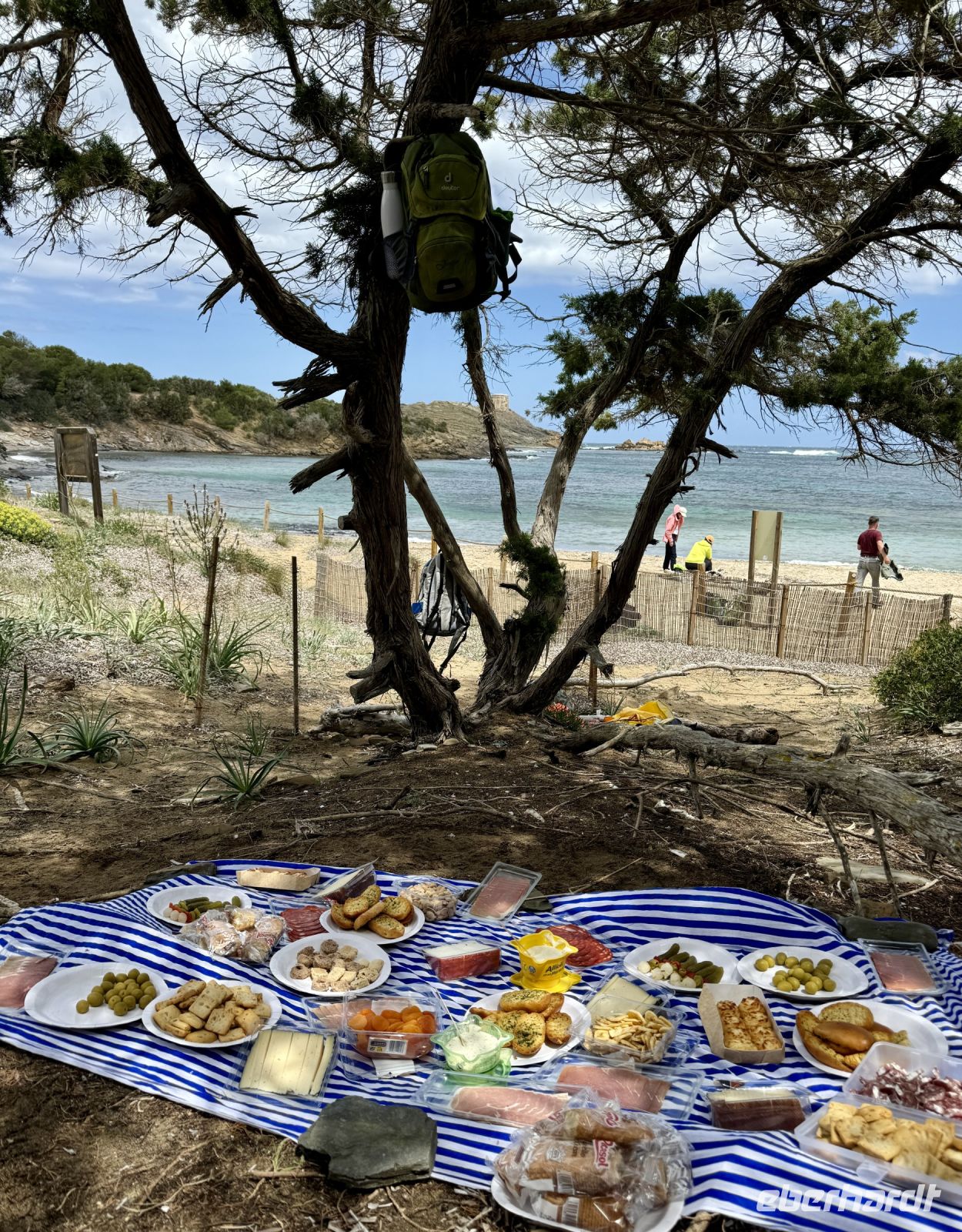 Heute werden wir von Isabel zum Mittagspicknick eingeladen. An einem schönen Strand probieren wir Käse, Wurst und weitere menorquinische Köstlichkeiten. Am frühen Nachmittag erreichen wir den Strand von Es Grau. Wer mag, kann im Hinterland noch ein Stück mit durch die sehenswerte Sumpflandschaft wandern. Die heutigen 11 Kilometer waren wieder gut machbar und der wohlverdiente Abschluss in einer kleinen Strandbar versteht sich von selbst.