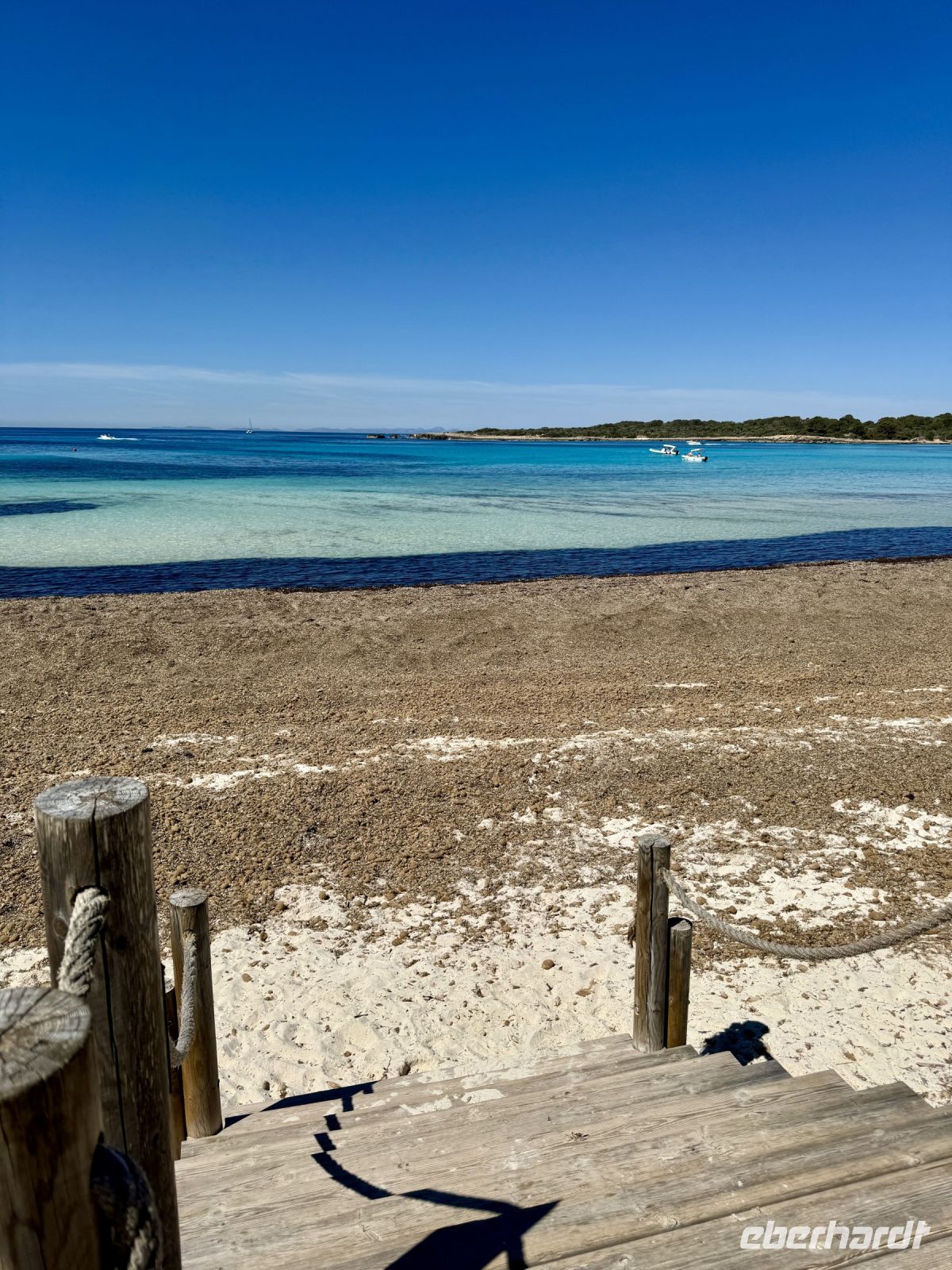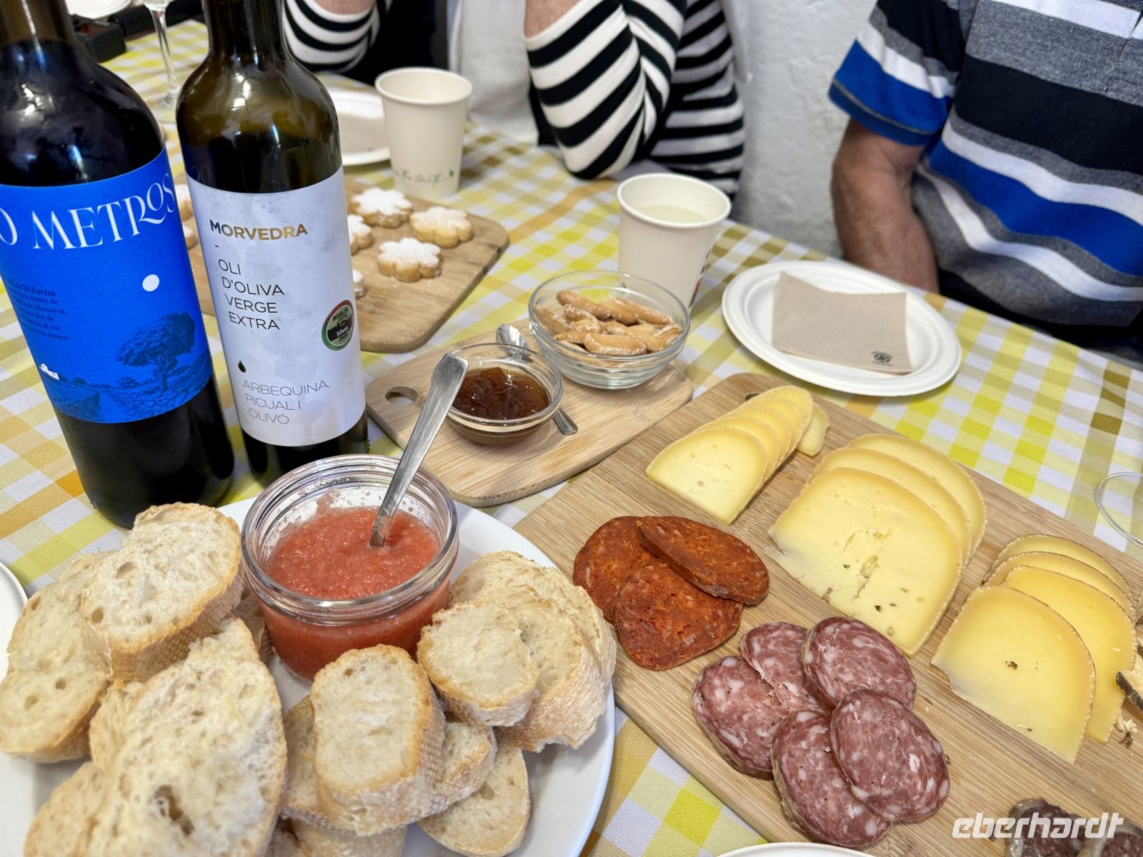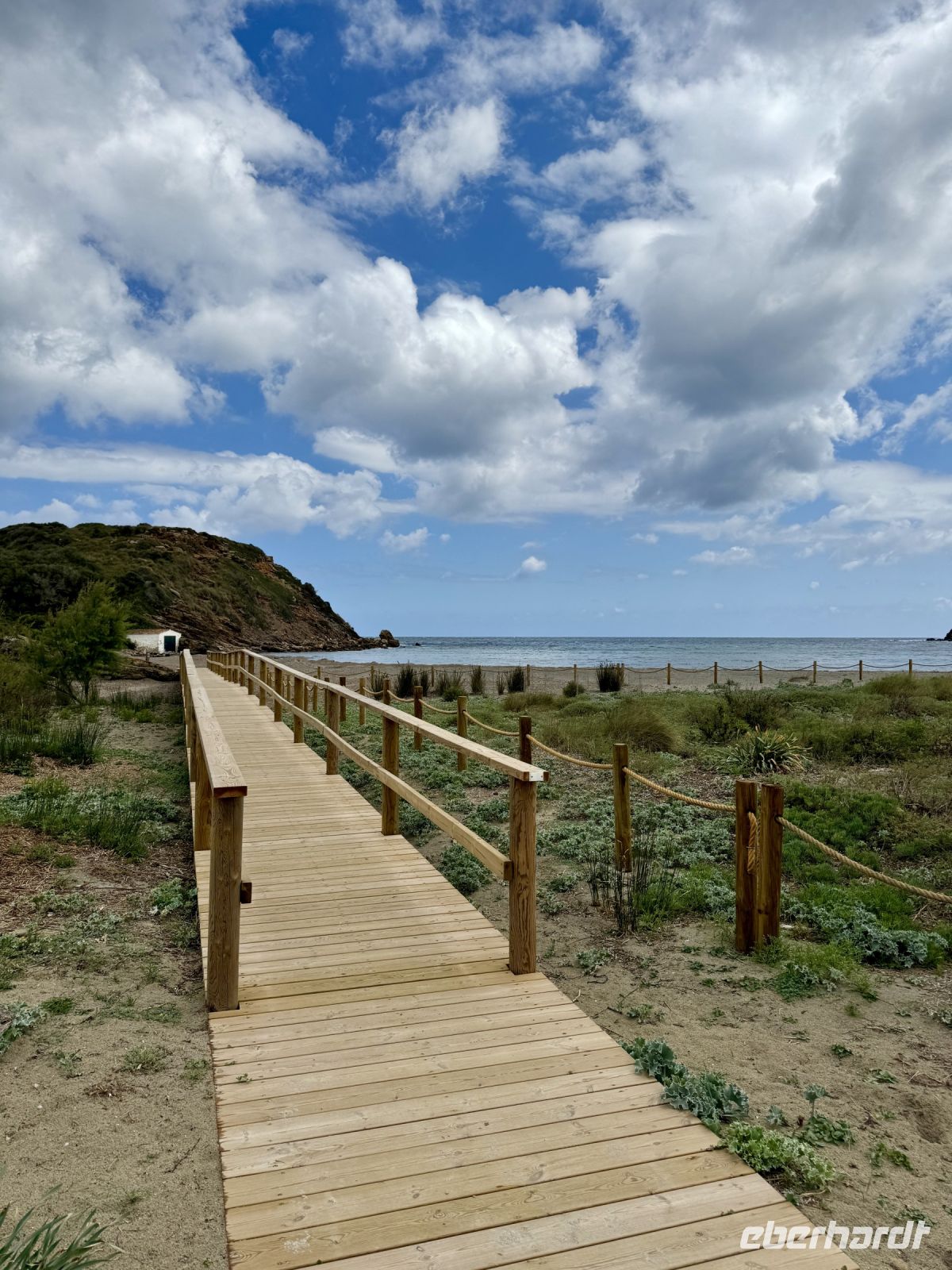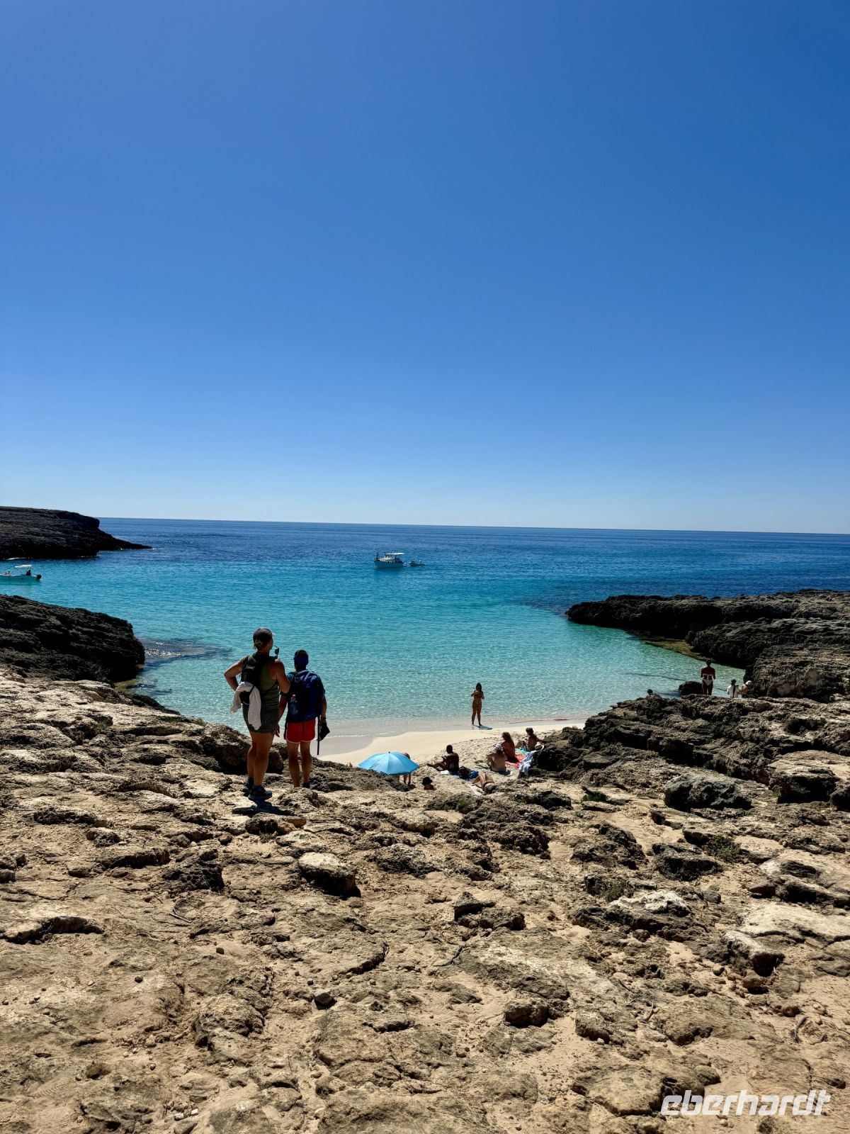 Heute werden wir von Isabel zum Mittagspicknick eingeladen. An einem schönen Strand probieren wir Käse, Wurst und weitere menorquinische Köstlichkeiten. Am frühen Nachmittag erreichen wir den Strand von Es Grau. Wer mag, kann im Hinterland noch ein Stück mit durch die sehenswerte Sumpflandschaft wandern. Die heutigen 11 Kilometer waren wieder gut machbar und der wohlverdiente Abschluss in einer kleinen Strandbar versteht sich von selbst.