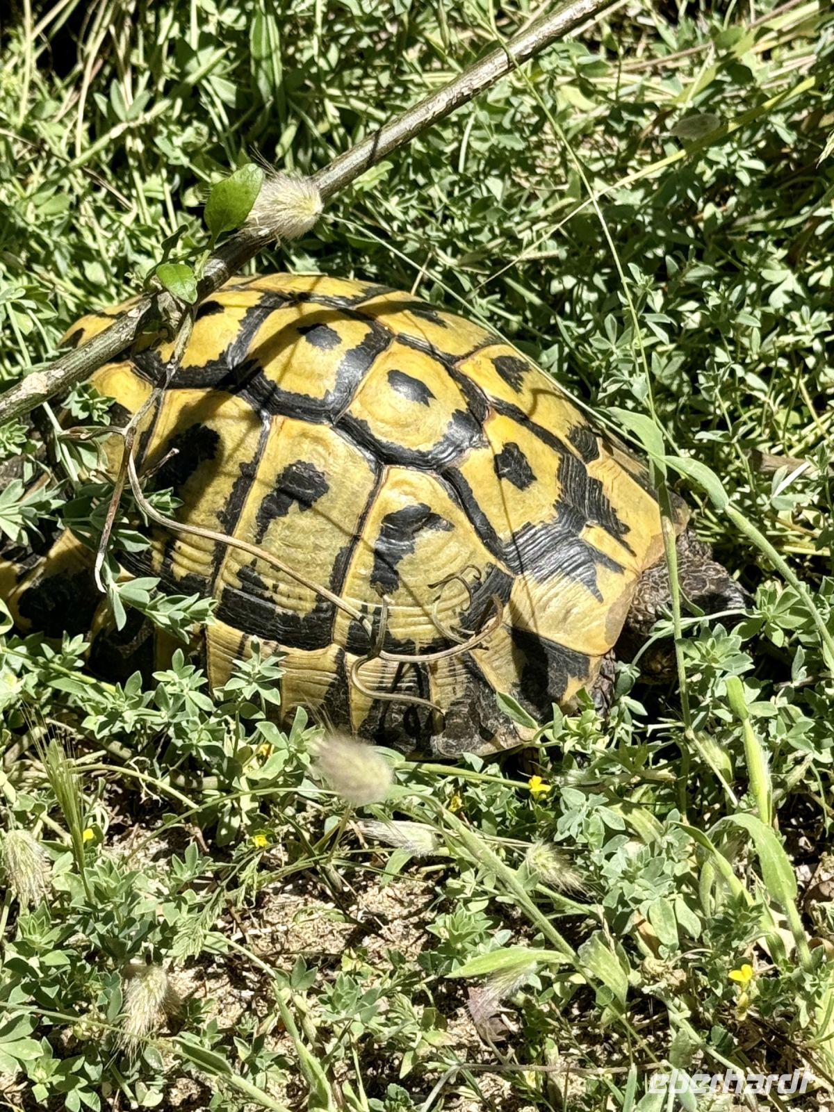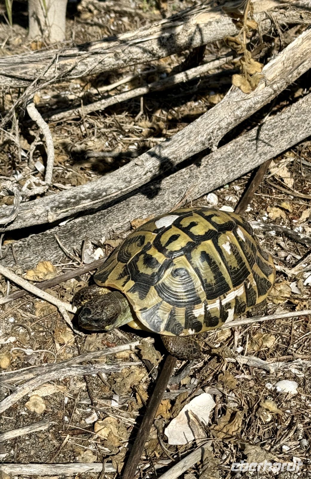 Das Naturschutzgebiet S’Albufera des Grau ist das bedeutendste Feuchtgebiet der Insel und beherbergt eine Vielzahl an Vogelarten. Wir sehen auch mehrmals die schwarz-gelb gemusterte griechische Landschildkröte.