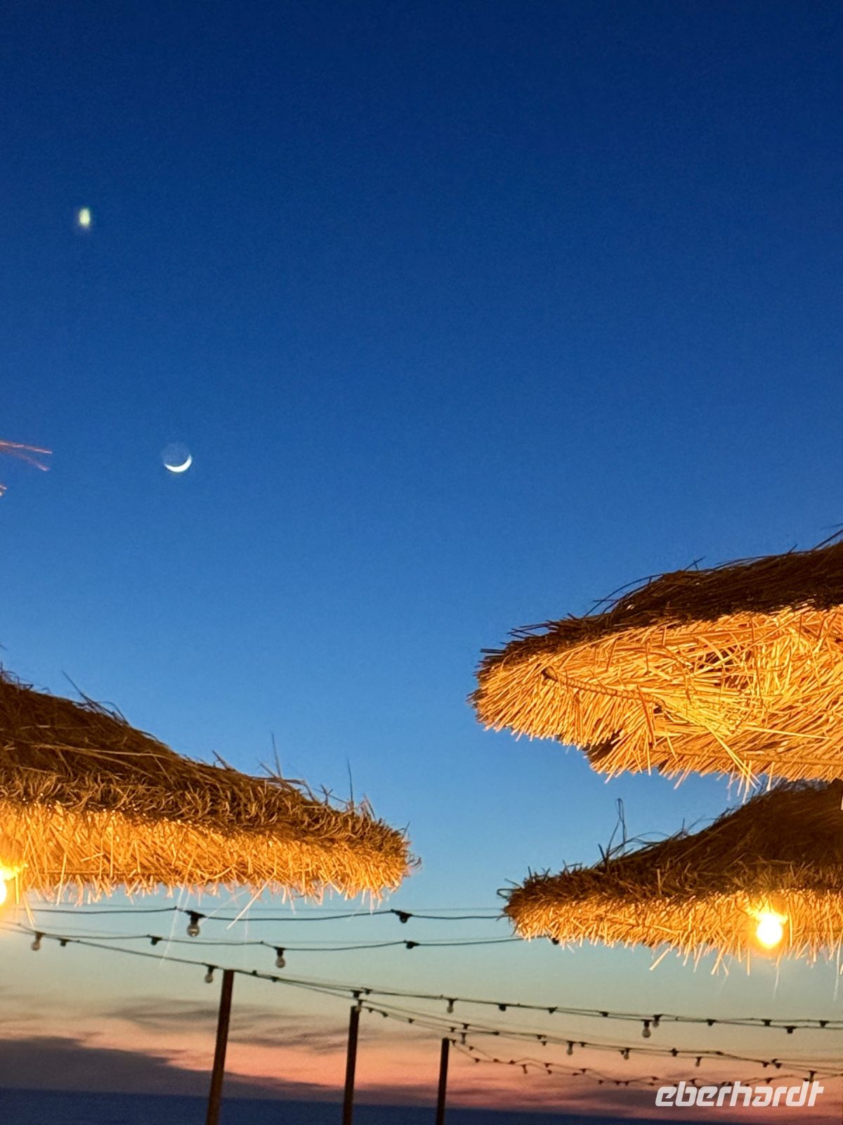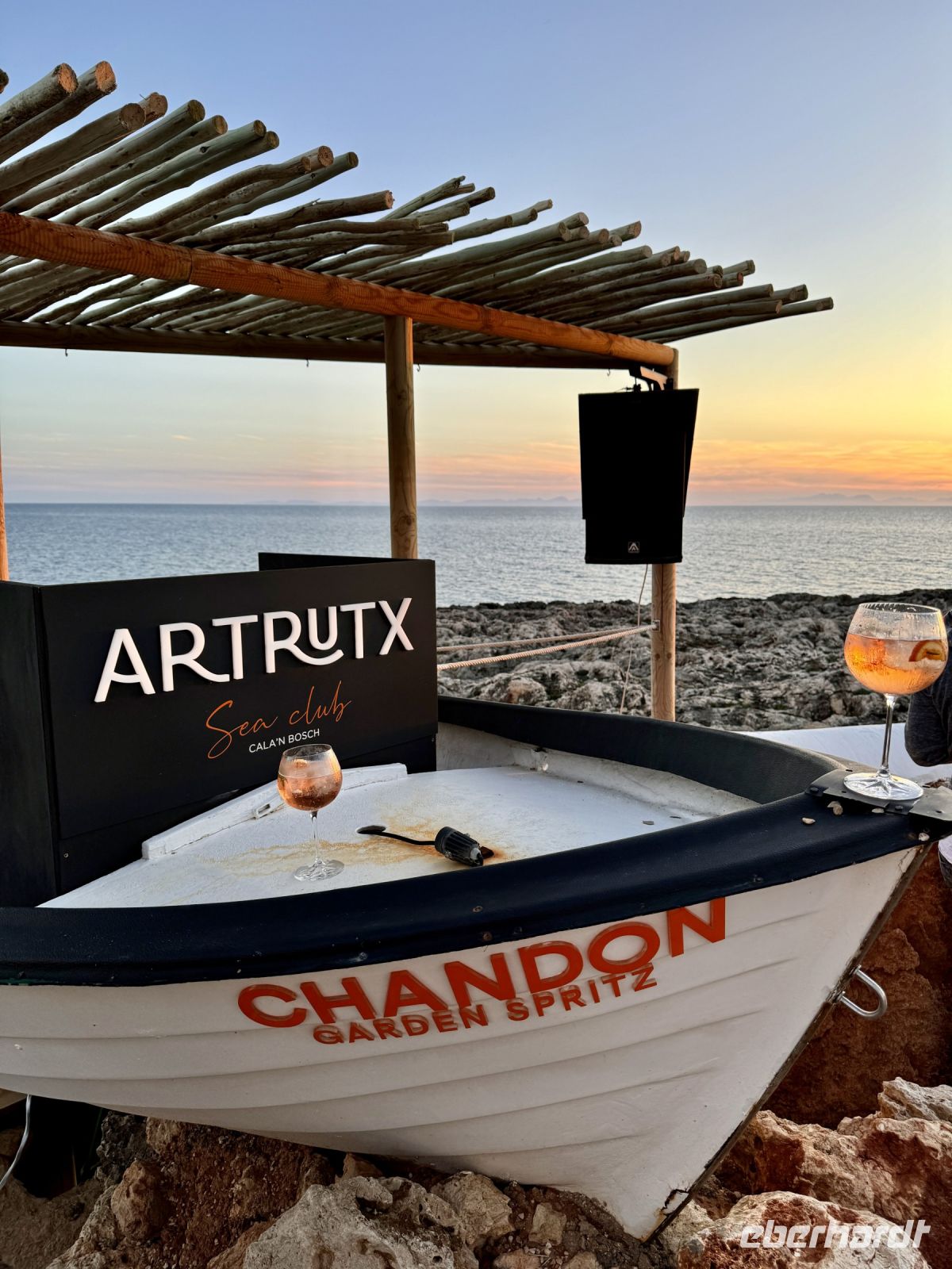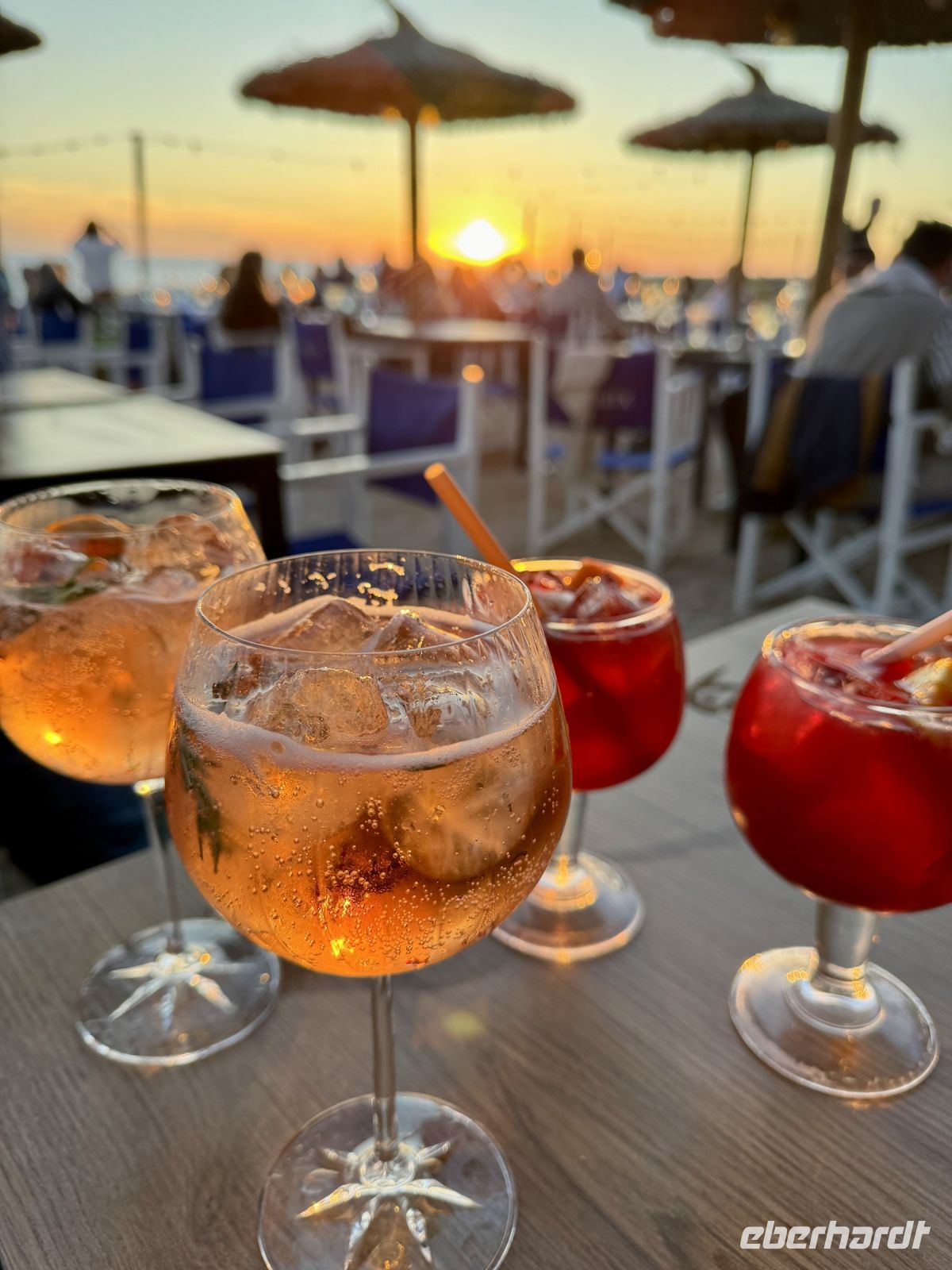 Das Abendessen im Hotel wird heute nicht ganz so lang zelebriert, da wir gern den Sonnenuntergang am Leuchtturm sehen wollen. Wir haben Glück und bekommen einen Tisch im Restaurant Artrutx Sea Club. Bei einem leckeren Getränk und schöner Musik genießen wir das tolle Ambiente und sehen, wie die rote Sonne langsam im Meer versinkt und die Landschaft in ein goldenes Licht taucht.