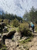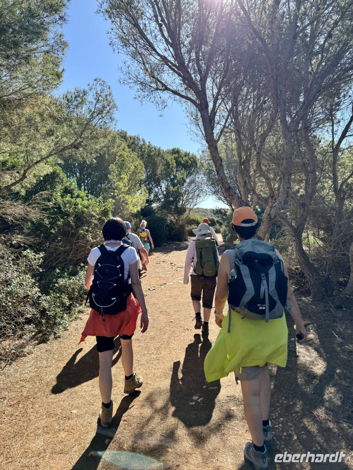 Bei der heutigen Wanderung erkunden wir den Norden der Insel, der landschaftlich wieder mit anderen Schönheiten überrascht. Es geht einige Hügel auf und ab bis zur einsamen Cala en Calderer. Von dort laufen wir über rote, weiße und schwarze Felsen über die letzte Anhöhe zur Cala Barril. Ein sanftes Tal und schattiger Pinienwald geleiten uns zur Cala Pregonda mit ihren leuchtend gelben Felsinselchen, eine der schönsten Buchten der Nordküste Menorcas. Knapp 10 Kilometer sind wir heute gewandert.
