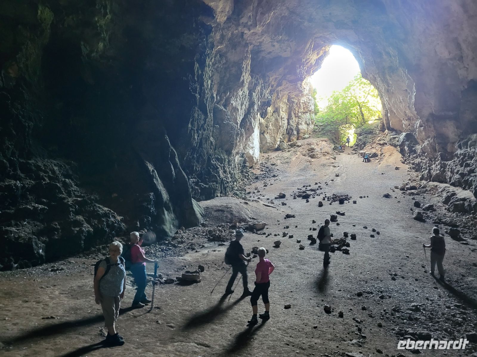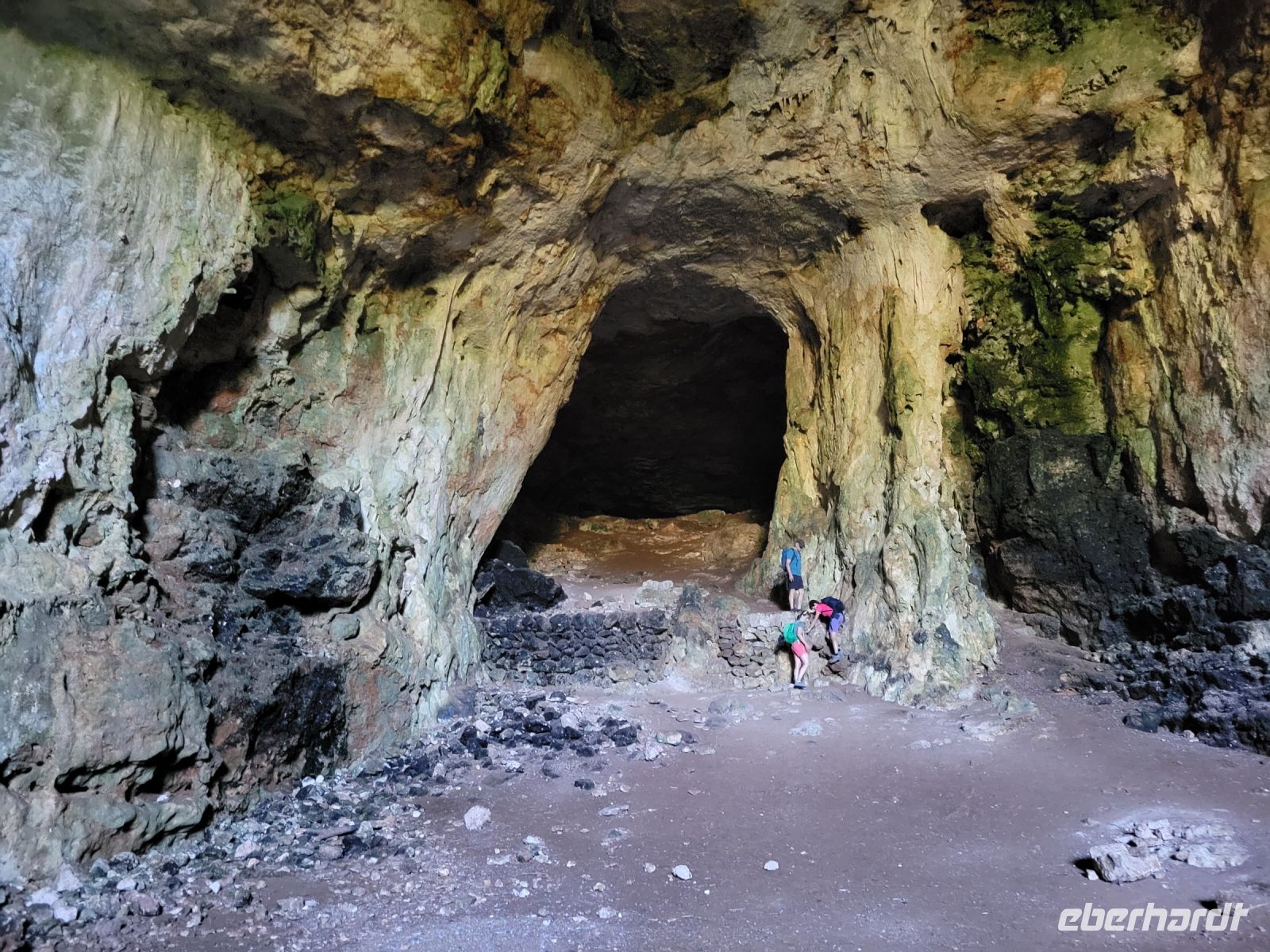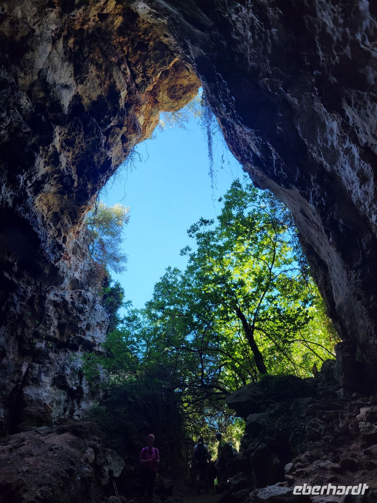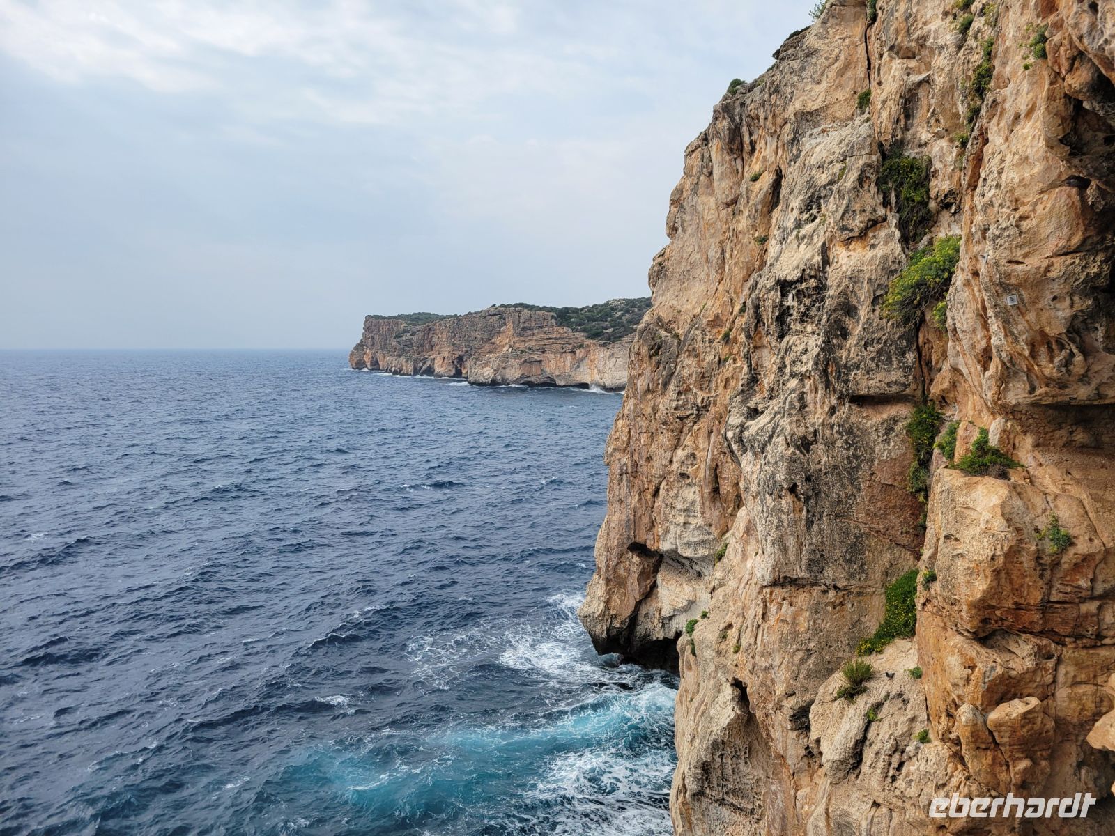 Dann treffen wir schon bald auf die eindrucksvolle Höhle Cova de Coloms (Taubenhöhle), auch bekannt als „Die Kathedrale“. Sie liegt in der Schlucht von Binigaus und gilt mit ihren etwa 110 Metern Länge und 24 Metern Höhe als größte zugängliche Höhle Menorcas. In prähistorischer Zeit wurde sie möglicherweise als Begräbnisstätte genutzt.