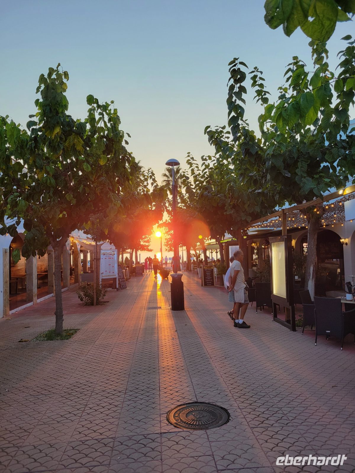 Da wir uns ja an der Westküste Menorcas befinden, hoffen wir auf einen schönen Sonnenuntergang. Wer mag, trifft sich zu einem kurzen Abendspaziergang zum Mirador del Sol (Aussichtspunkt der Sonne), einer Landspitze, von der aus man einen guten Blick haben soll. Wir werden reichlich belohnt: Der Abendhimmel zeigt sich von seiner besten Seite. Wir freuen uns schon auf die nächsten Abende.