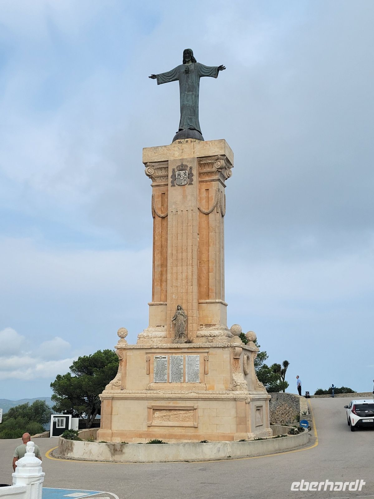 Eine große Christus-Statue, die an die Christus-Statue auf dem Corcovado in Rio de Janeiro erinnert, aber auch Sendemasten ragen in die Höhe und begrüßen die Ankommenden bereits aus der Ferne.