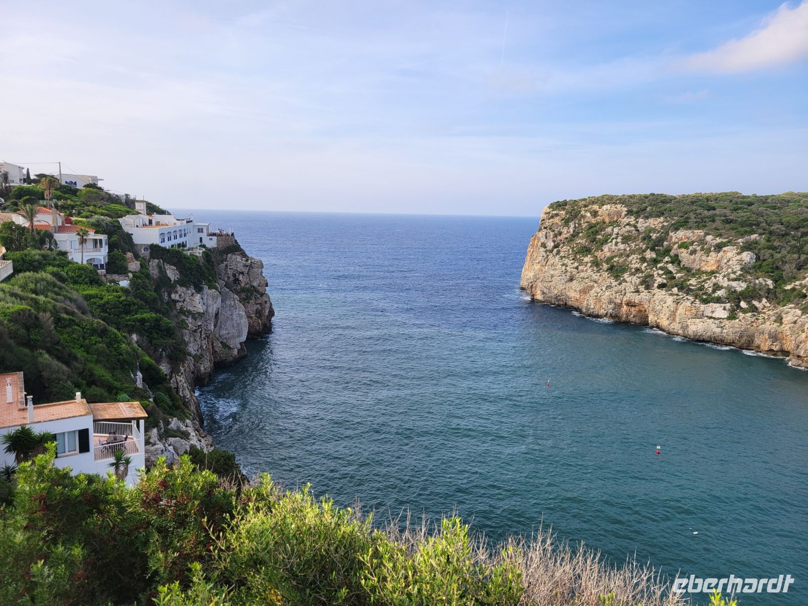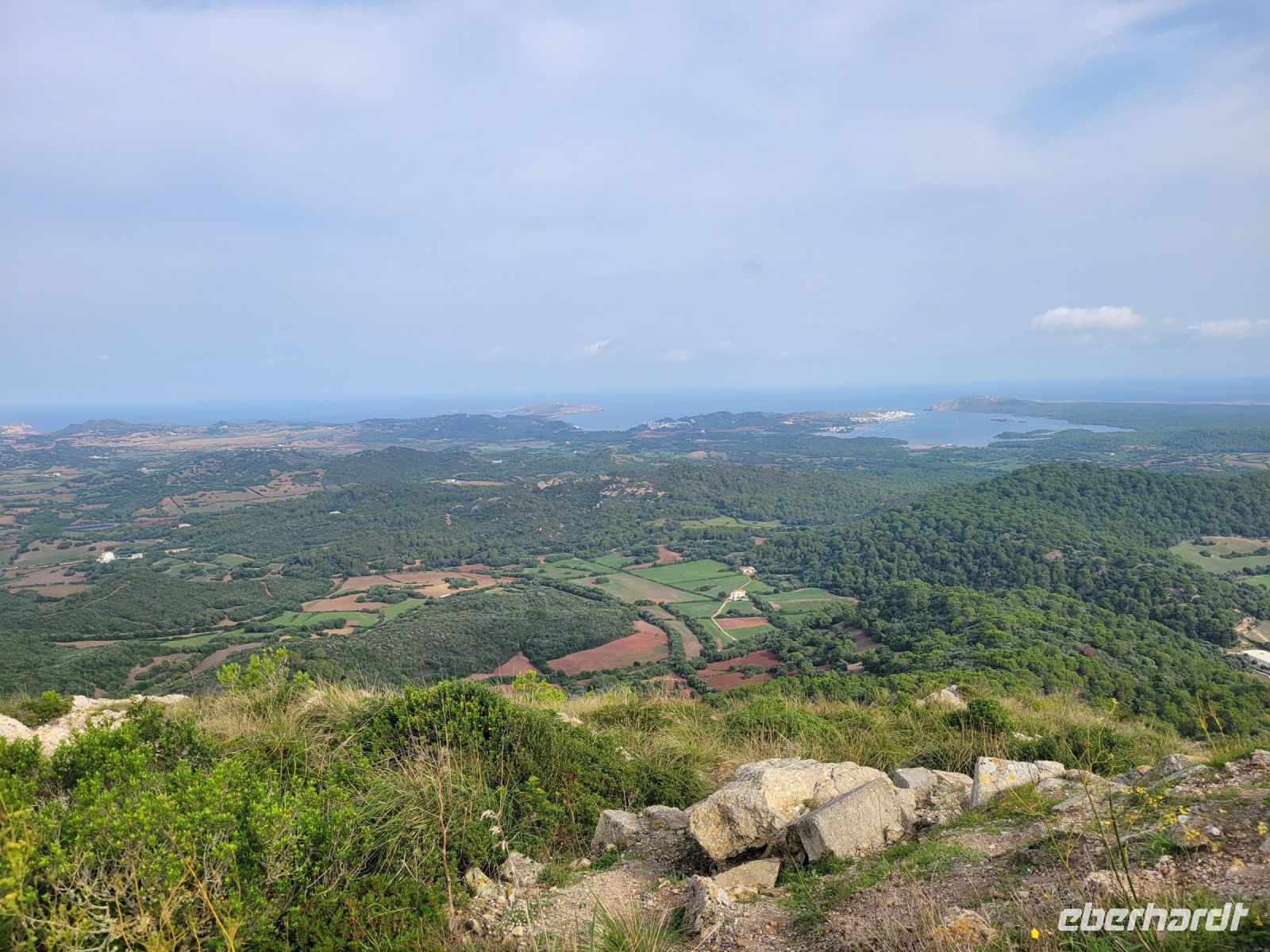 Wir staunen über den grandiosen Panoramablick in sämtliche Himmelsrichtungen der Insel. Unter anderem können wir aus dieser Perspektive unsere gestrige Wanderroute ab Cala Tirant bis Binimel-lá verfolgen.
