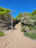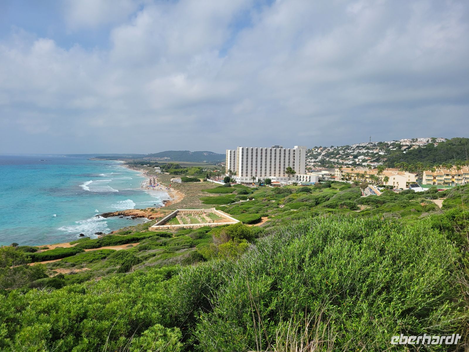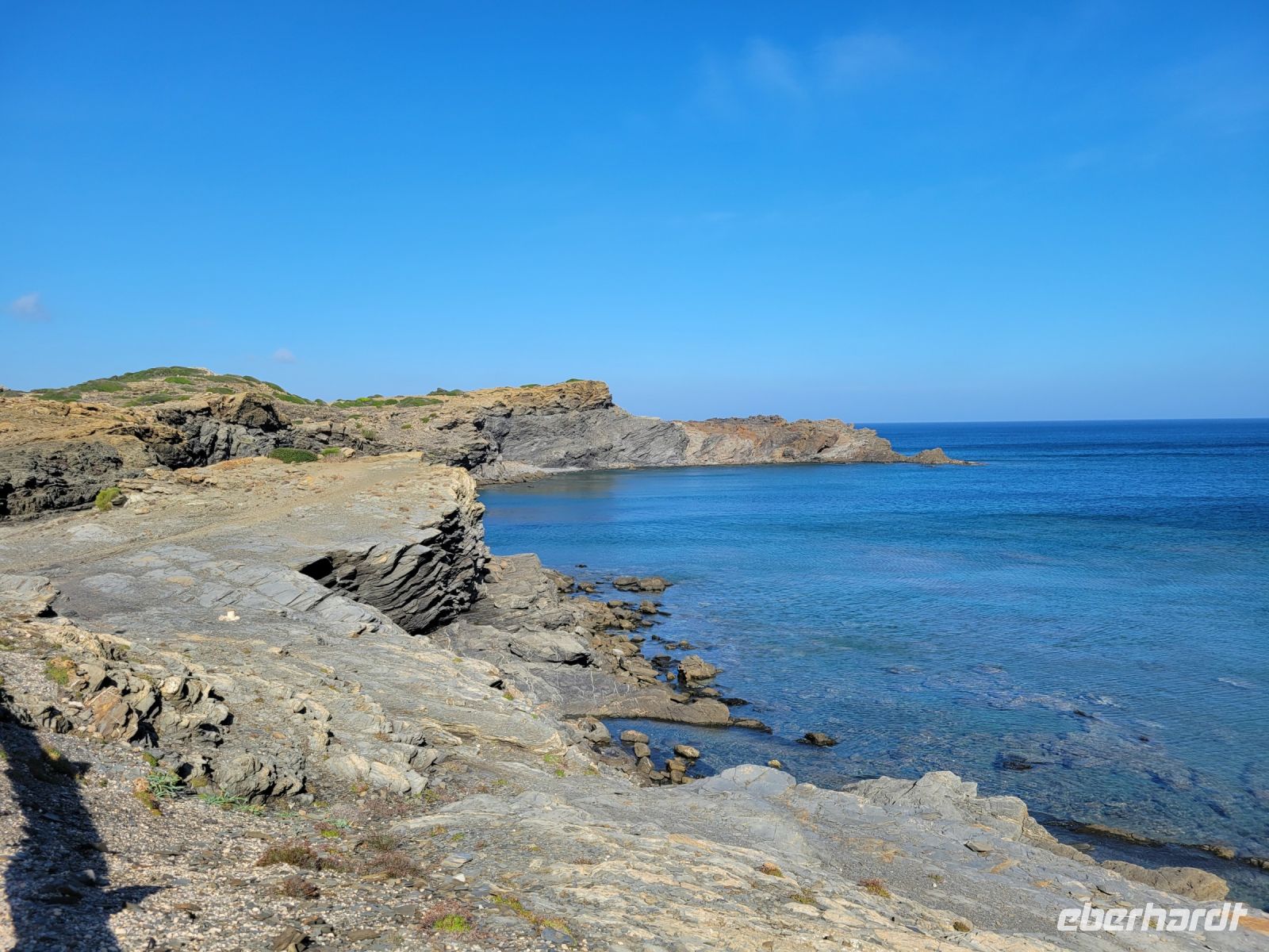 Unsere Strecke führt in westliche Richtung über einen gut erhaltenen Küstenstreifen des Camí de Cavalls. Es geht über angenehm begehbare Wege mit leichten Höhenunterschieden und entlang traumhafter Buchten, immer wieder mit wunderbaren Ausblicken auf das Meer, vorbei an dem Ort einer ehemaligen römischen Siedlung.