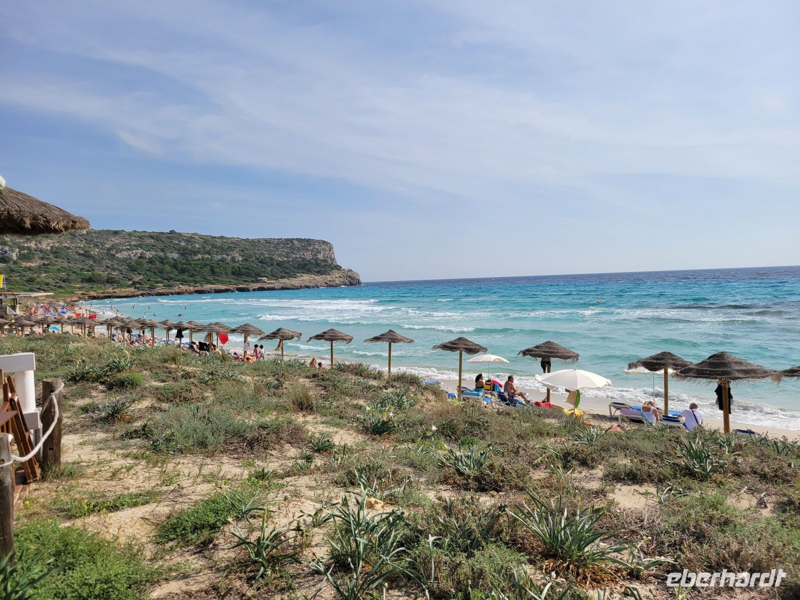 Am frühen Nachmittag empfängt uns die weit geschwungene Bucht von Es Grau mit einem beinahe karibisch anmutenden Meer, dem kaum jemand widerstehen kann.
