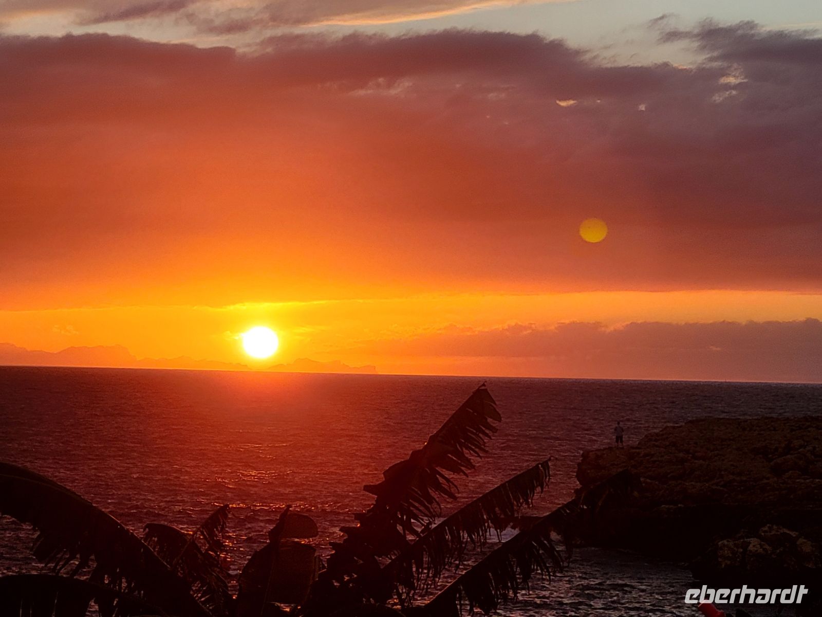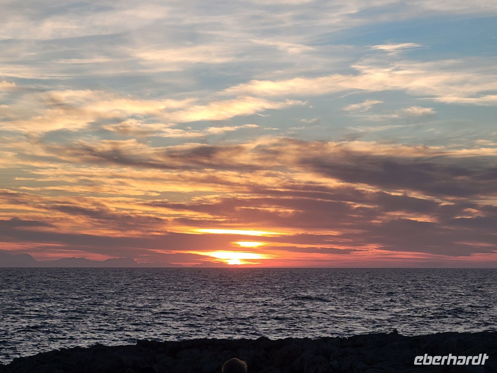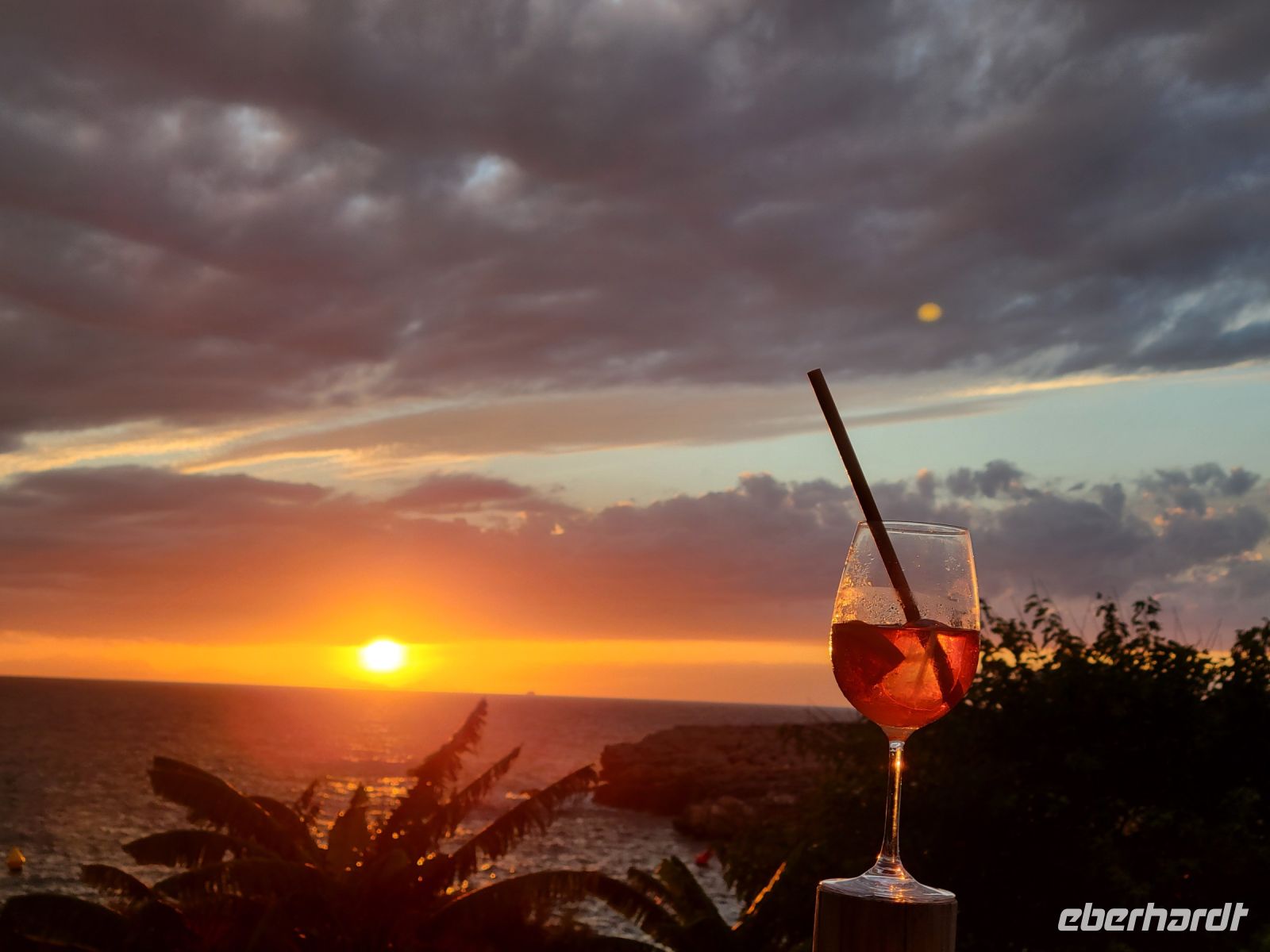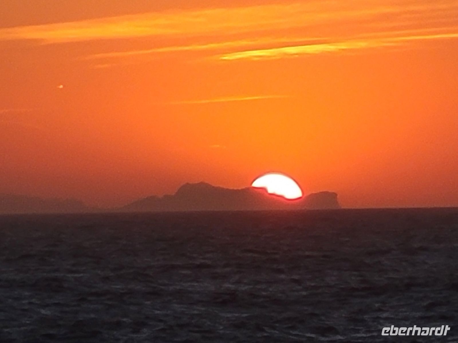 Auch heute werden wir von einem grandiosen Sonnenuntergang überrascht, genießen die einzigartige Abendstimmung und stoßen auf dieses eindrucksvolle Naturschauspiel und die schönen gemeinsam verbrachten Urlaubstage an – und dies nicht zum letzten Mal…