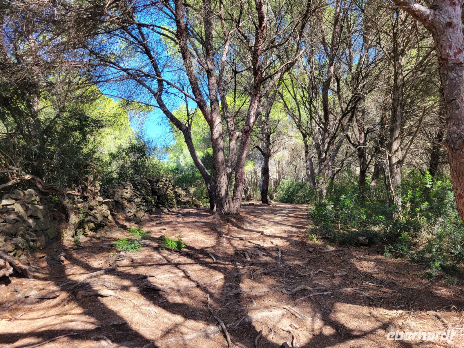 Wir befinden uns jetzt auf einem Teilstück des Camí de Cavalls (Weg der Pferde), ein historischer Pfad, der sich rund 185 km entlang der Küstenlinie zieht und durch die unterschiedlichen Landschaften von Menorca führt.
