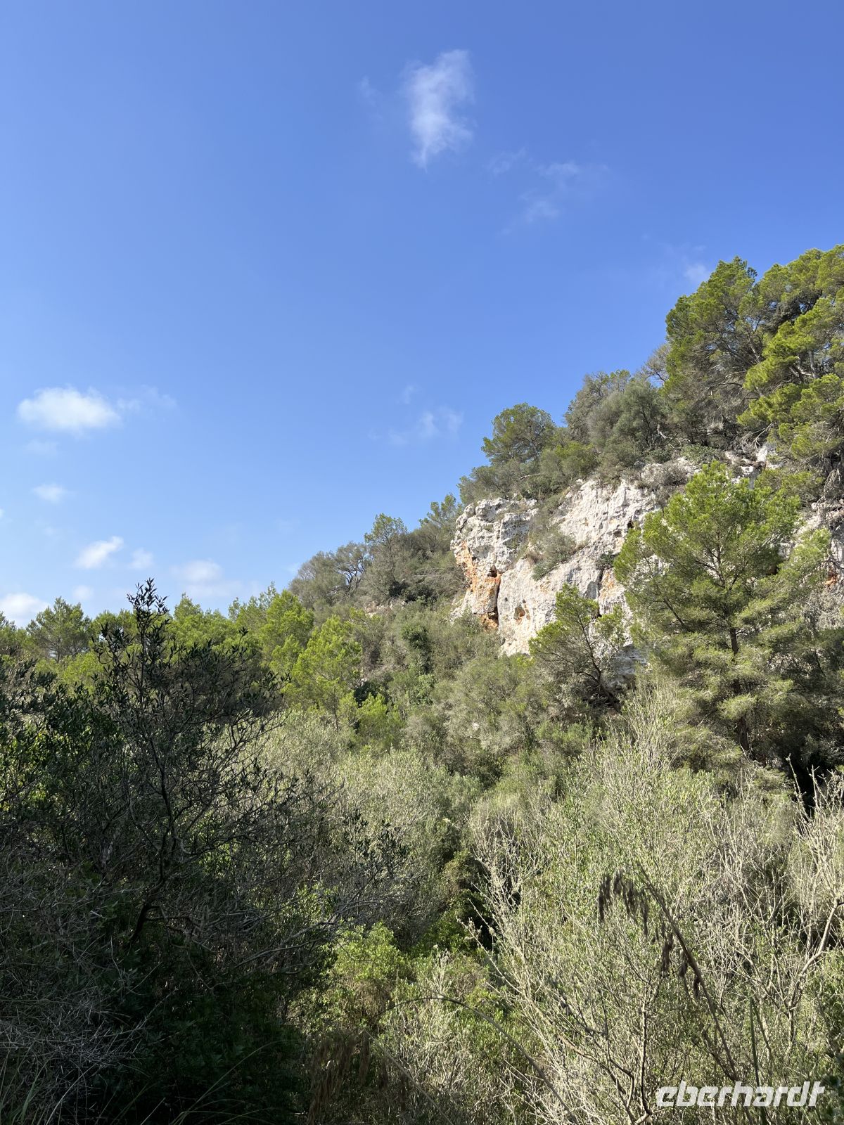 Zu Beginn schlenderten wir durch Cala en Porter, eine Bucht, deren Wasser so klar ist, dass die Boote darin wie schwebend wirken. Umrahmt von bis zu vierzig Meter hohen Felswänden bot sich gleich ein erster spektakulärer Anblick. Kurz noch ein Zwischenstopp mit Gelegenheit für Kaffee und Toilette – dann starteten wir in die Natur.