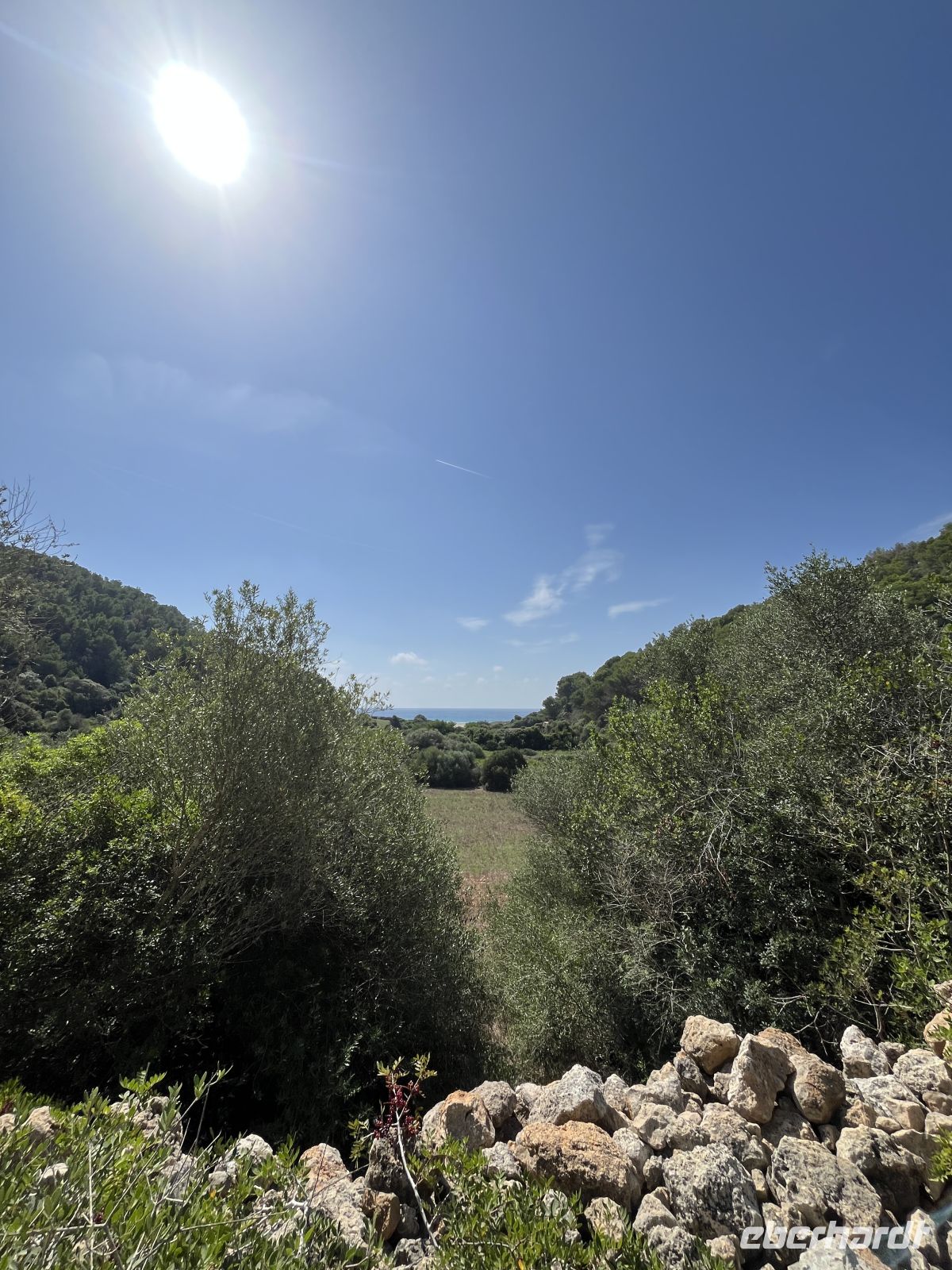 Von dort ging es weiter durch eine grüne Schlucht, die sich sanft in Richtung Küste öffnet. Schließlich erreichten wir den Playa de Binigaus – ein Strand mit grobem, goldenem Sand und kristallklarem Wasser. Hier legten wir eine wohlverdiente Pause ein.