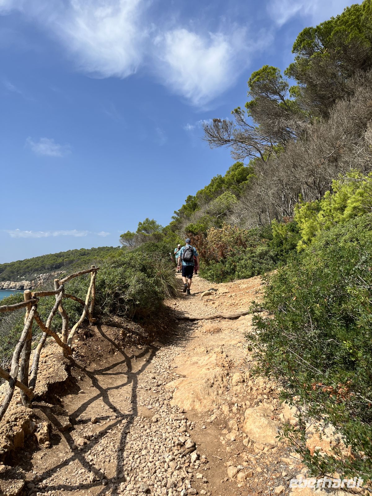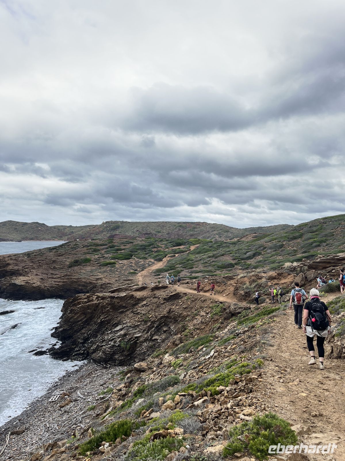 Im Anschluss folgte der Weg entlang des berühmten Camí de Cavalls, dem jahrhundertealten Reit- und Küstenweg Menorcas. Teilweise führte er direkt über Felsen mit Blick auf das offene Meer, was etwas Trittsicherheit erforderte. Wer es gemütlicher mochte, blieb am Strand oder lief schon Richtung Sant Tomàs und ließ sich später von der Gruppe wieder einsammeln.