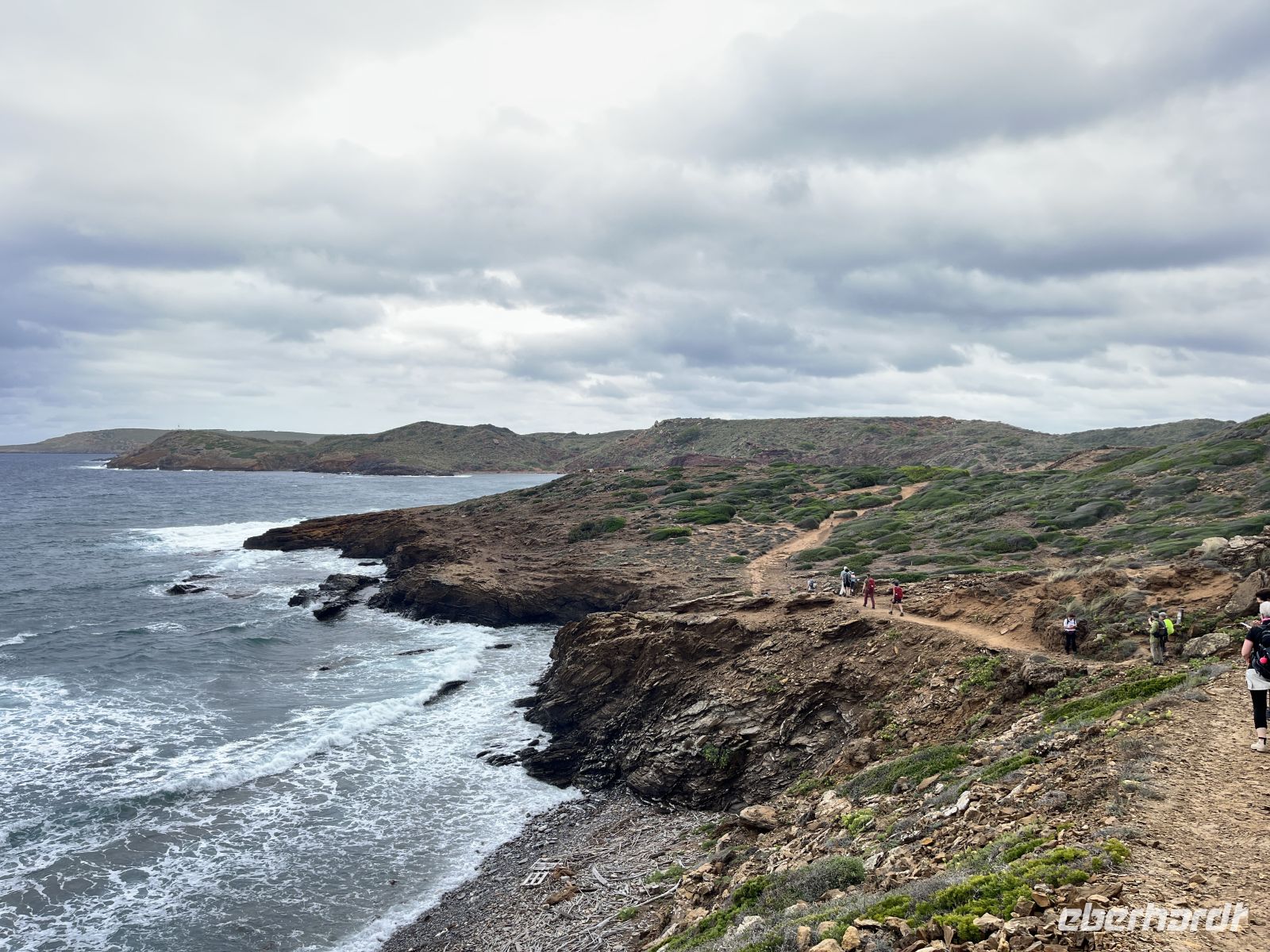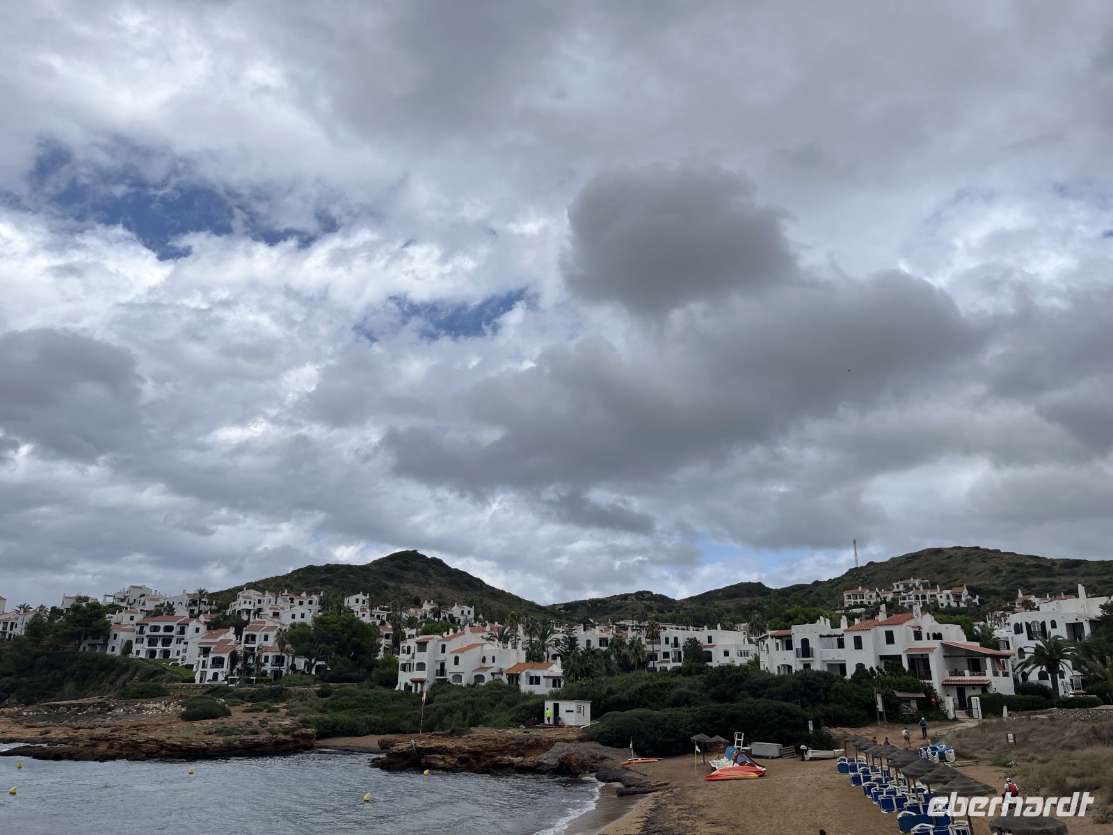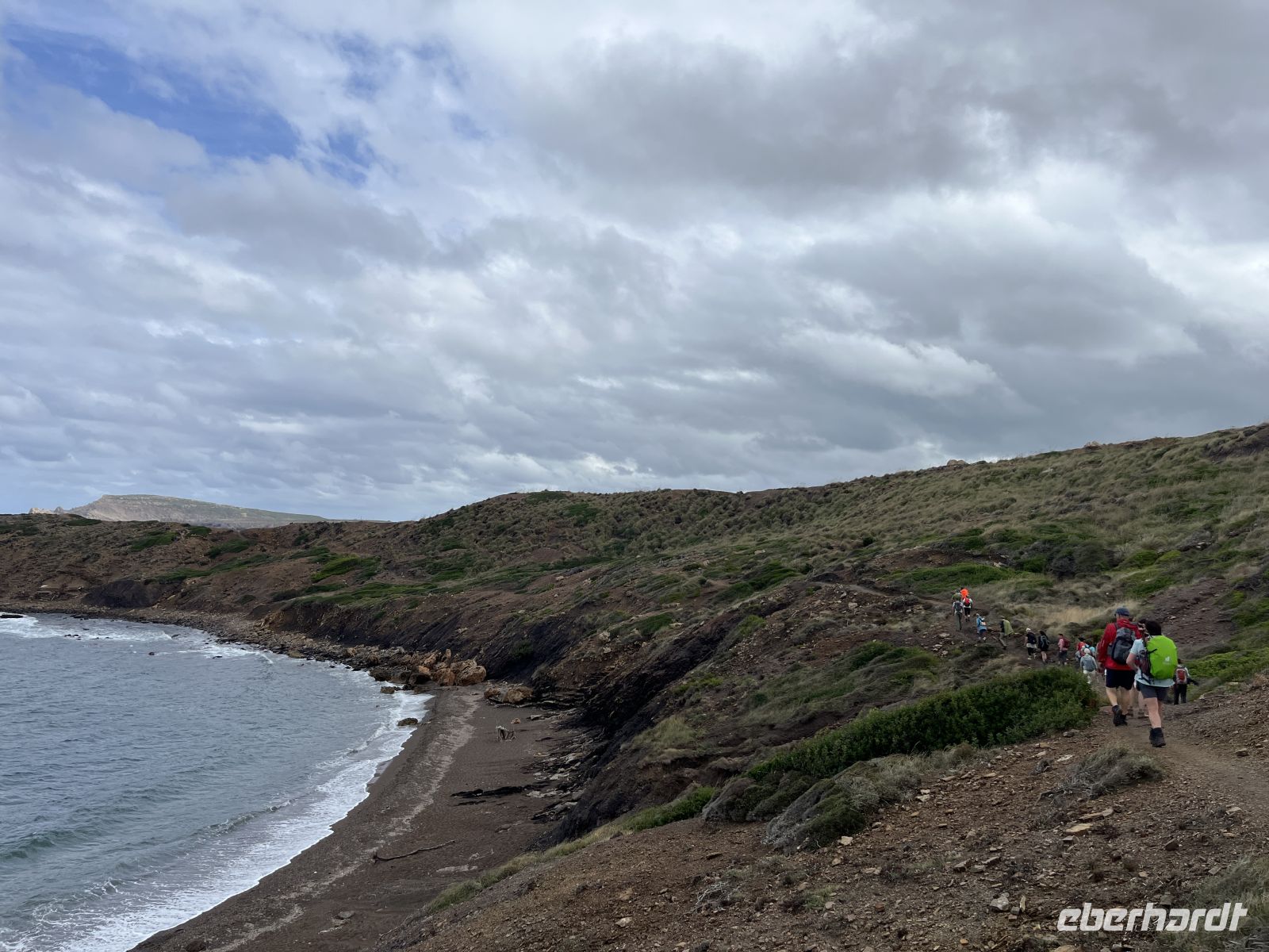 Nach einer Pause mit Blick auf die weite Küstenlandschaft ging es weiter in Richtung Zielort. In Platges de Fornells angekommen, stellte sich schnell heraus, dass die Cafés geschlossen hatten. Auch zum Baden war es den meisten bei diesem Wetter nicht mehr so recht zumute.