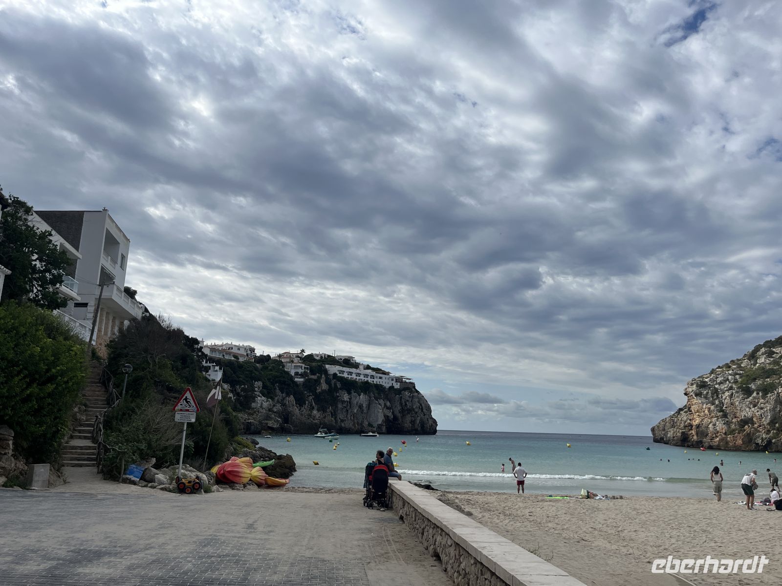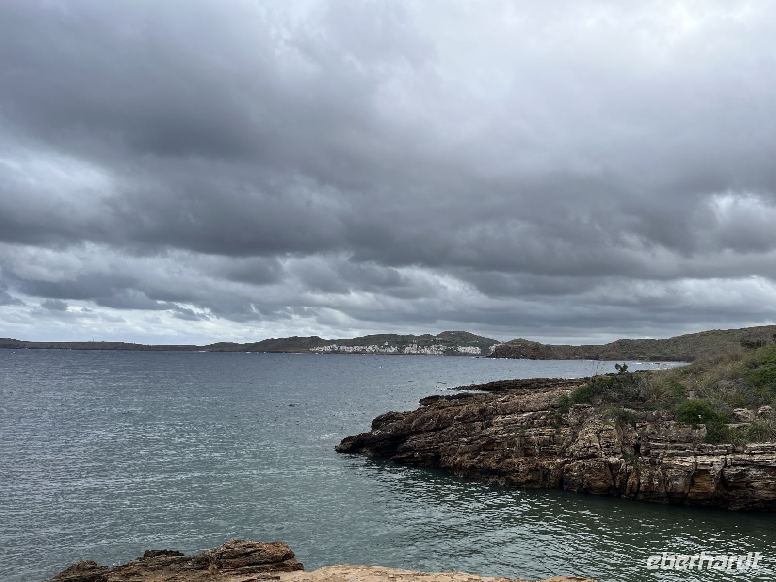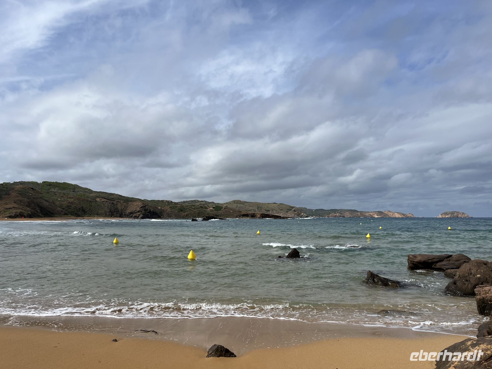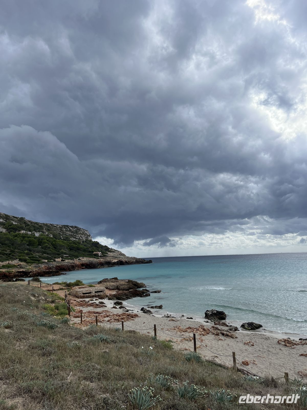 Nach einer Pause mit Blick auf die weite Küstenlandschaft ging es weiter in Richtung Zielort. In Platges de Fornells angekommen, stellte sich schnell heraus, dass die Cafés geschlossen hatten. Auch zum Baden war es den meisten bei diesem Wetter nicht mehr so recht zumute.