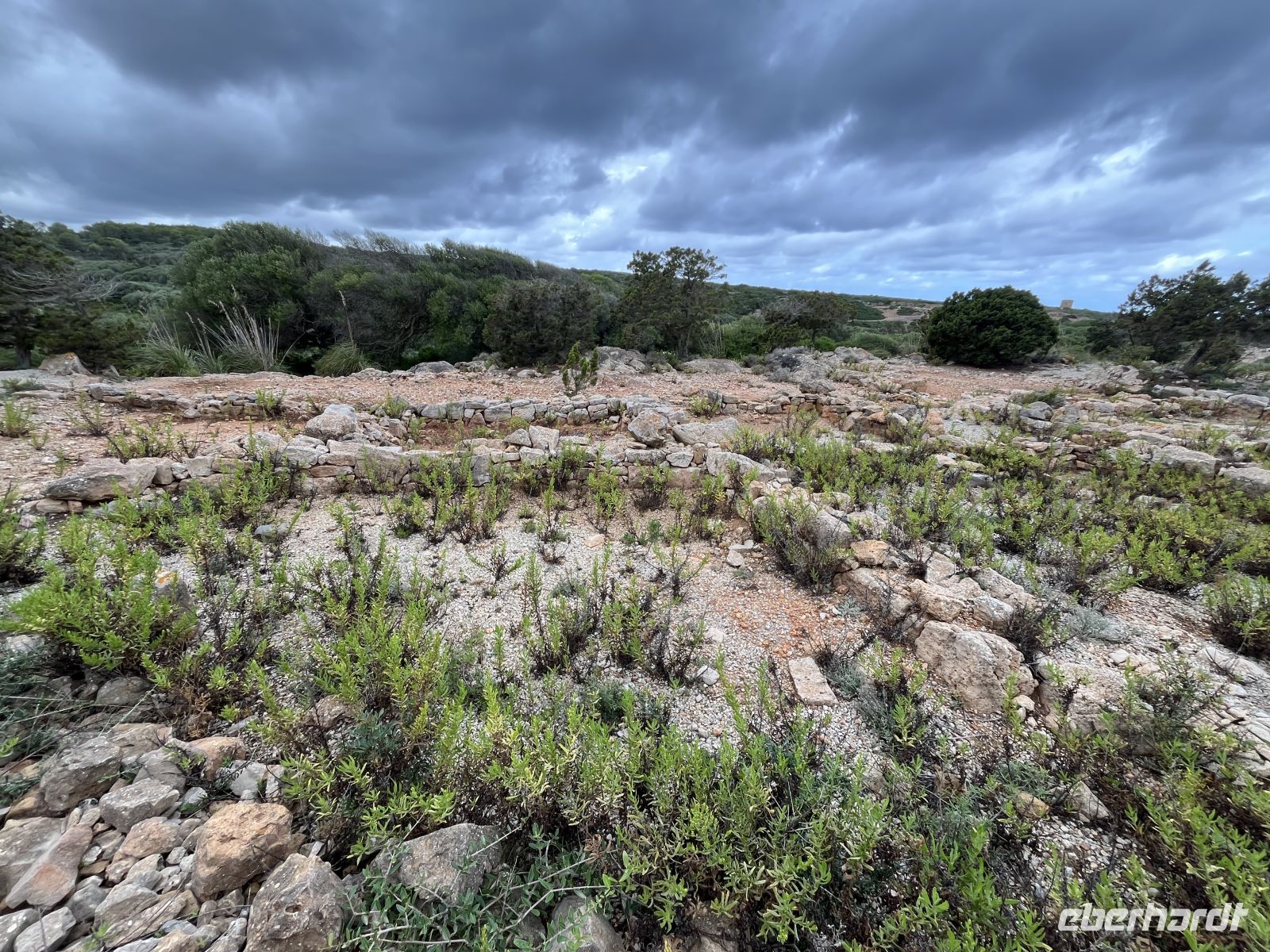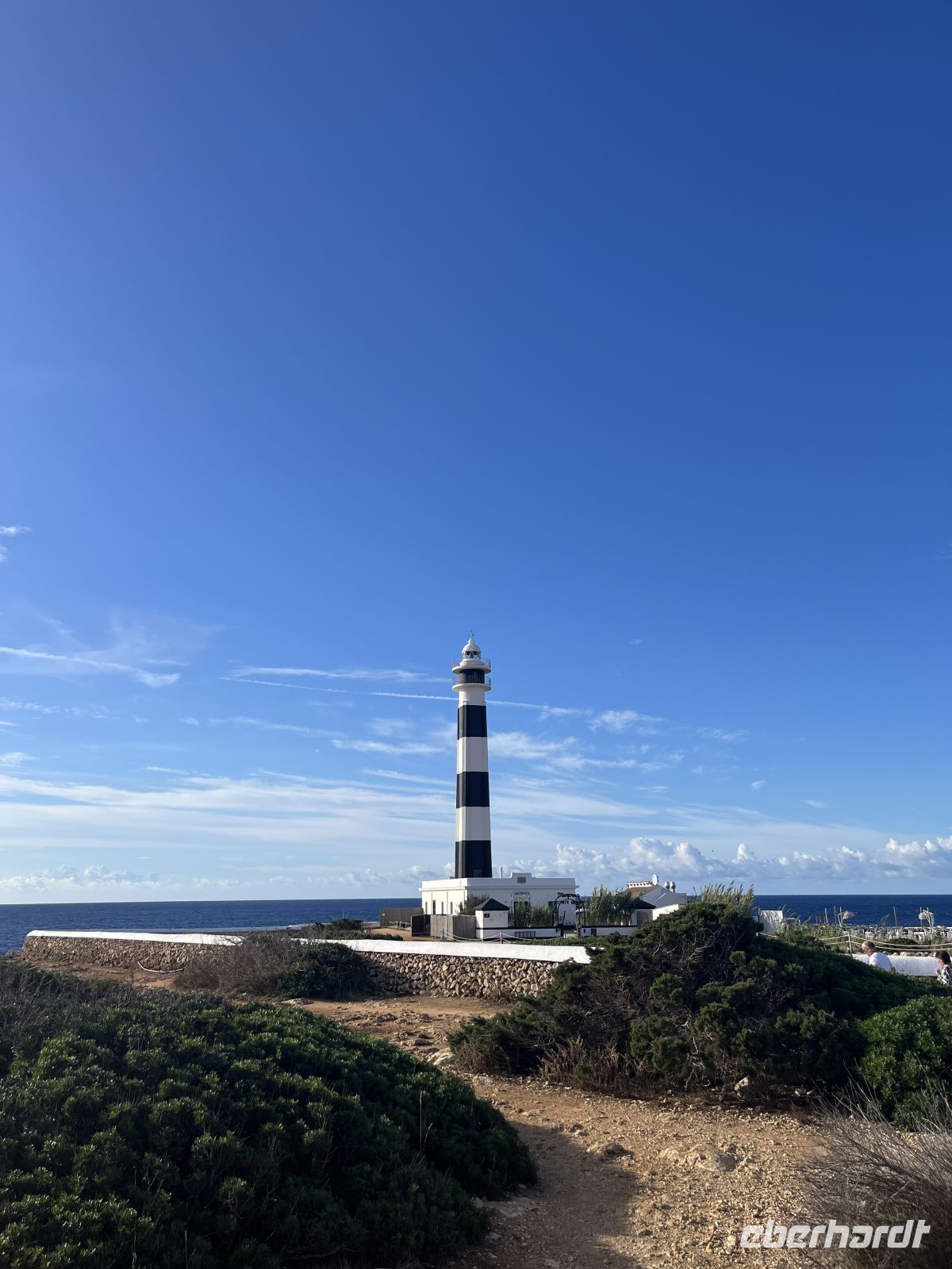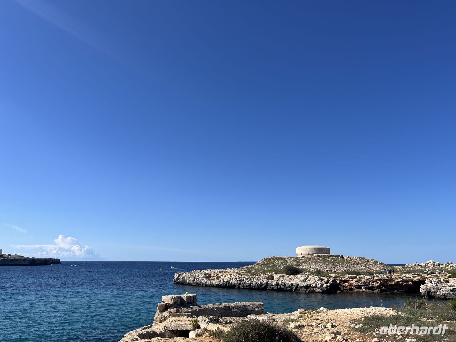 Der Weg führte uns zunächst durch eine raue, fast mondartige Umgebung, ehe er sich öffnete und den Blick auf die Platja Tortuga freigab. Weiter ging es über kleine Anhöhen, vorbei an malerischen Buchten bis zur Cala Torreta. Dort stand die Ruine eines alten britischen Wehrturms, von dessen Mauern wir einen großartigen Panoramablick über das Meer und die vorgelagerte Insel Illa d’en Colom genießen konnten.