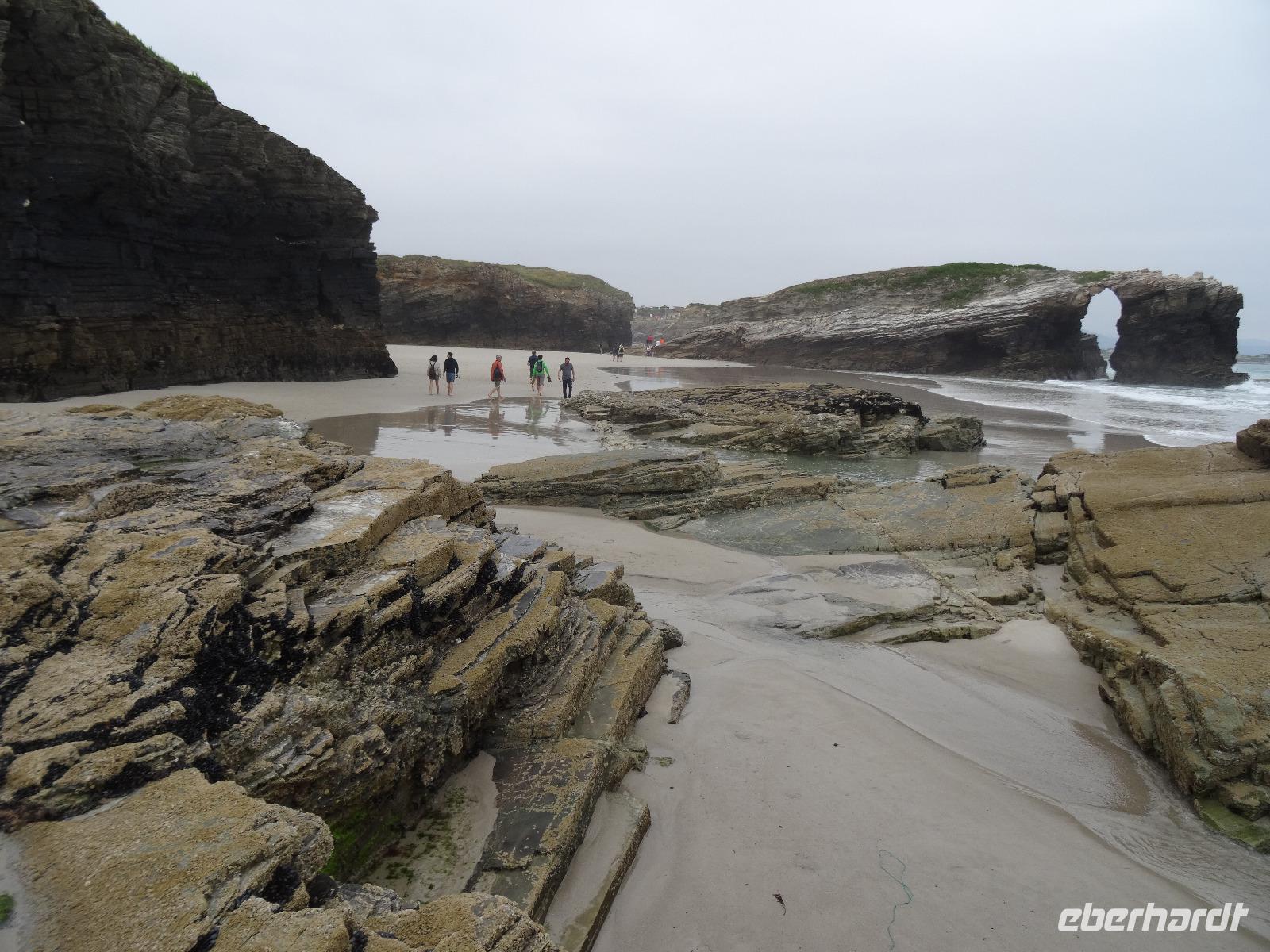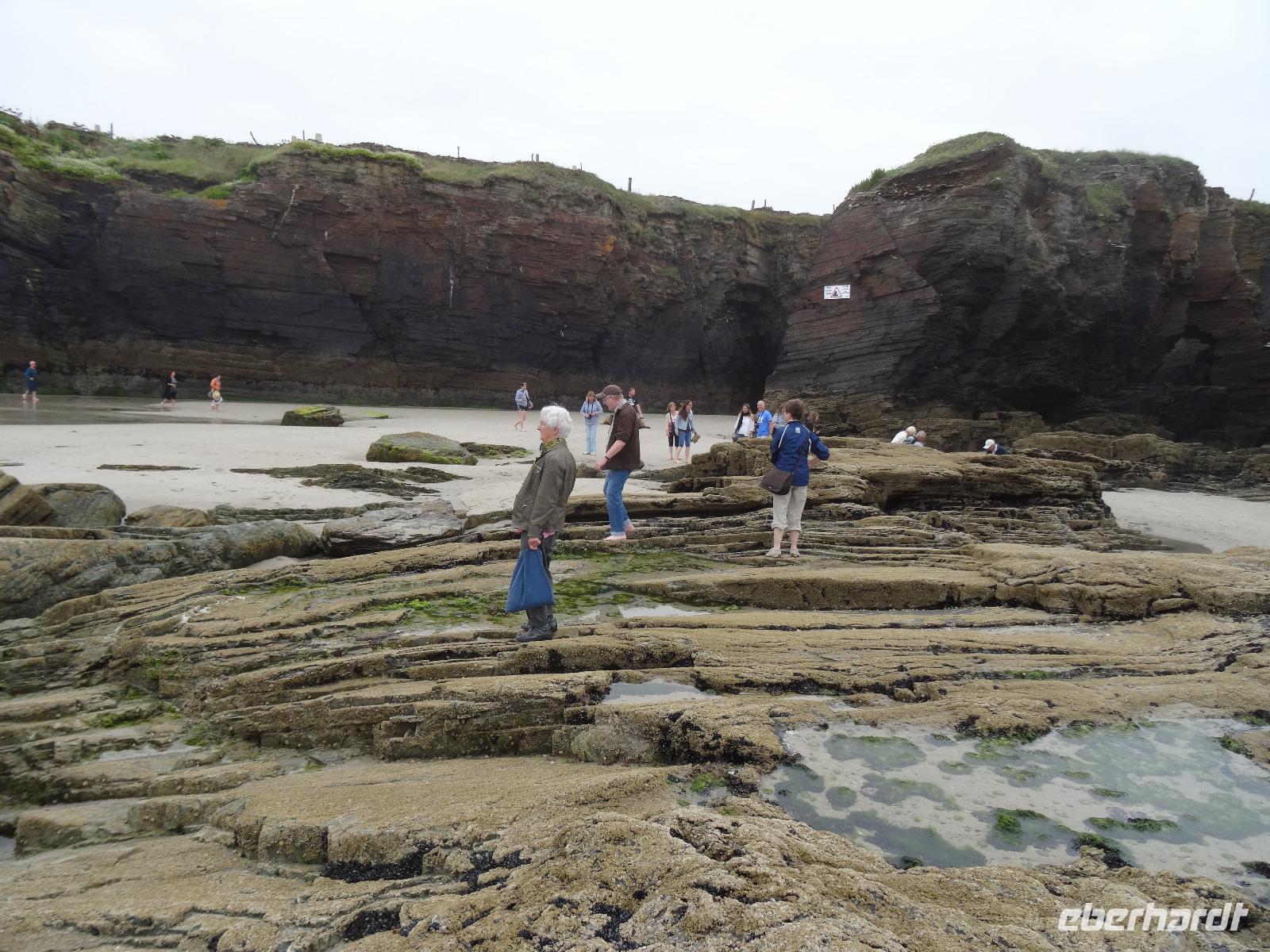 Das Wetter zeigt sich erneut von seiner besten Seite und so gerät der Besuch des Kathedralenstrandes zu einem weiteren Höhepunkt der Reise. Die bizarren Felsformationen forderten den Fotografen nahezu heraus und so manches zu sehr auf das Fotografieren konzentriertes Gruppenmitglied bezahlte dies mit nassen Füßen. Aber das war schnell vergessen und der Tag führte uns danach erneut in die Vergangenheit Galiziens. Die Stadt Lugo verfügt mit einer einmaligen Stadtmauer aus der römischen Zeit sowie der Kathedrale Santa Maria über ein interessantes Architekturensemble. An der überaus prächtigen Kathedrale haben Baumeister aus verschiedenen Stilrichtungen und Jahrhunderten ihre Spuren hinterlassen.