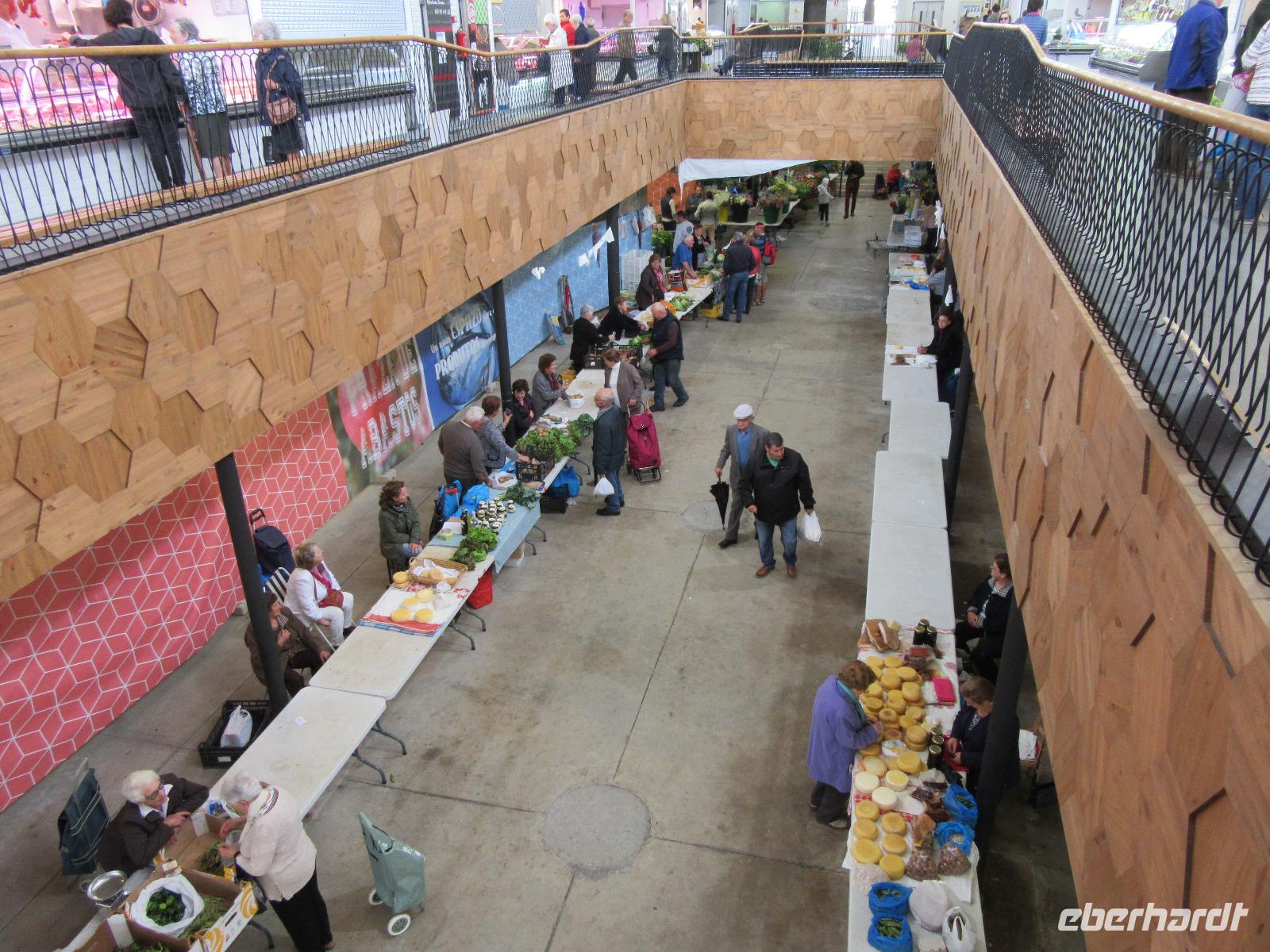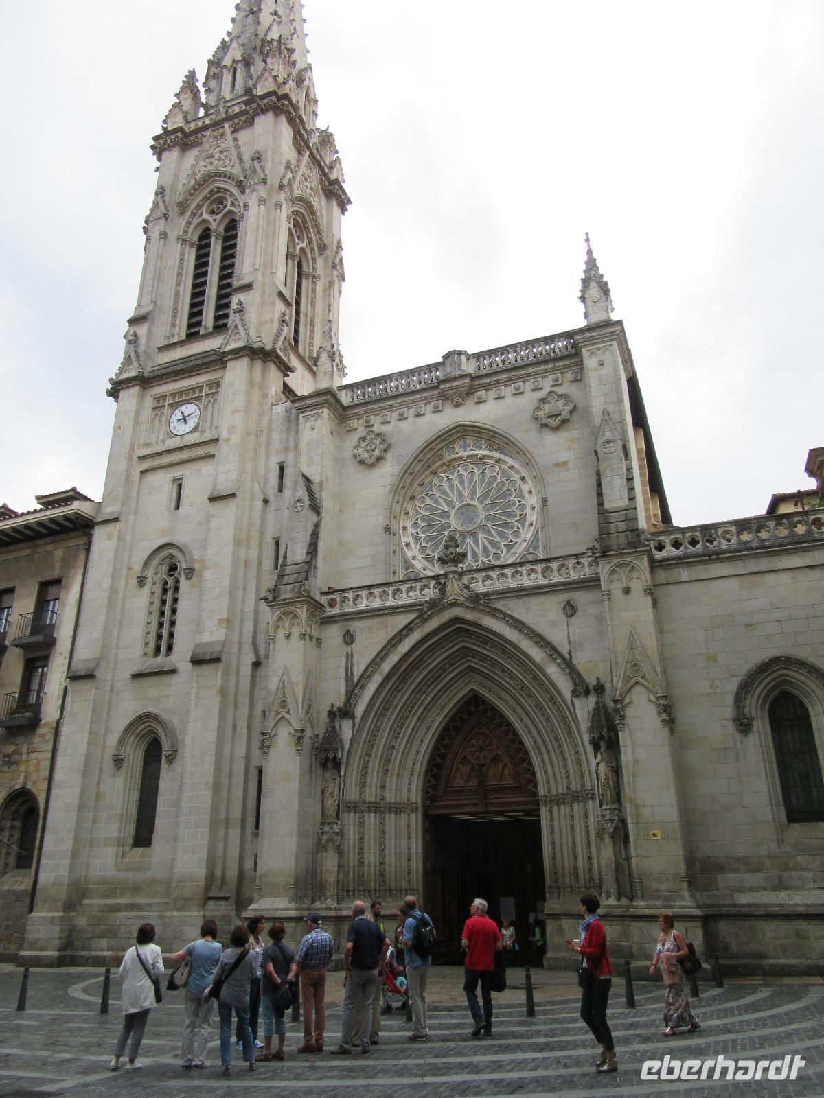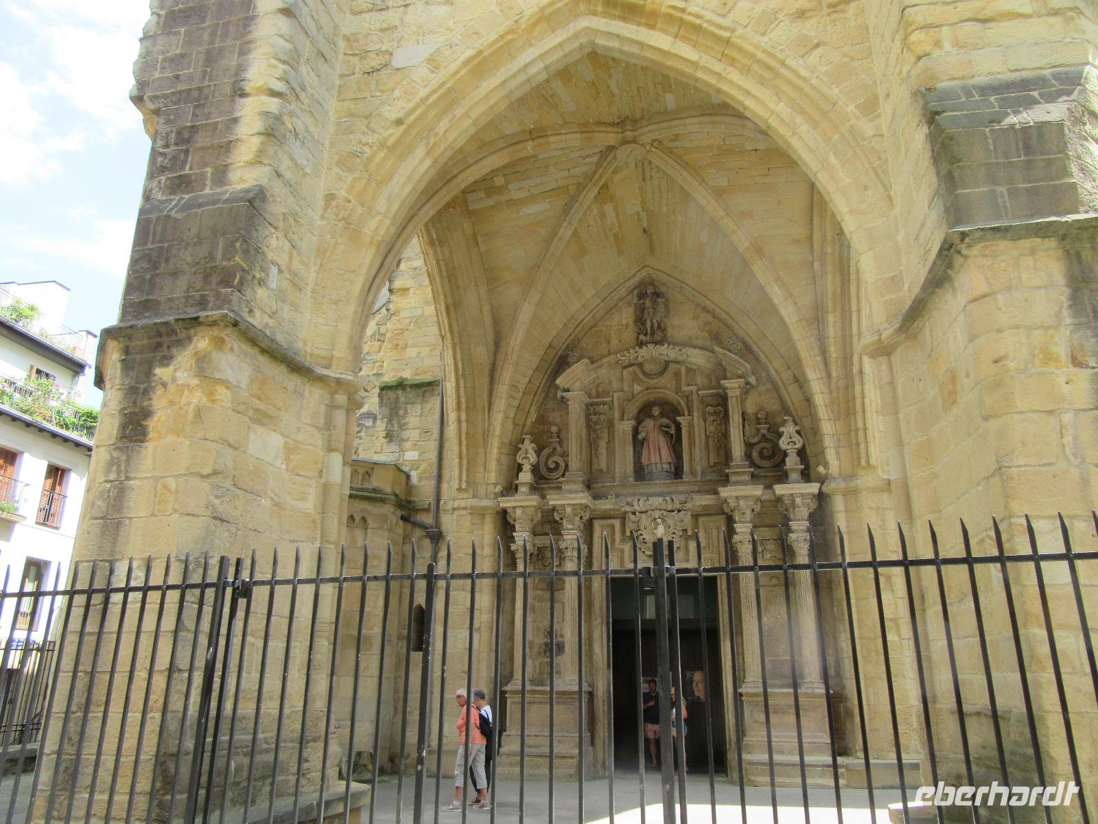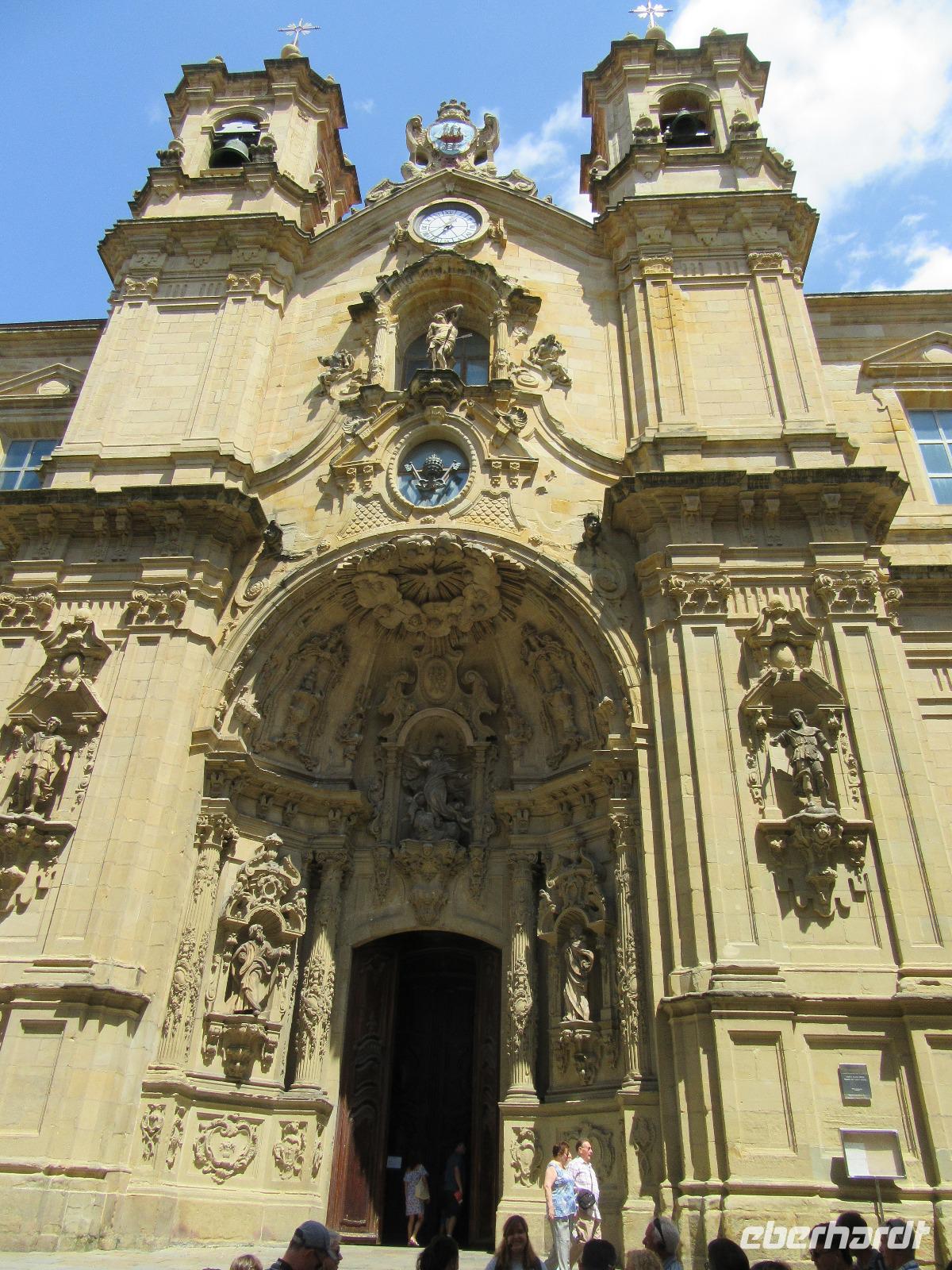 Dann fuhren wir entlang des Ufers bis El Arenal. Auf unserem Weg am Nervión-Fluss entlang sahen wir unter anderem die Eisen- und Industriegelände, das San-Mamés-Fußball-Stadion, das Kongress-Zentrum und das Guggenheim-Museum. Schon in dem alten Fischerviertel „El Arenal" begann unser Bummel durch die Altstadt. Bei dieser Führung haben wir die San-Nicolas-Kirche, die Bank, die typischen Holz-Balkone oder „Miradores", sowie die berühmten „Sieben Straßen" und die Jakobs-Kathedrale gesehen.